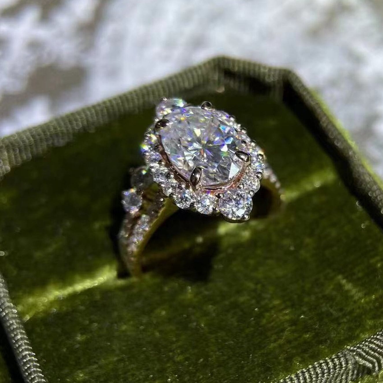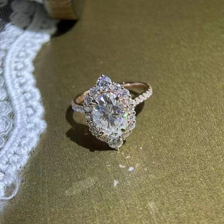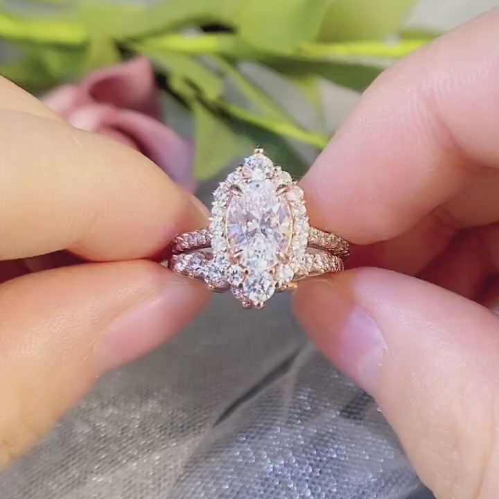 Oval Moissanite Engagement Ring Set, Art Deco Moissanite Daimond Ring, Bridal Anniversary Ring, Vintage Unique Oval Halo Ring, 14K/18K Gold