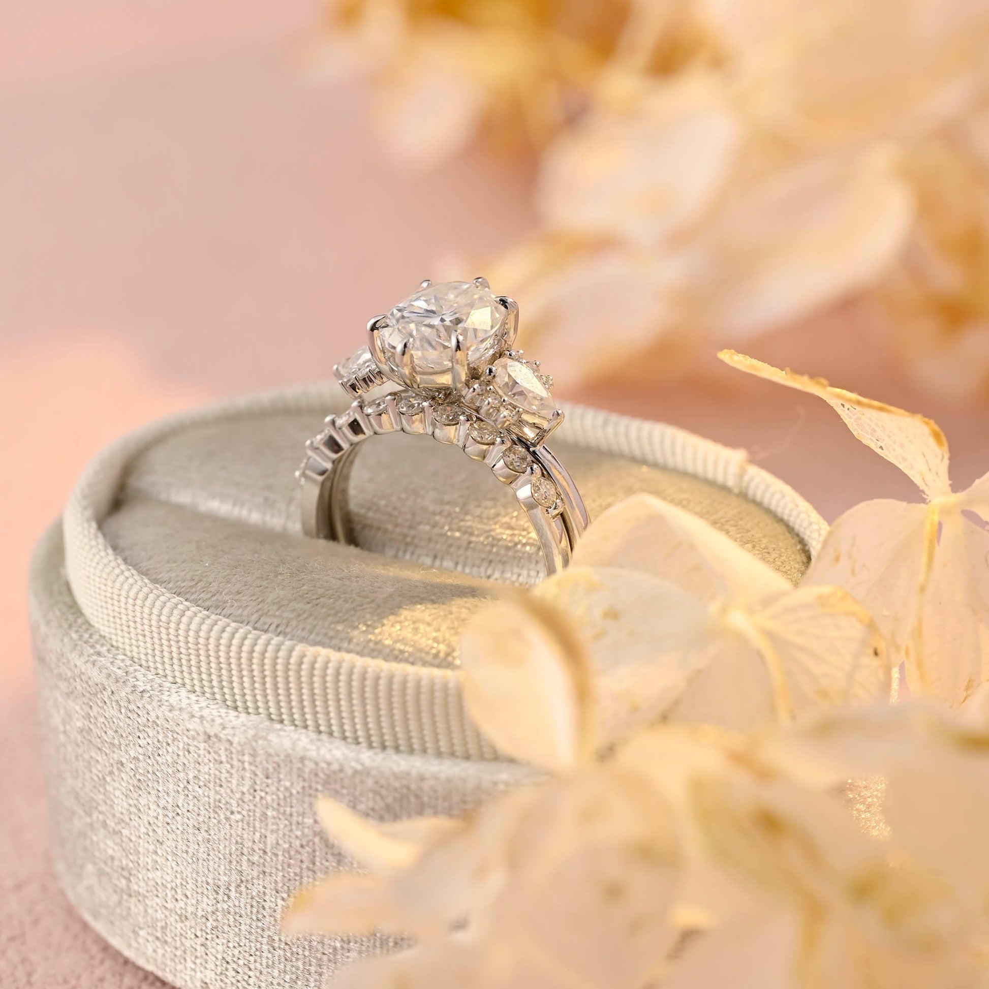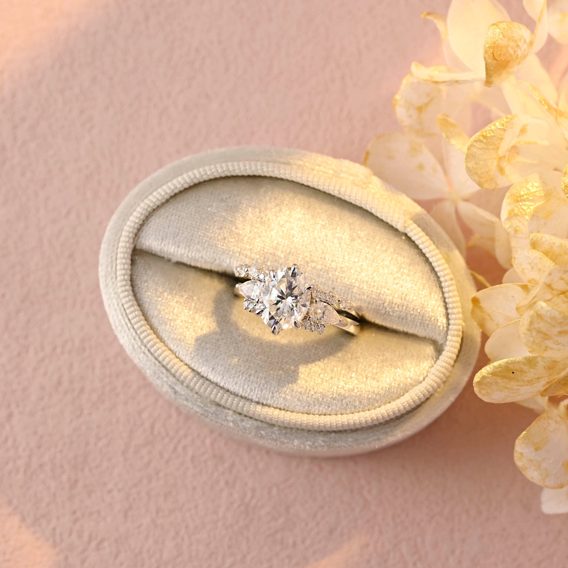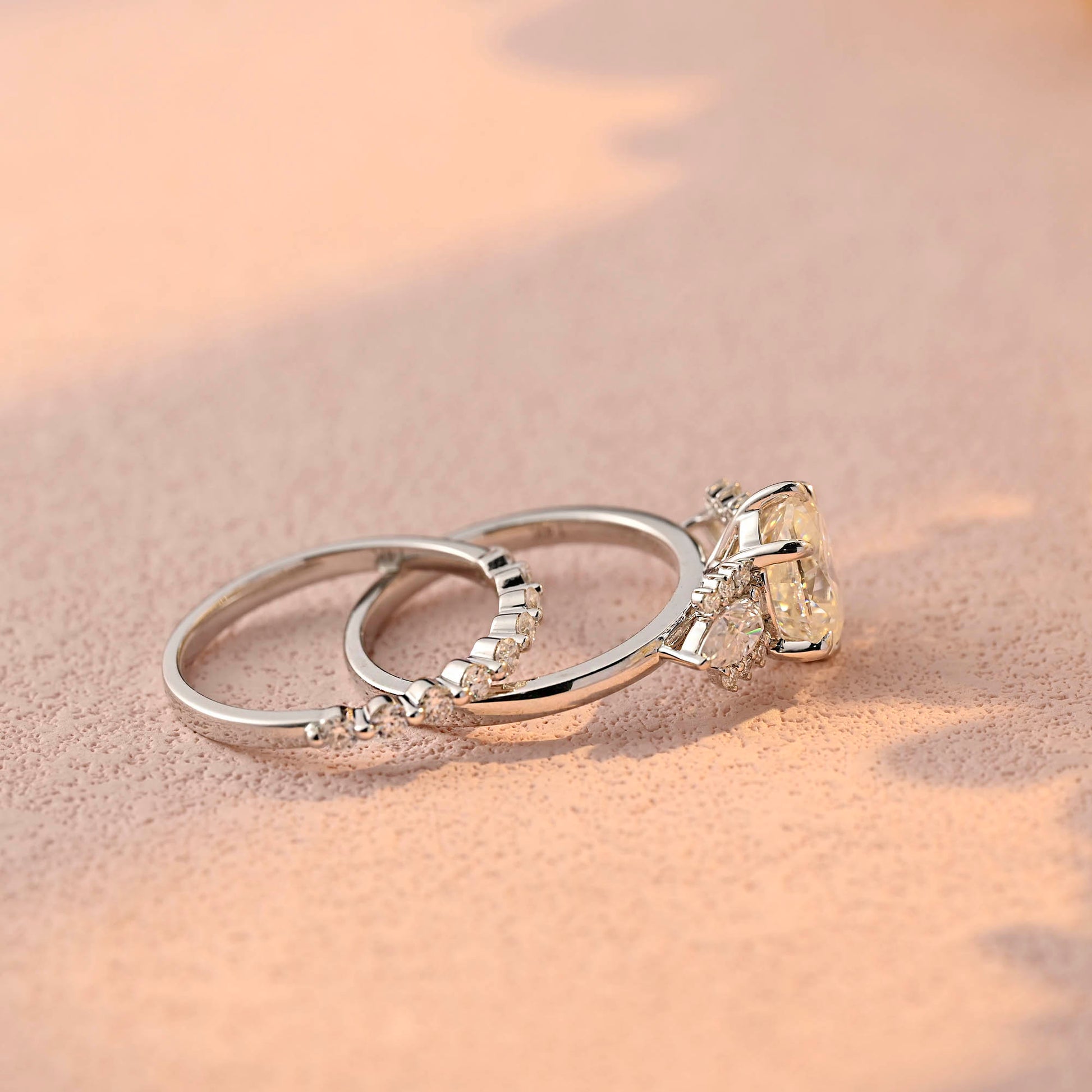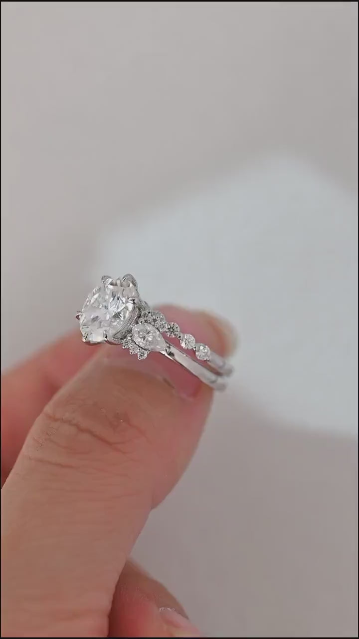 Oval Pear Cut Moissanite Ring Set, Round Moissanite Engagement Bridal Set, Anniversary Gift,Wedding Ring Set, Valentineβs Day Gift for Woman