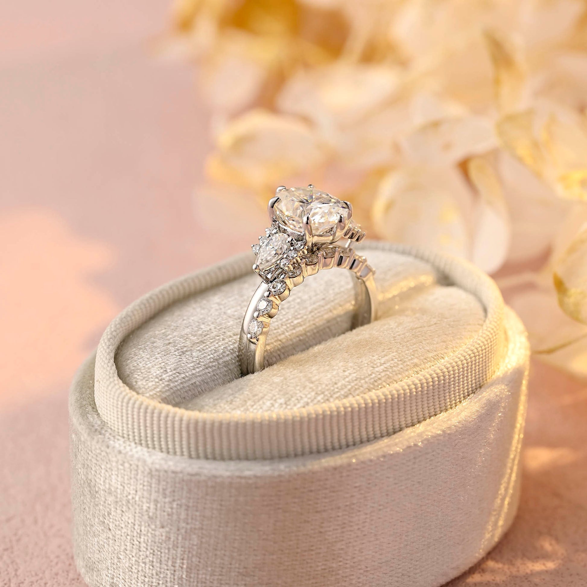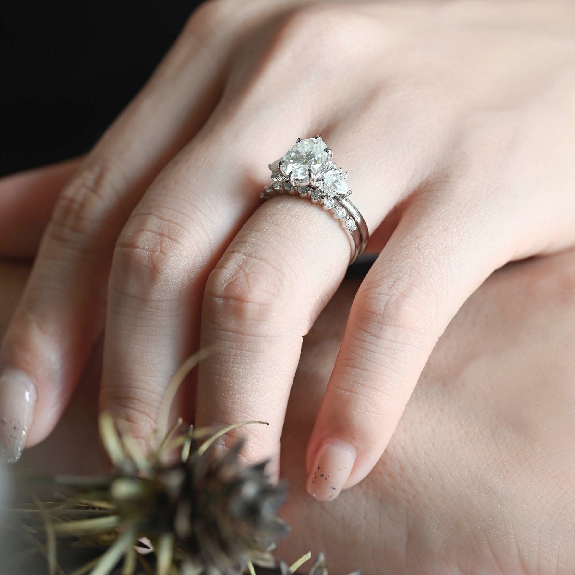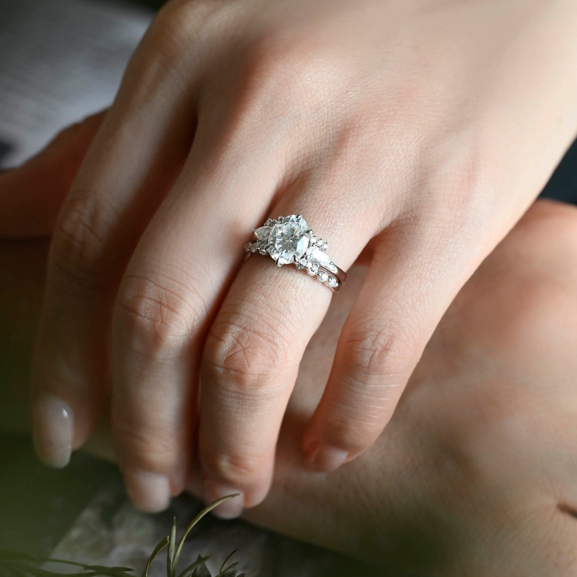 Oval Pear Cut Moissanite Ring Set, Round Moissanite Engagement Bridal Set, Anniversary Gift,Wedding Ring Set, Valentineβs Day Gift for Woman