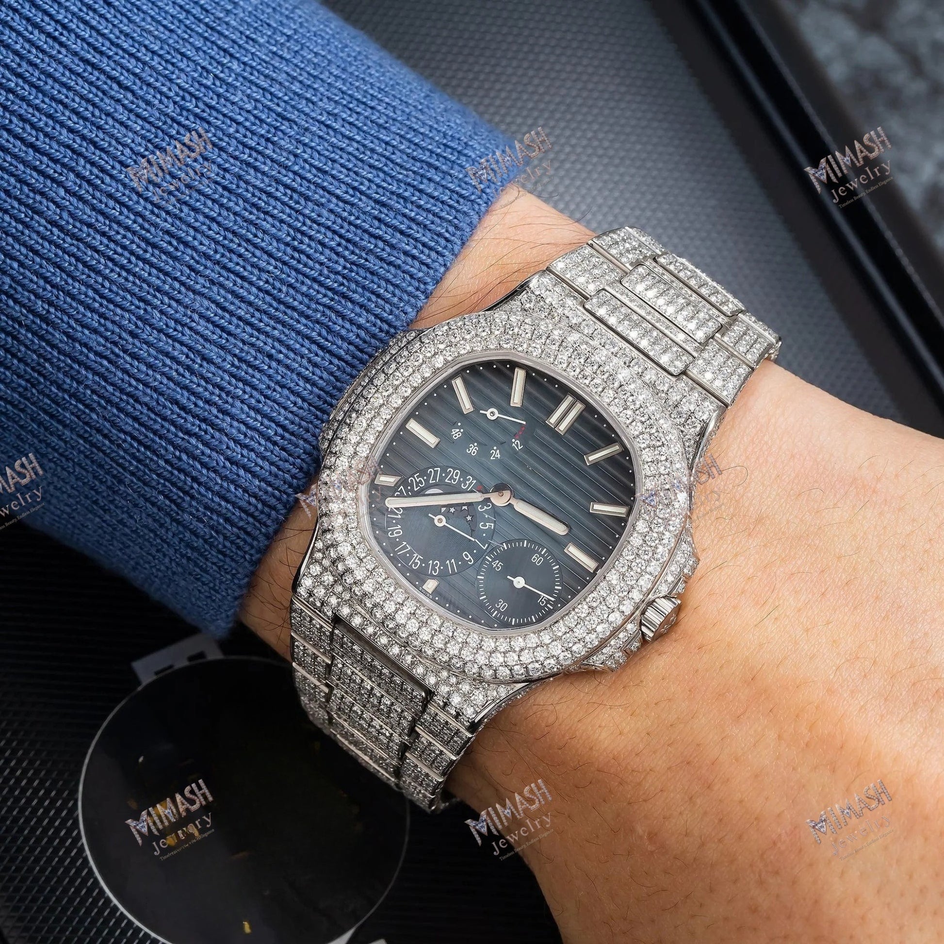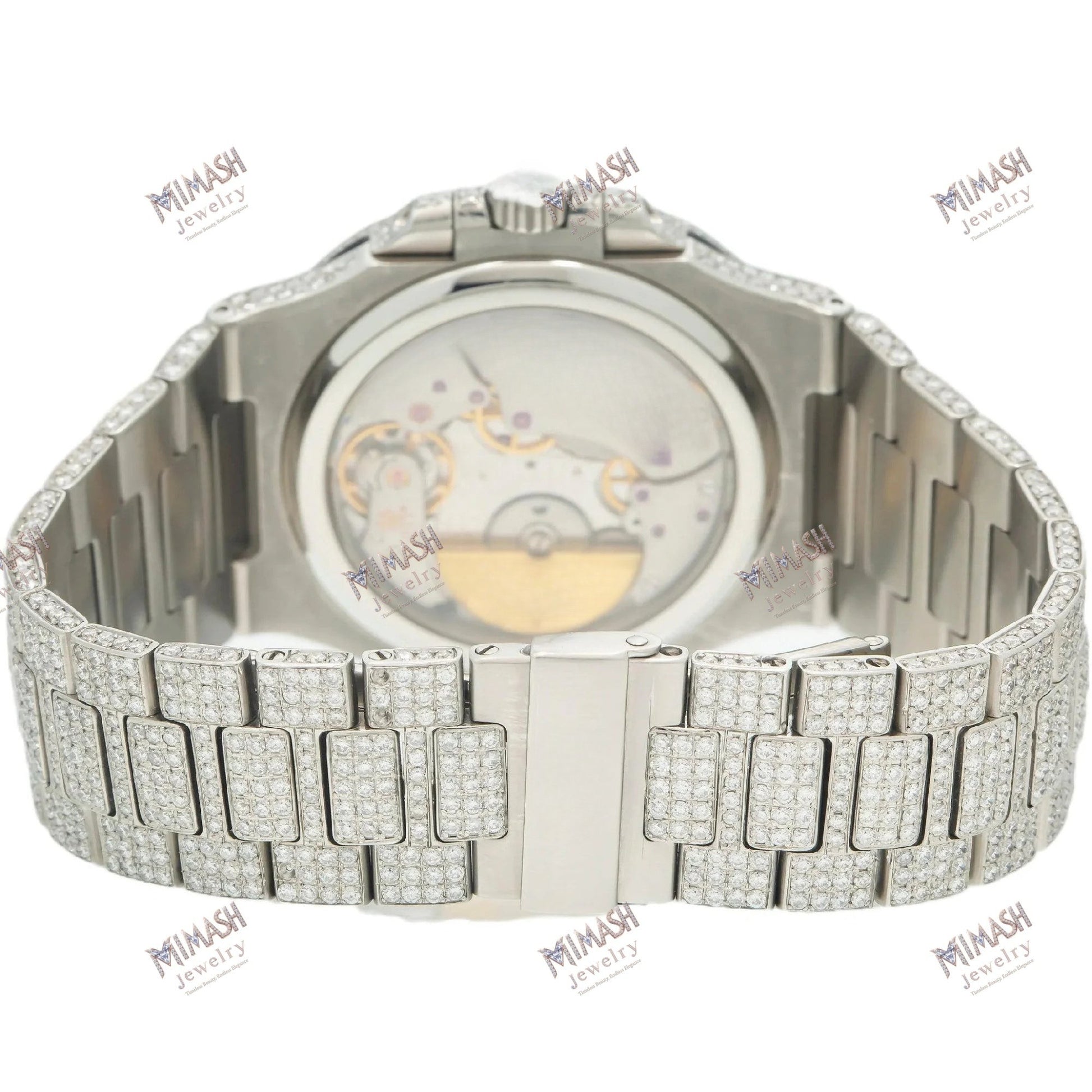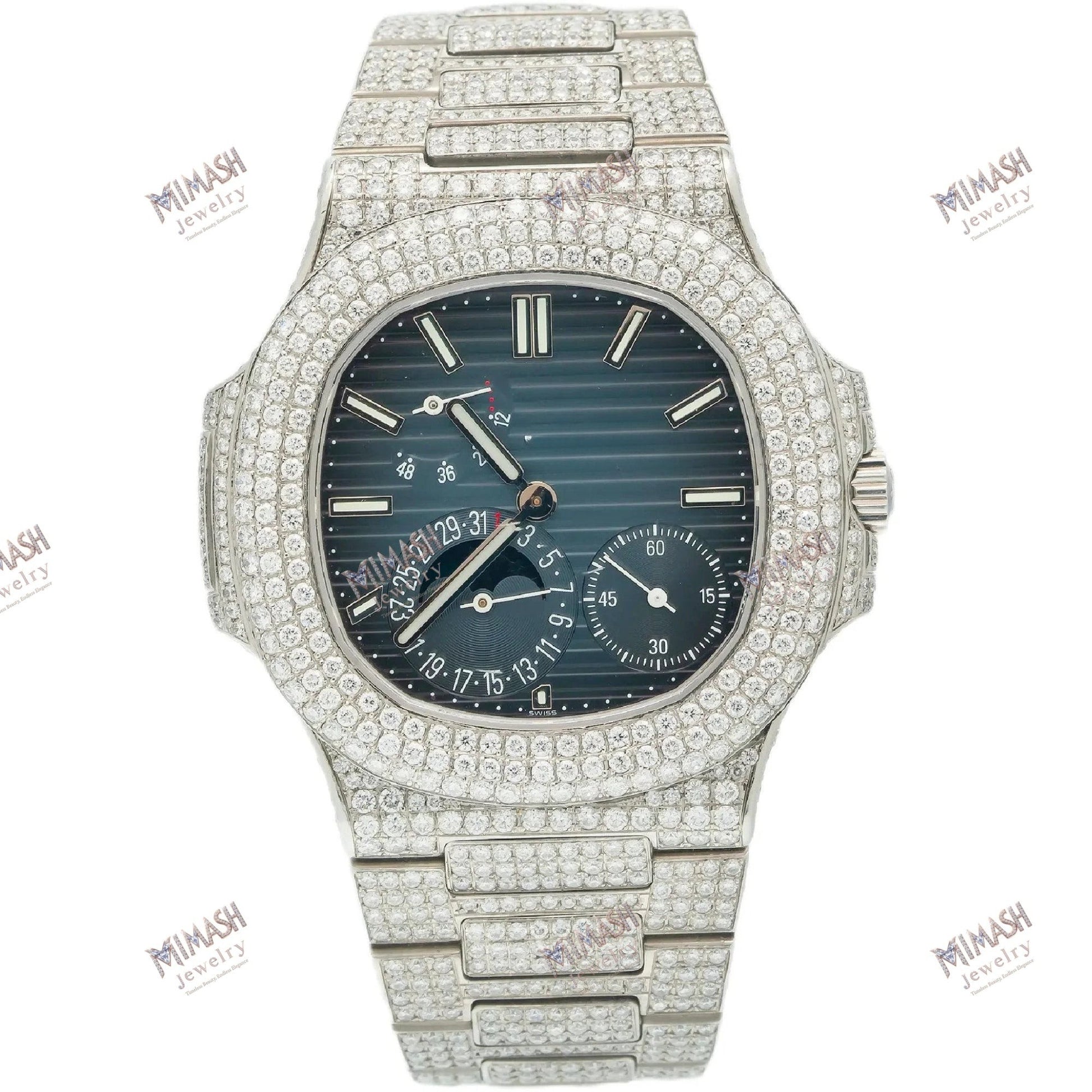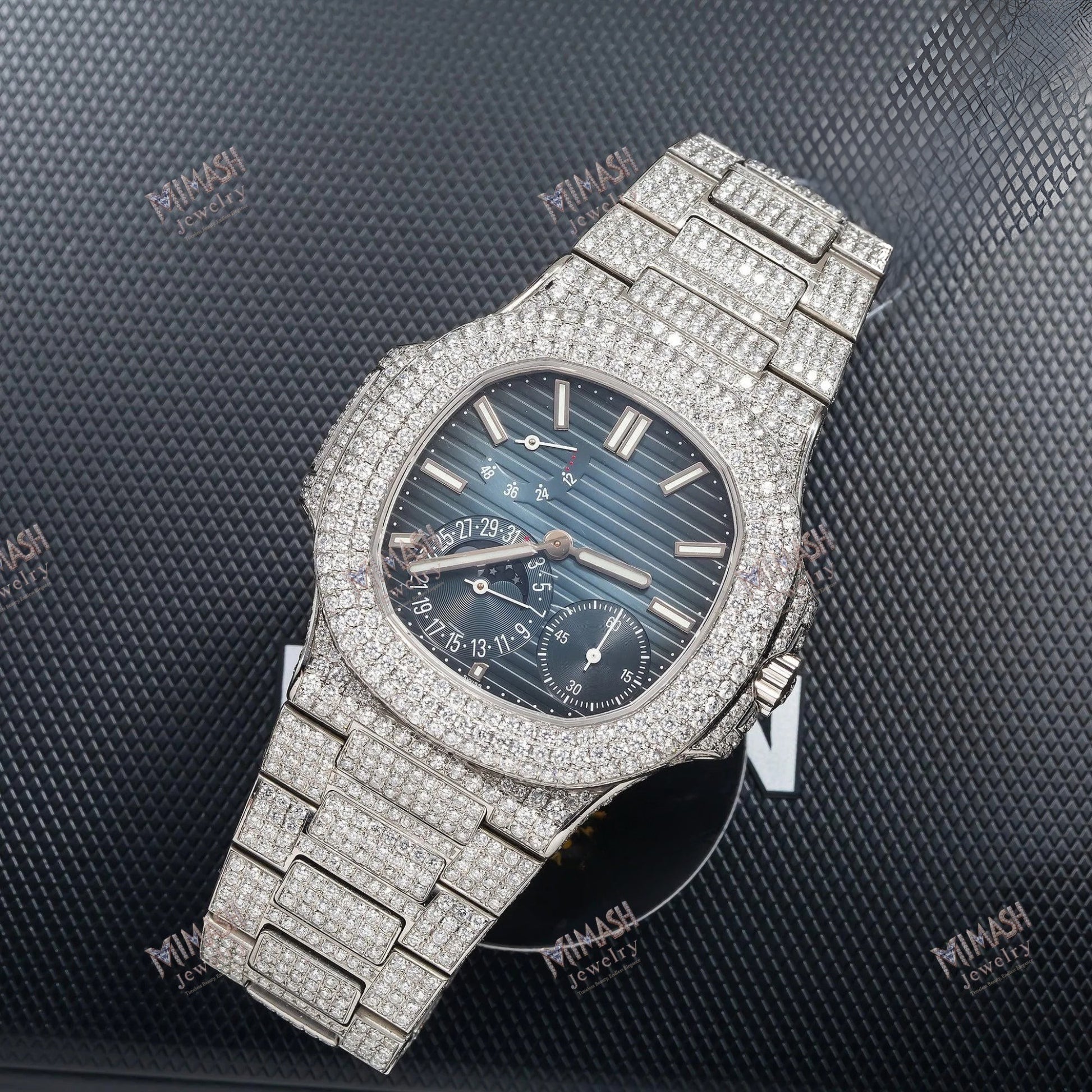Custom Moissanite Diamond Watch 40MM Blue Dial With Diamond Bezel