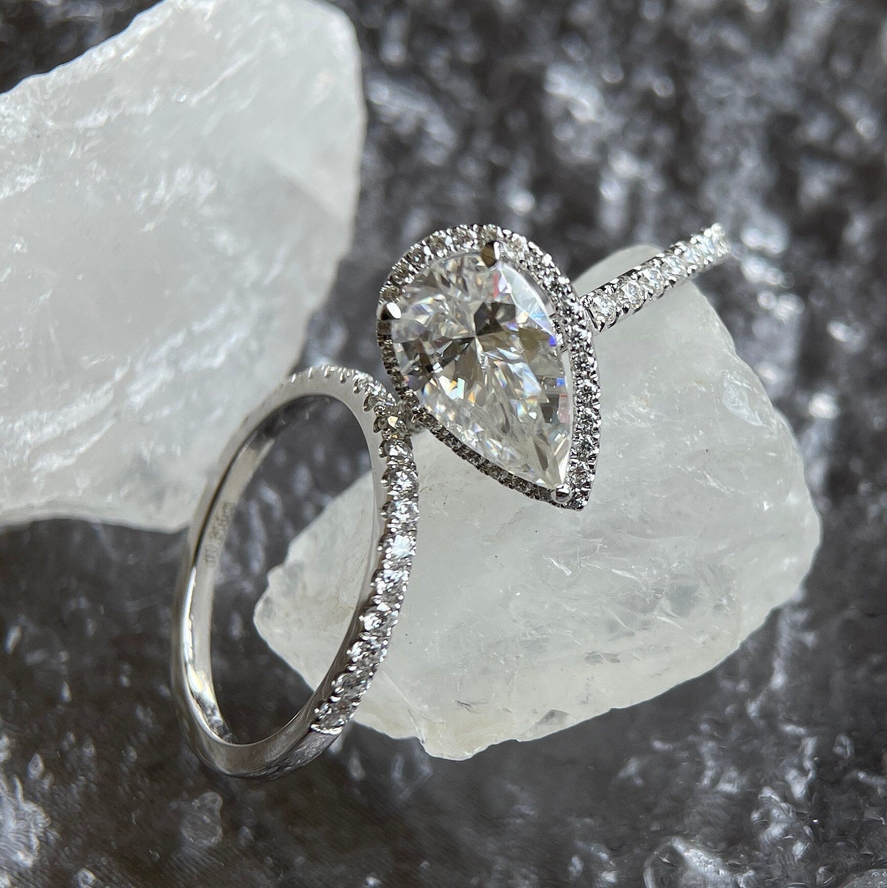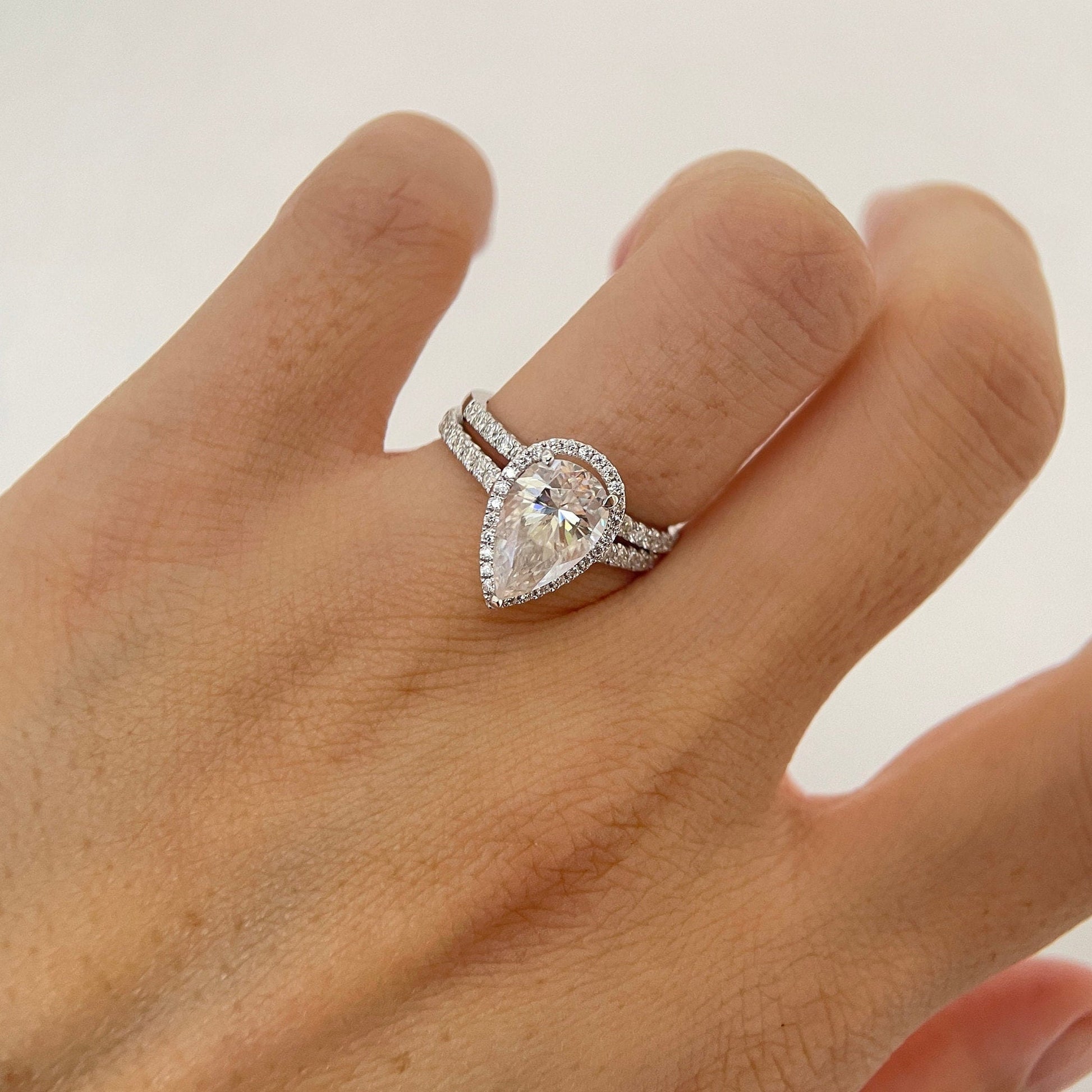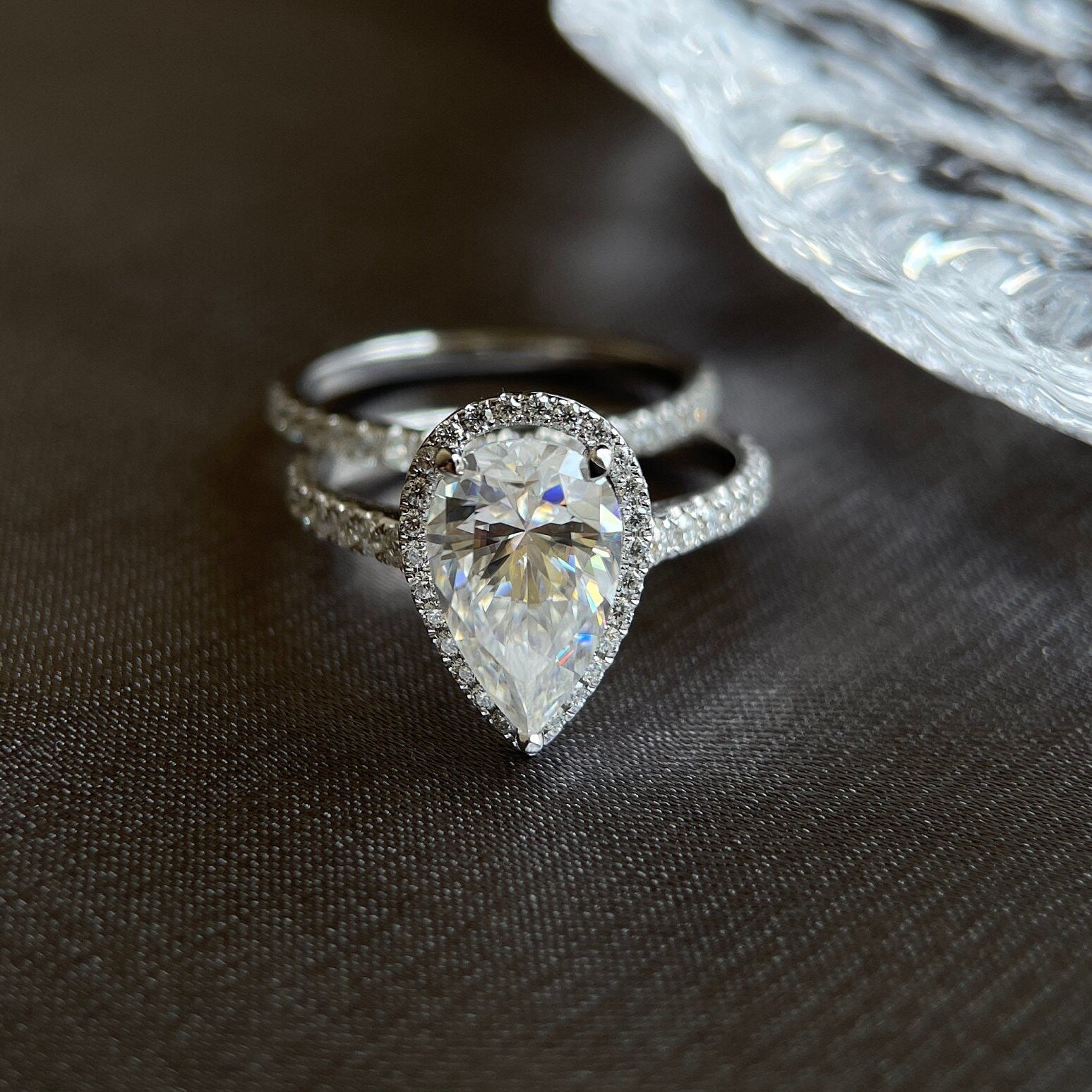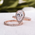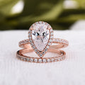 Pear Cut Halo Moissanite Pave Engagement Ring, Unique Wedding Ring Set, 9K/14K/18K Solid Gold Moissanite Bridal Set, Promise Ring for Women