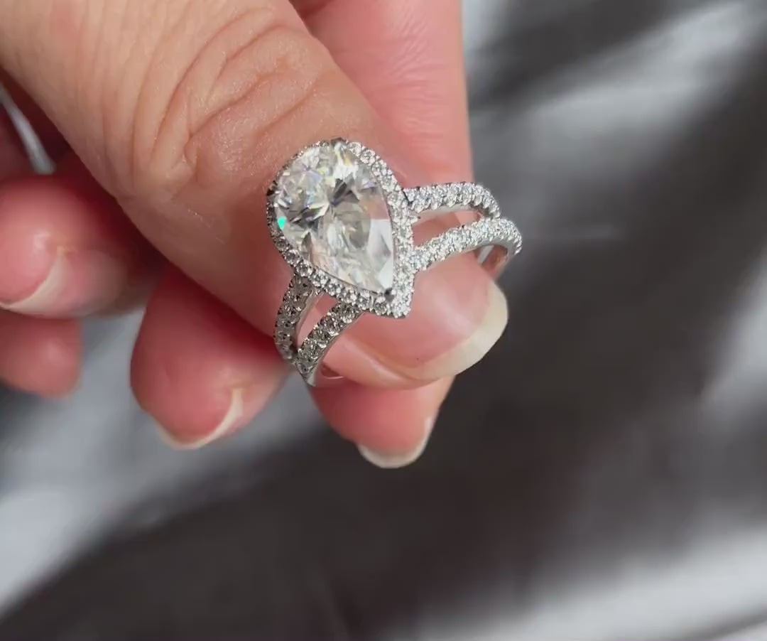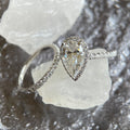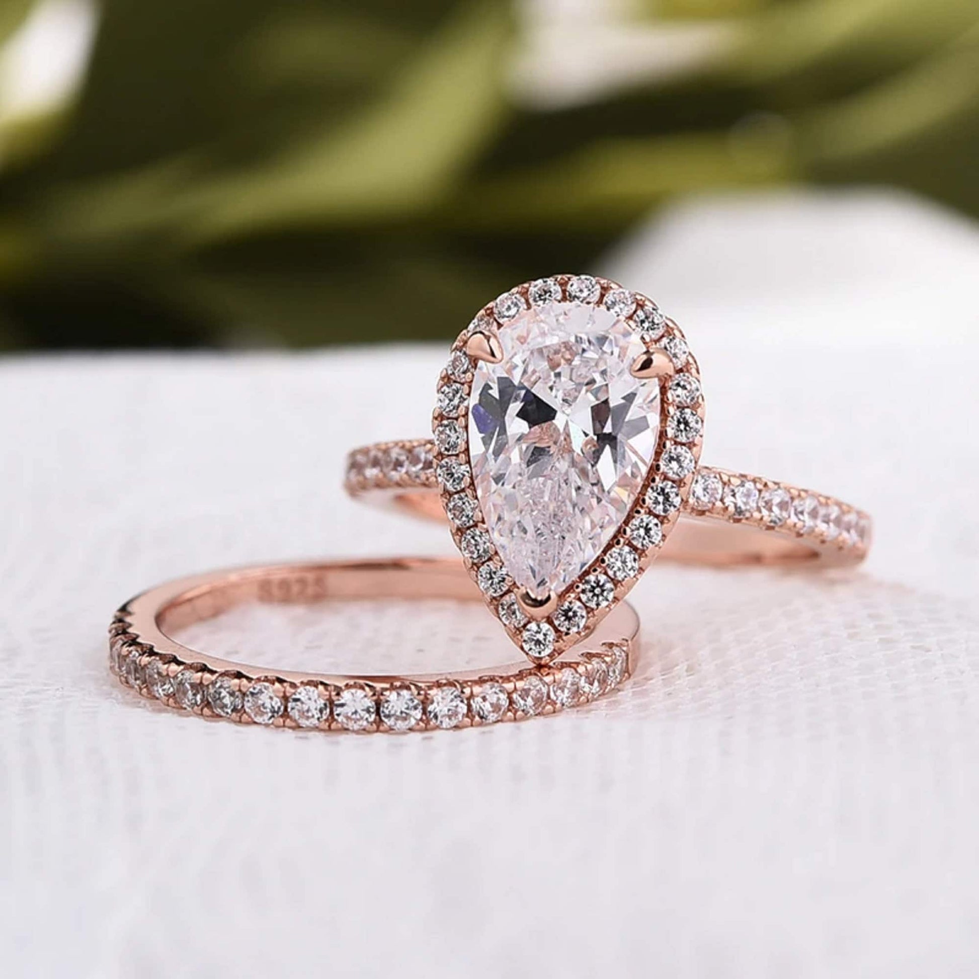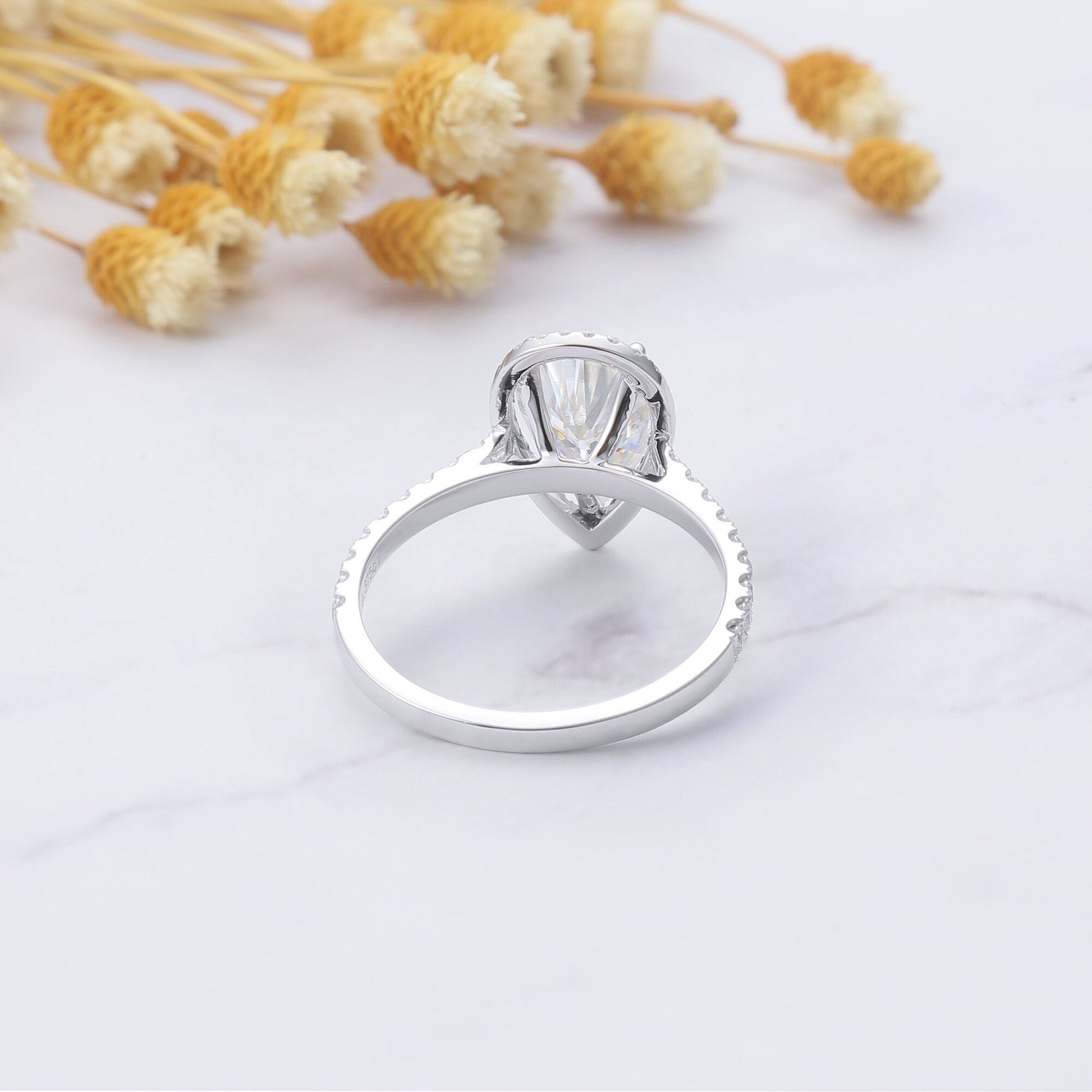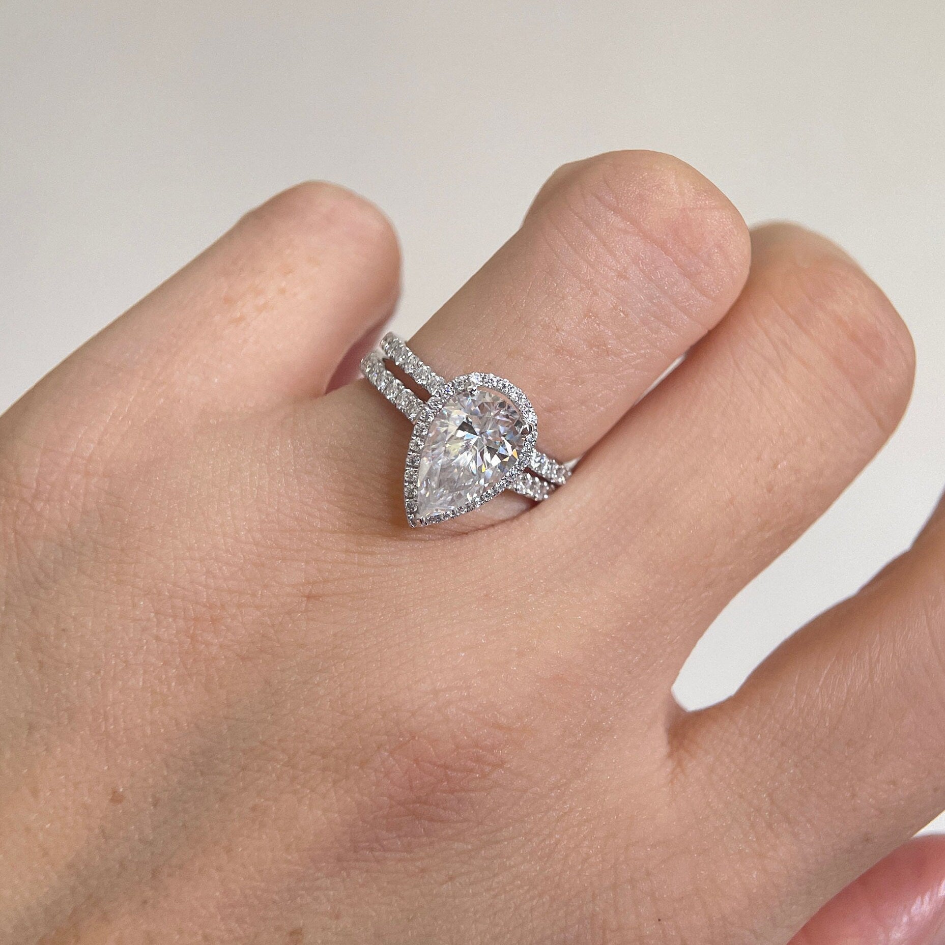 Pear Cut Halo Moissanite Pave Engagement Ring, Unique Wedding Ring Set, 9K/14K/18K Solid Gold Moissanite Bridal Set, Promise Ring for Women