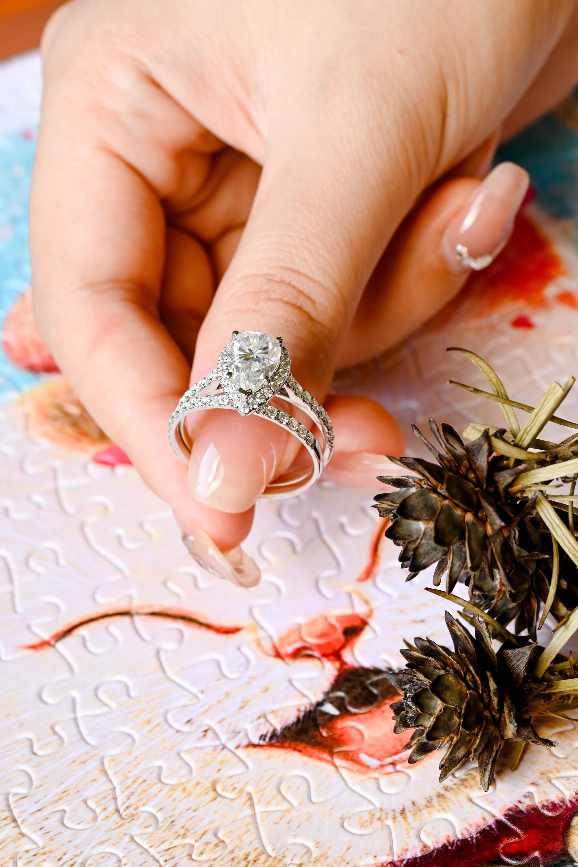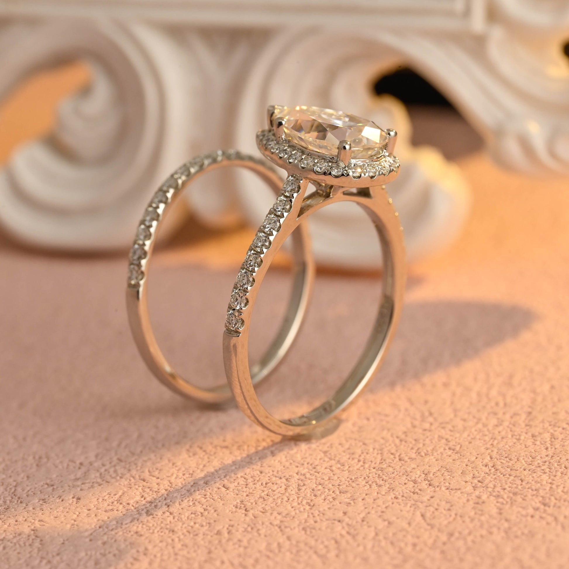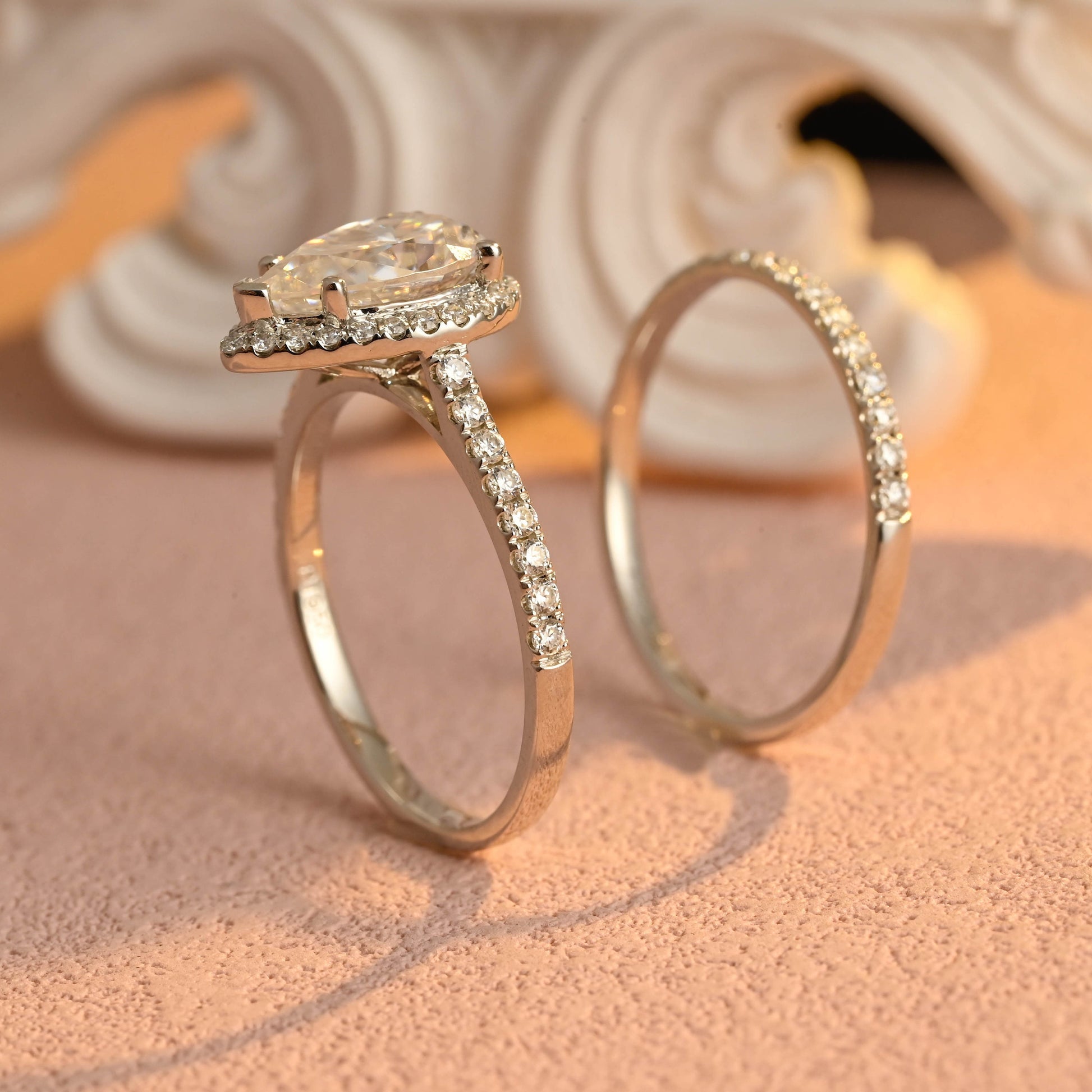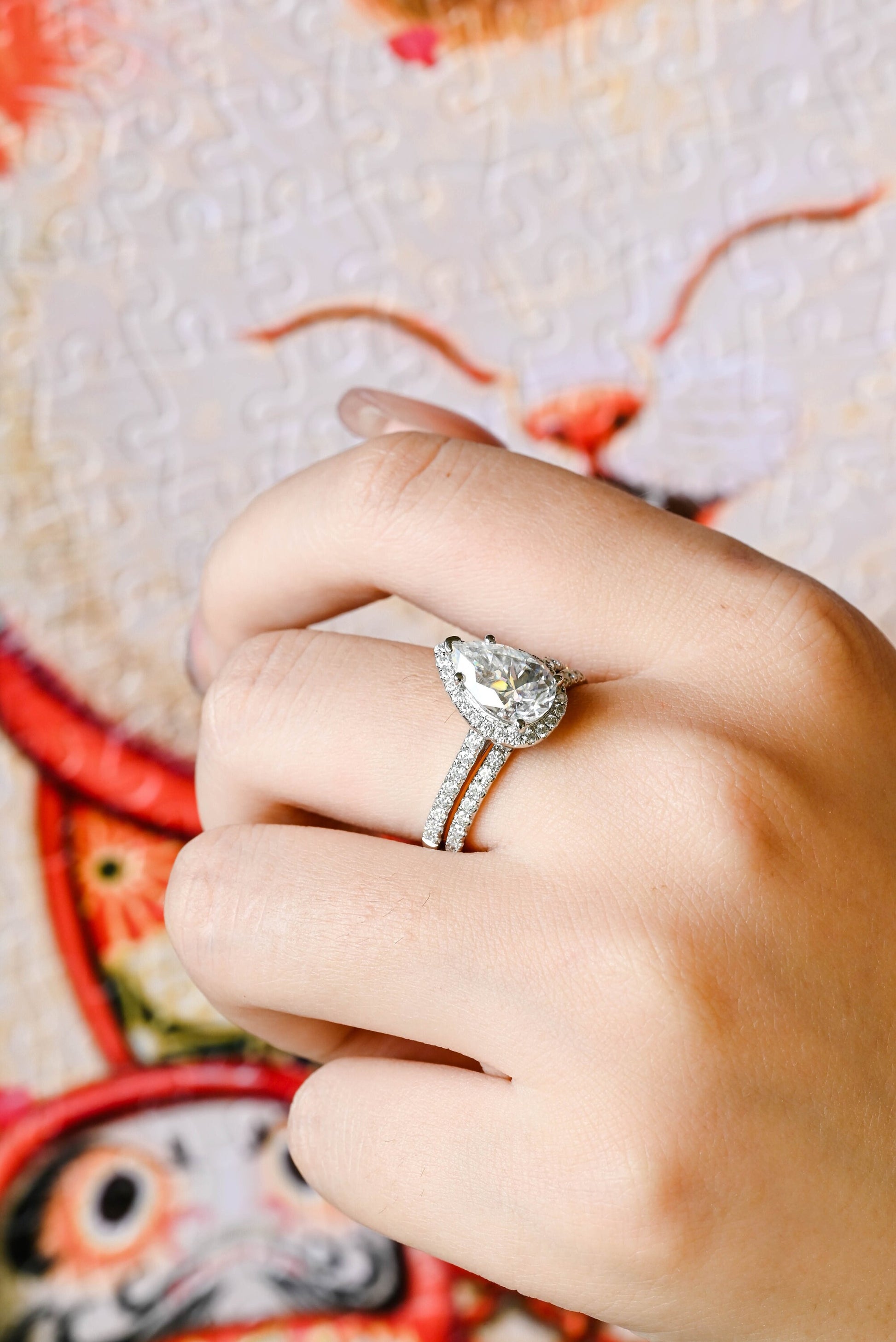 Pear Cut Moissanite Engagement Ring Set for Women