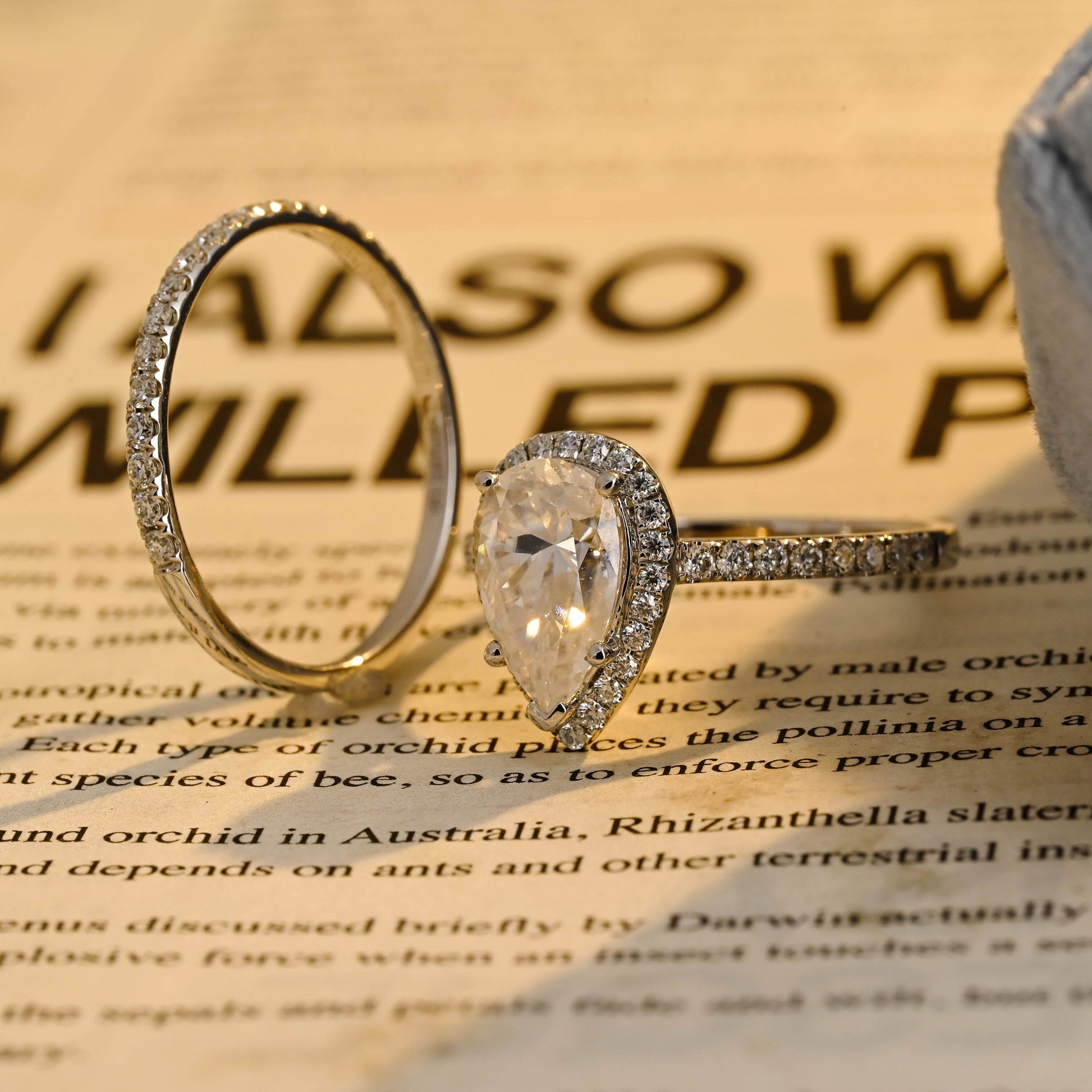 Pear Cut Moissanite Engagement Ring Set, Half-Eternity Style Moissanite Matching Band, Anniversary Gift, Classic Moissanite Bridal Ring Set
