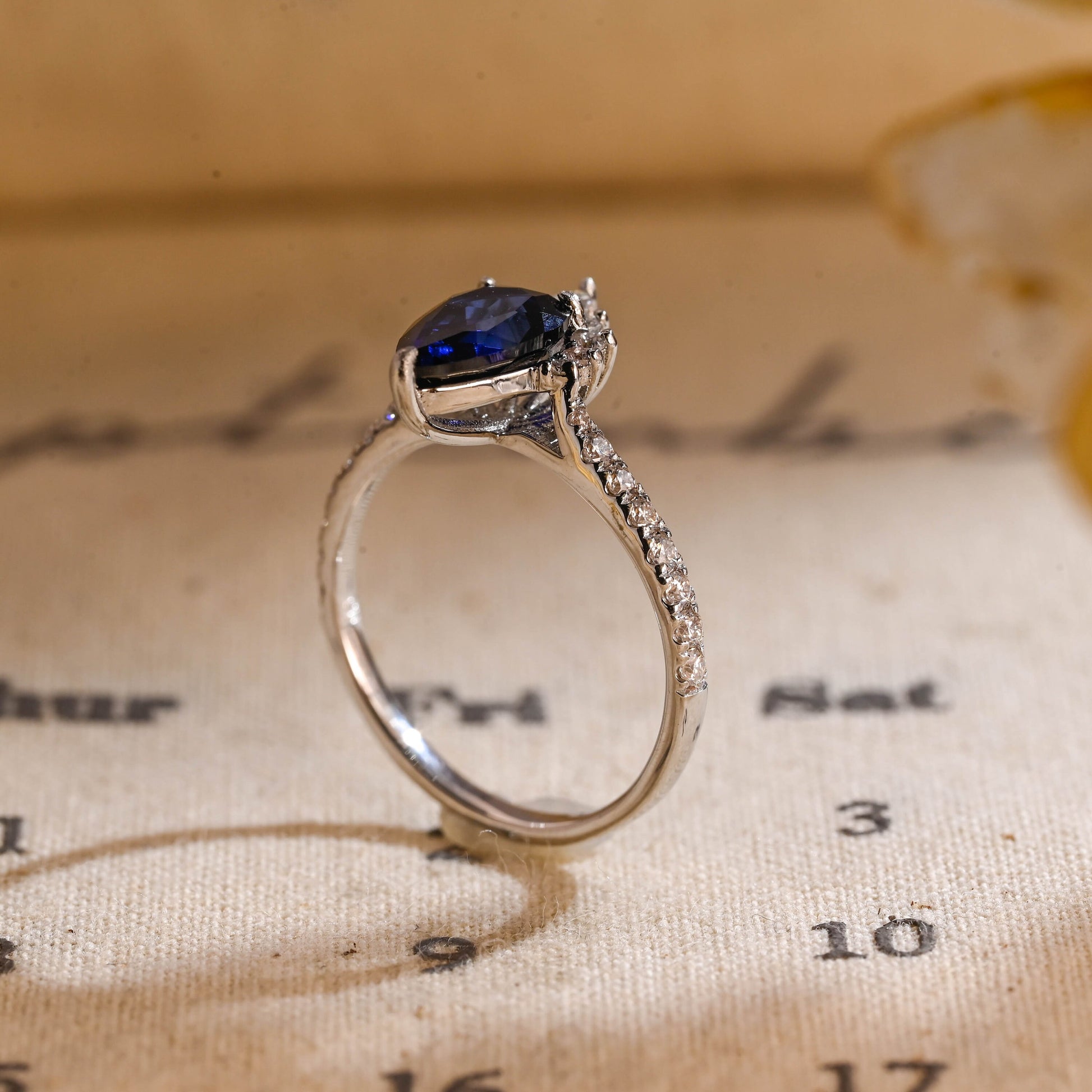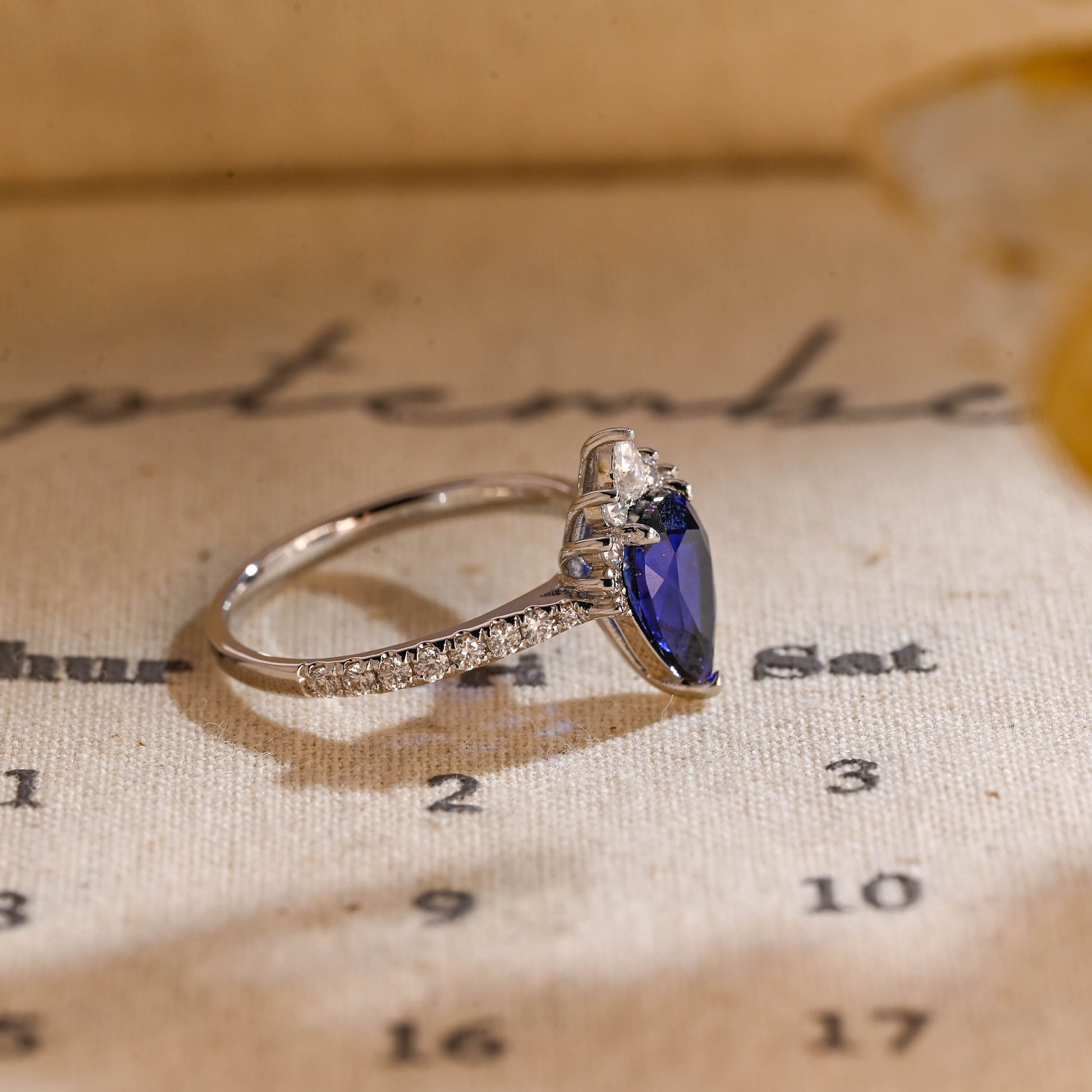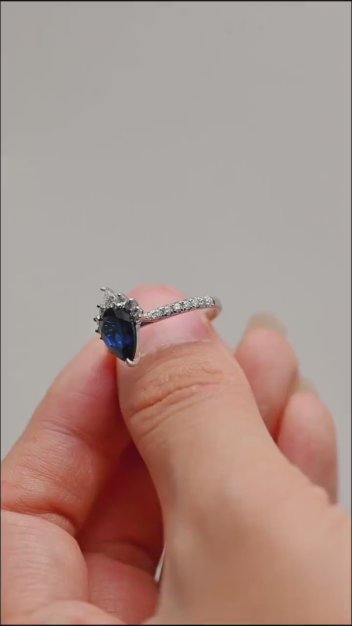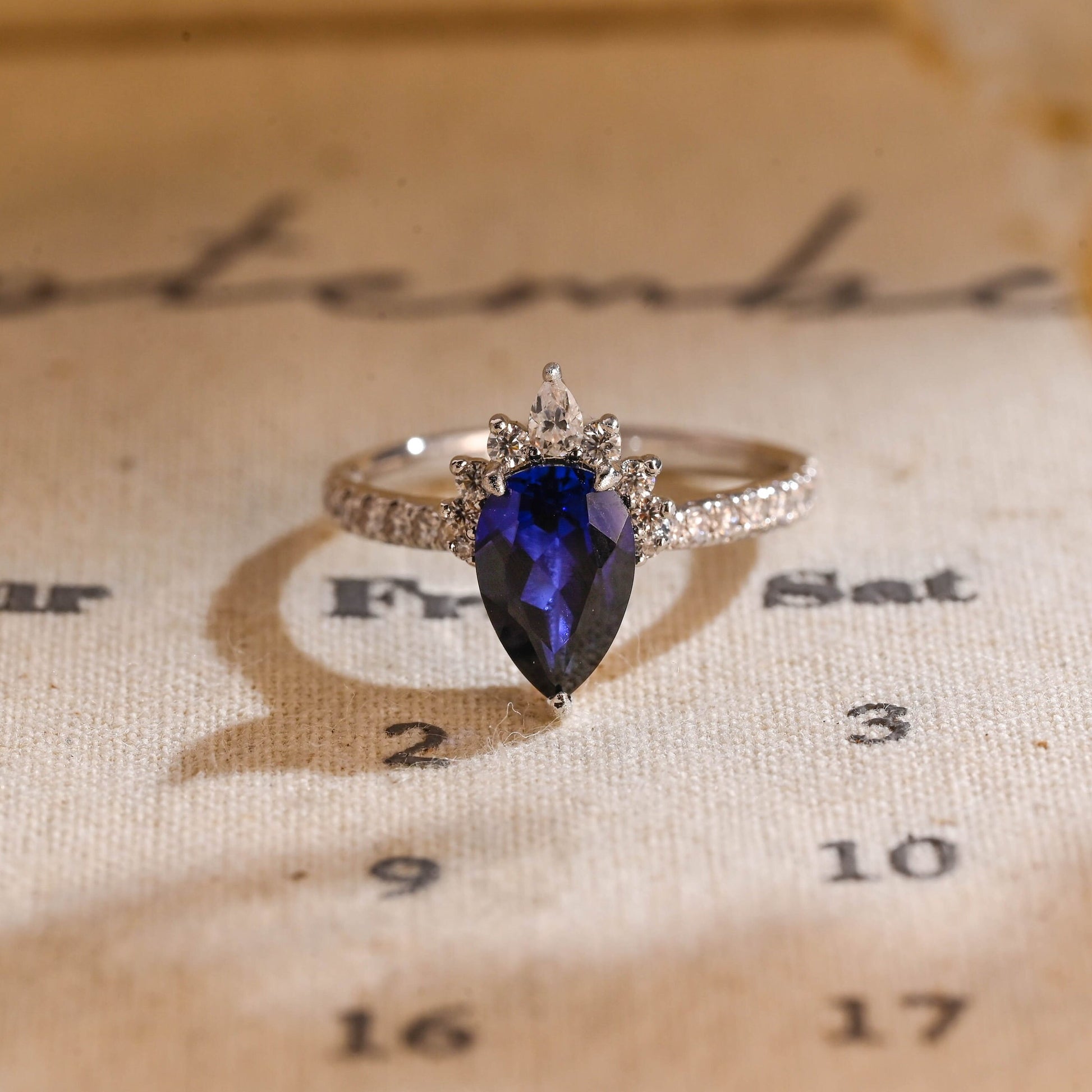 2.00ct Pear Shaped Blue Sapphire Engagement Ring