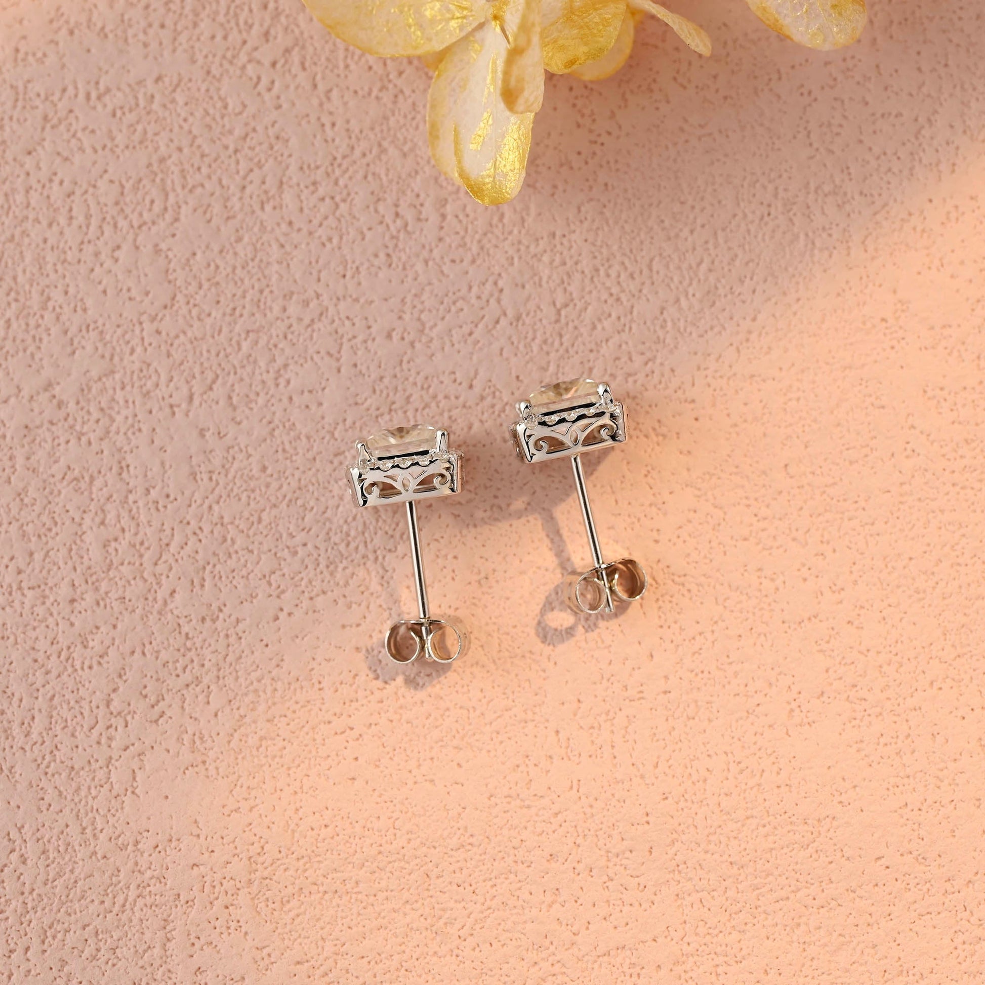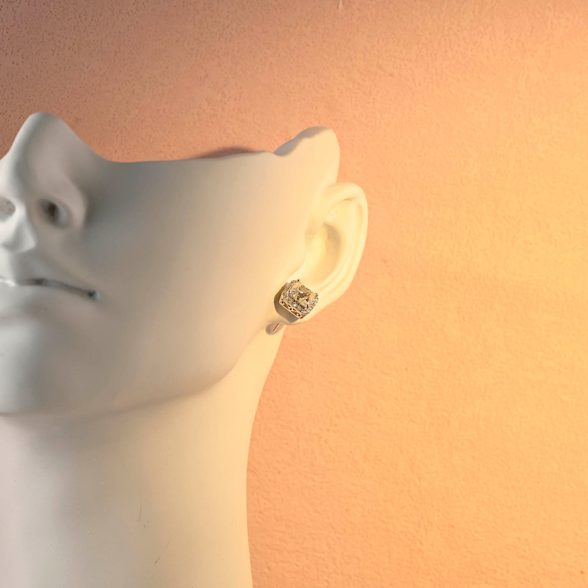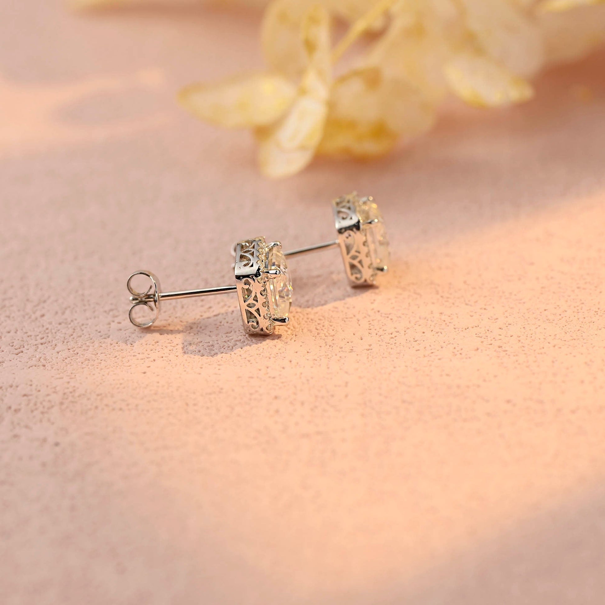 Princess Cut Moissanite Earring Studs Halo/Halo Wedding Earring Stud/Bridal Earring Studs Gold/Anniversary Gift Birthday Gift for Woman