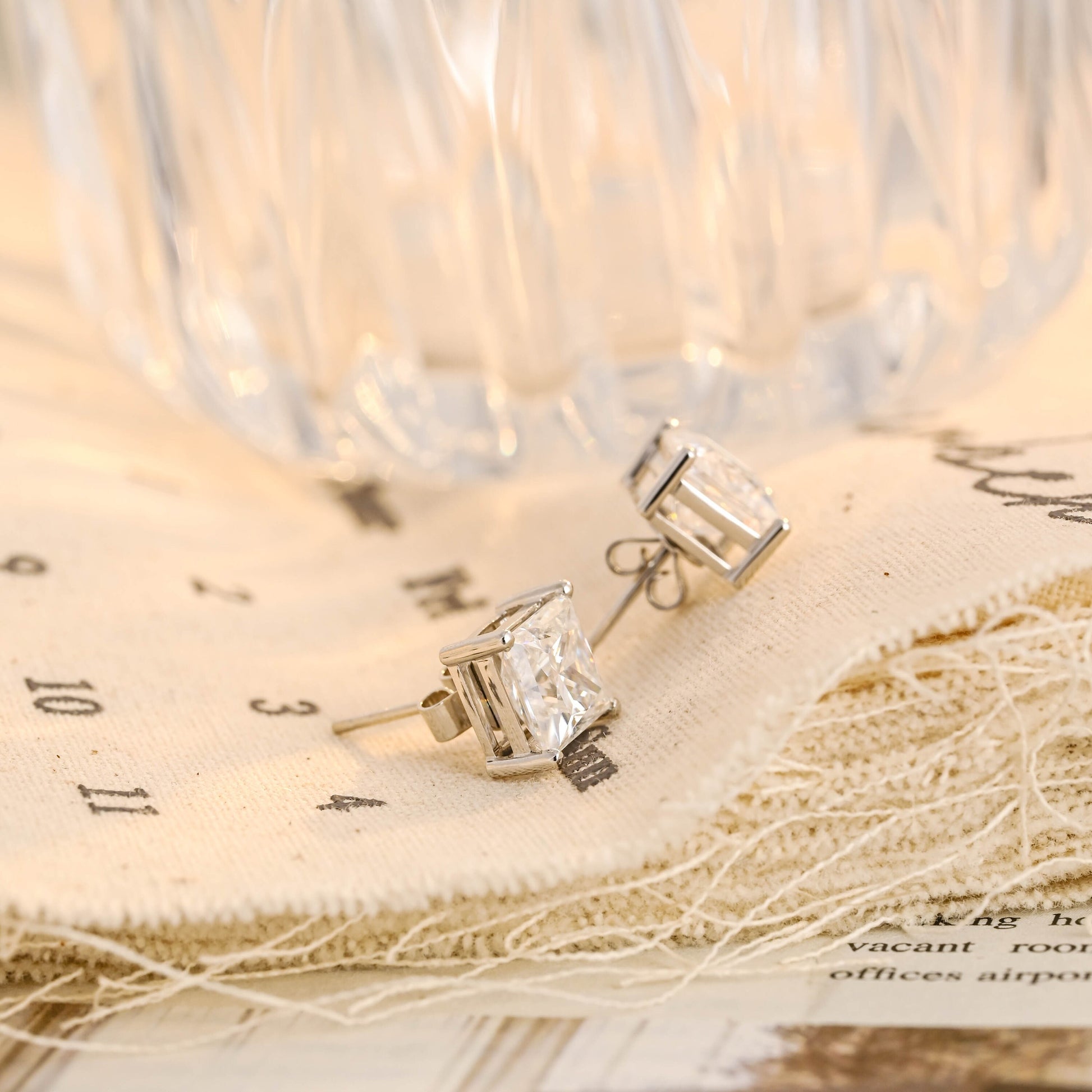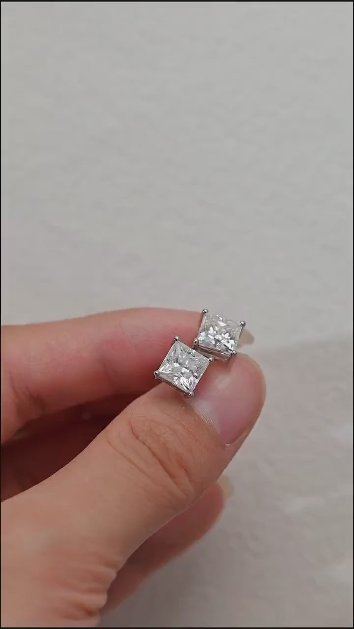 Princess Cut Moissanite Engagement Earring Studs, Princess Solitaire Solid Gold Anniversary/Birthday/Christmas Gift for Woman/Girlfriend
