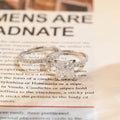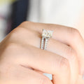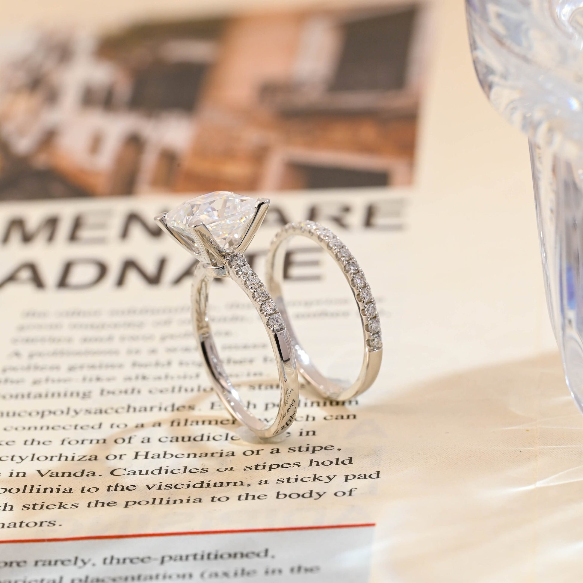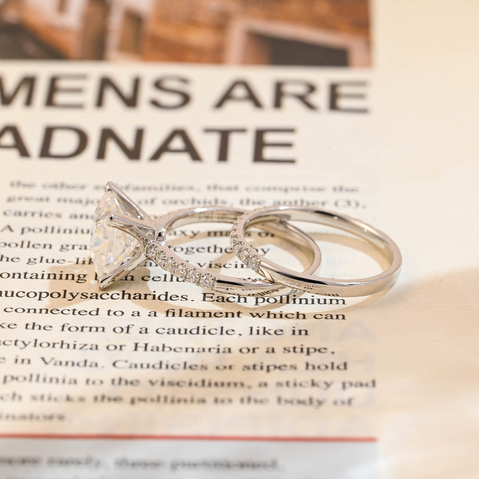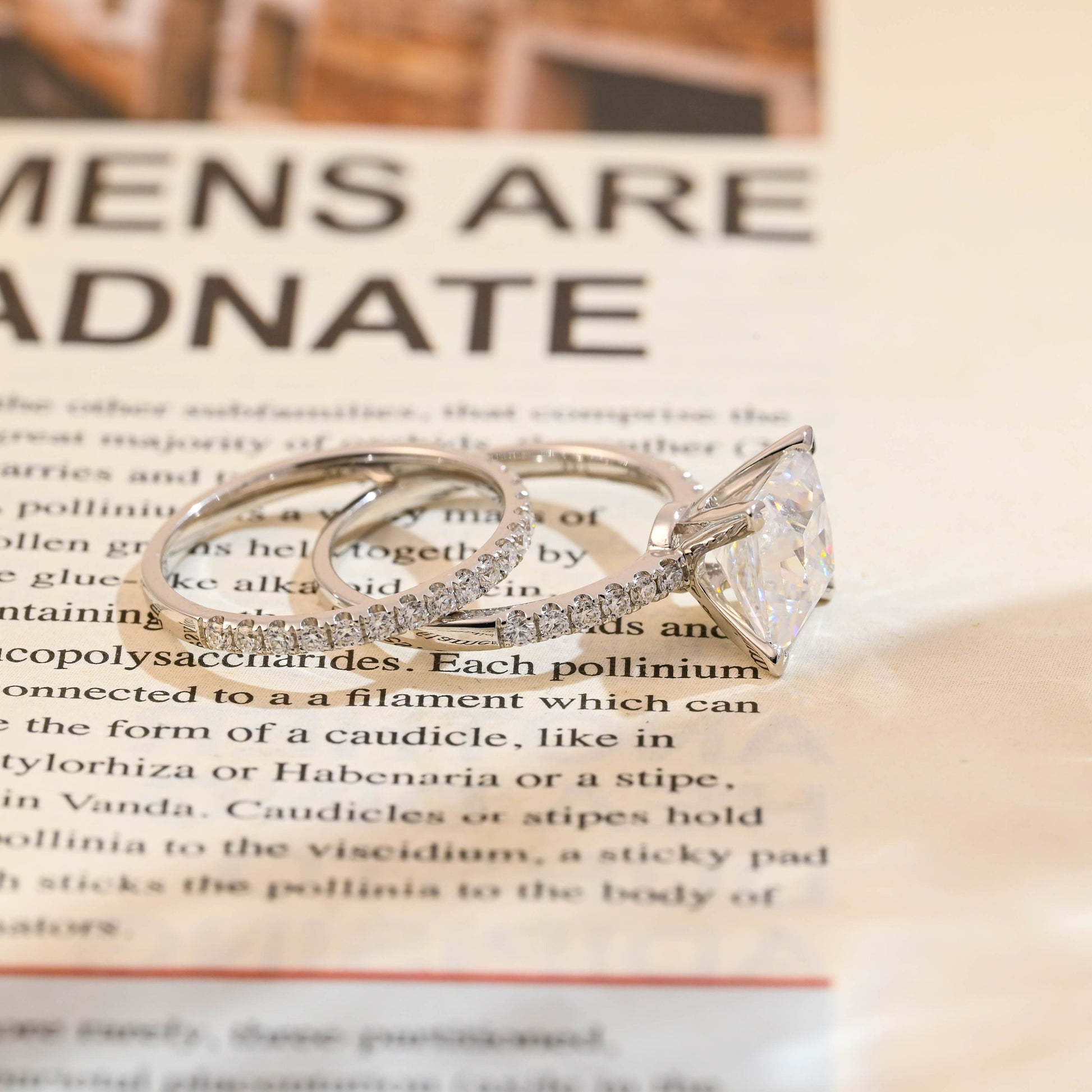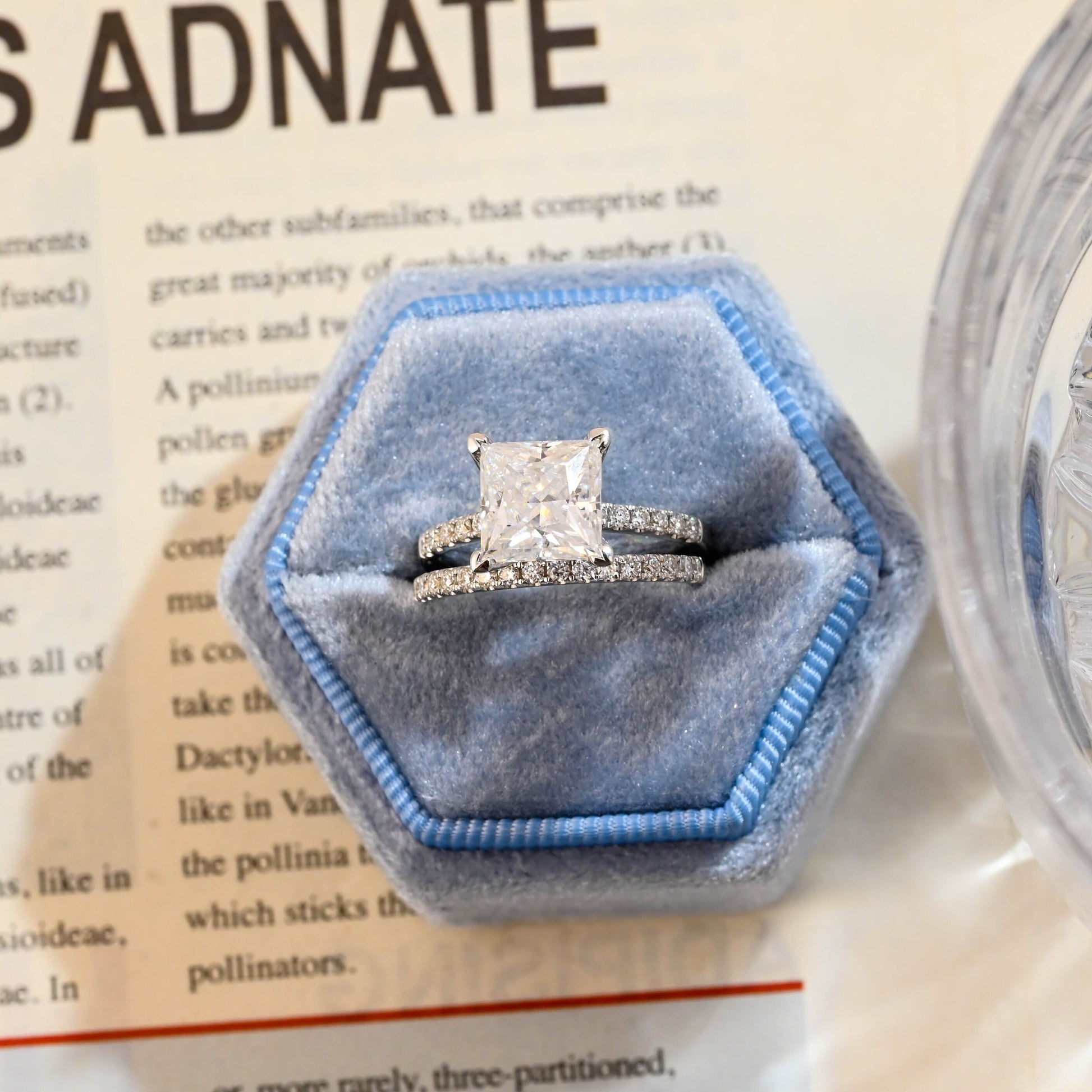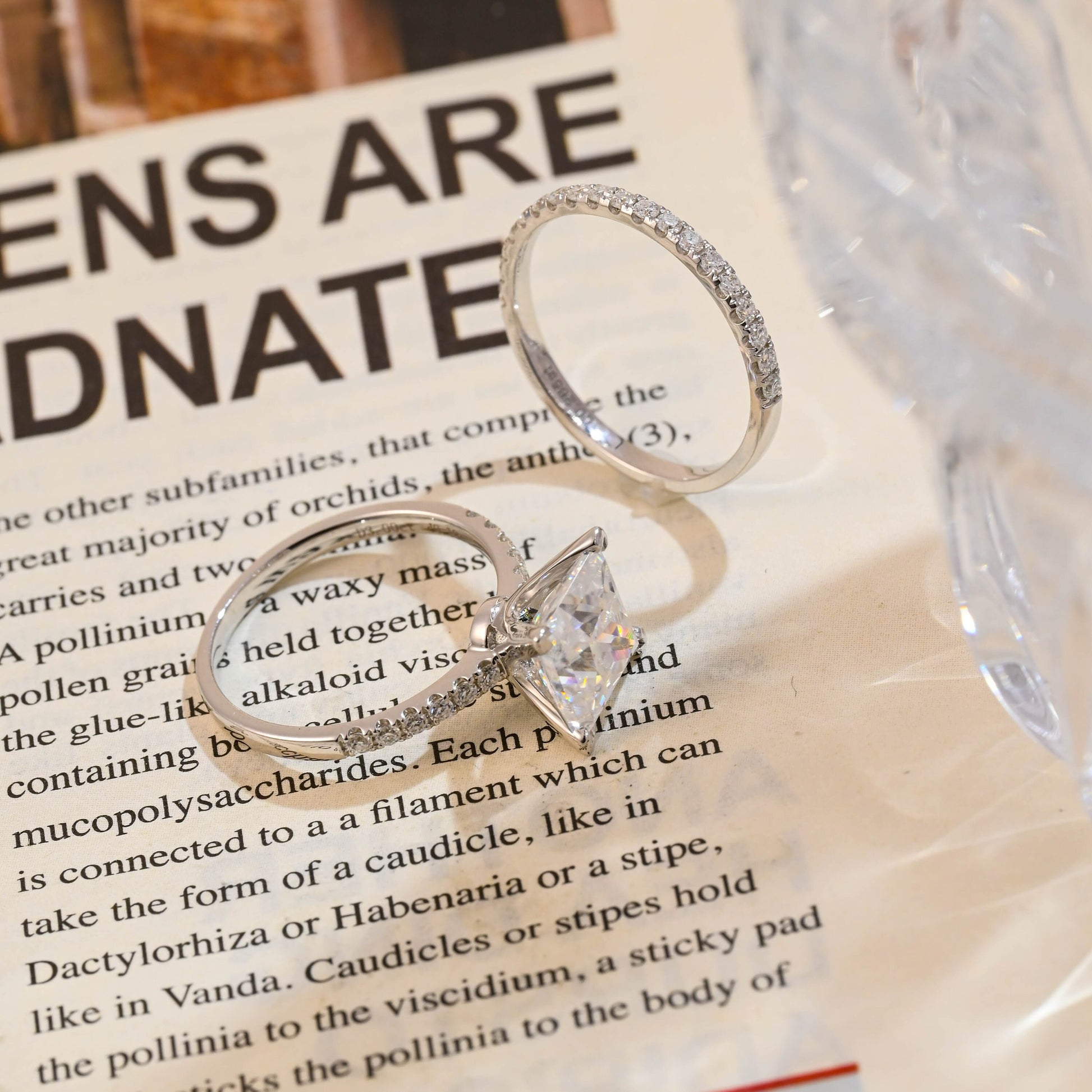 Princess Moissanite Bridal Ring Set, Solid Gold Half-Eternity Wedding Band Matching Ring Set For Women Wife, Moissanite Engagement Ring Set