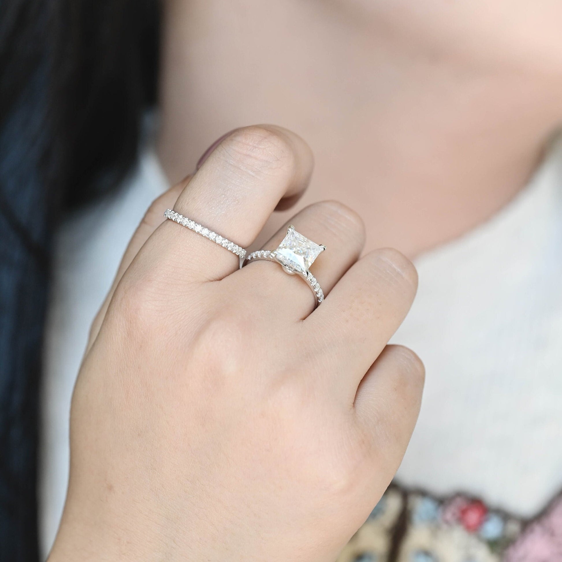 Princess Moissanite Solid Gold Half-Eternity Wedding Band Matching Ring Set For Women
