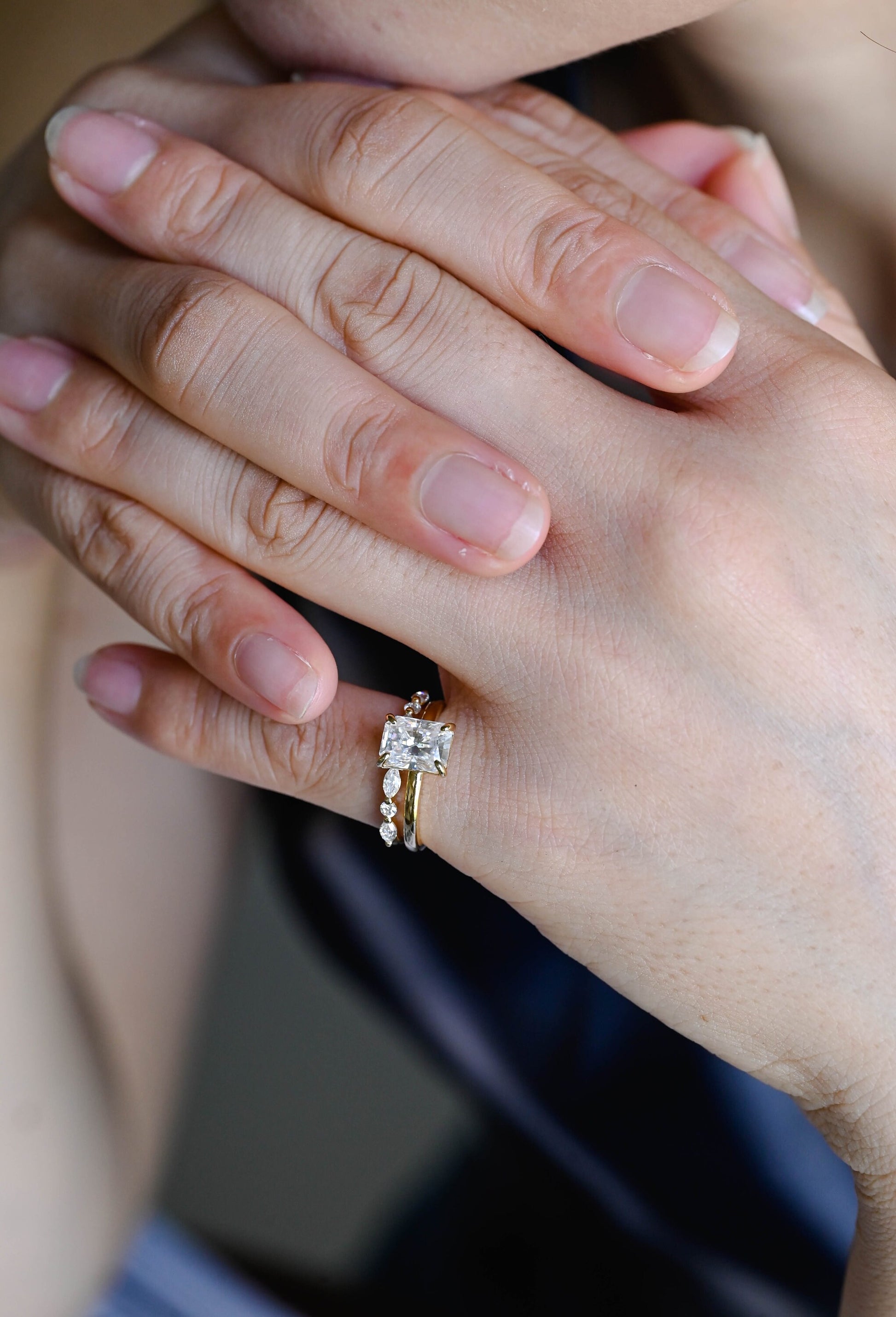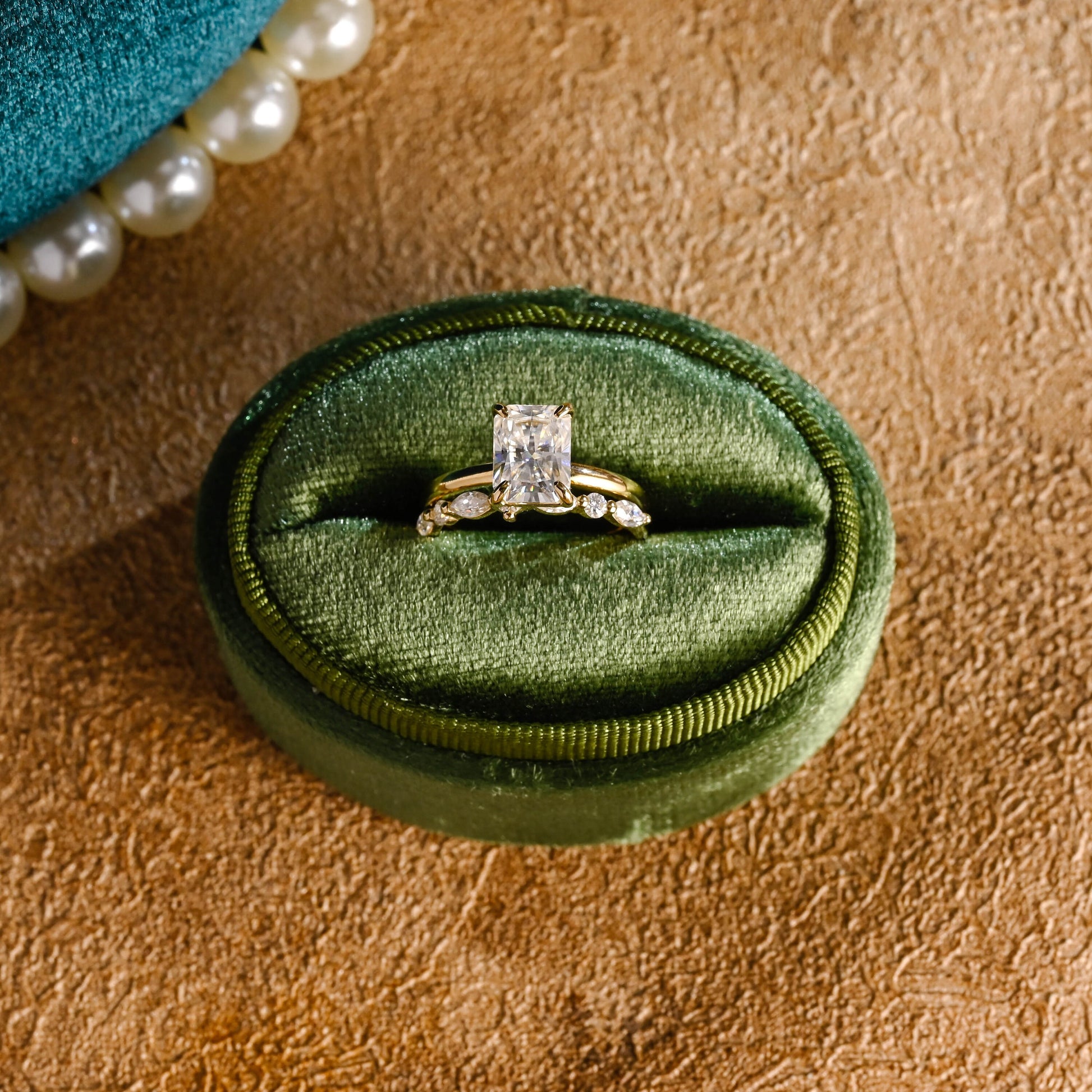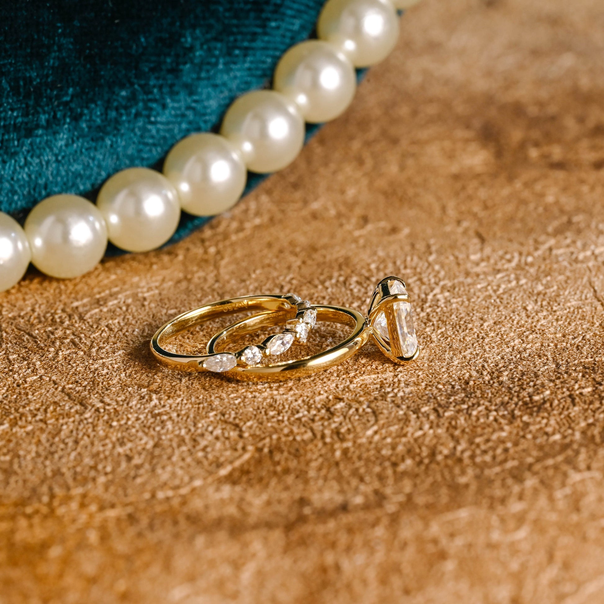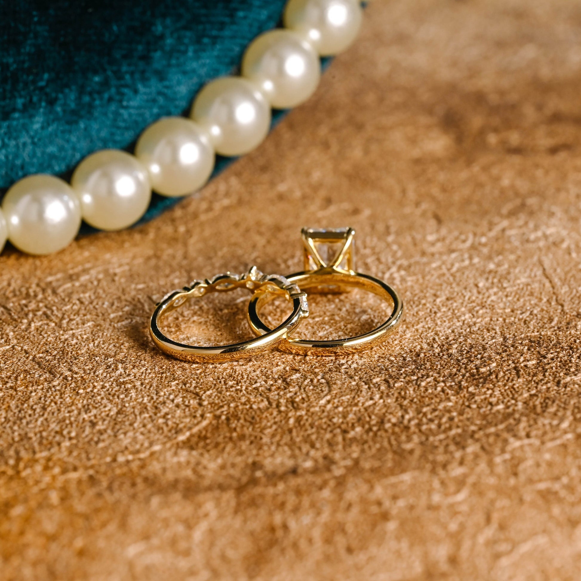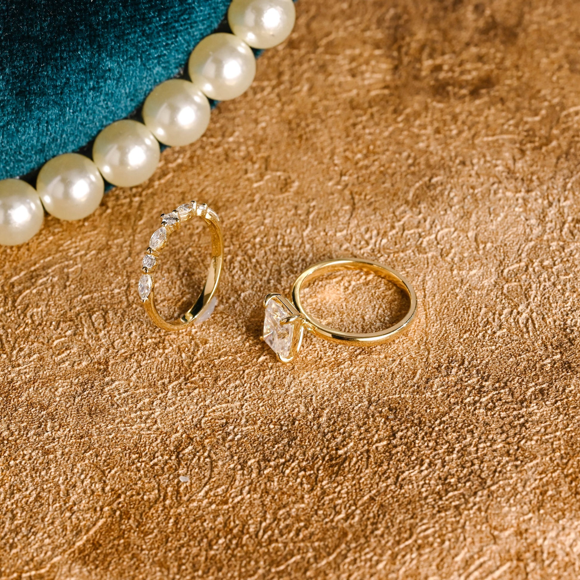 Radiant Cut Moissanite Engagement Ring Set, Solid Gold Wedding Ring Set, Vintage Stackable Bridal Set, Classic Anniversary Gift for Woman