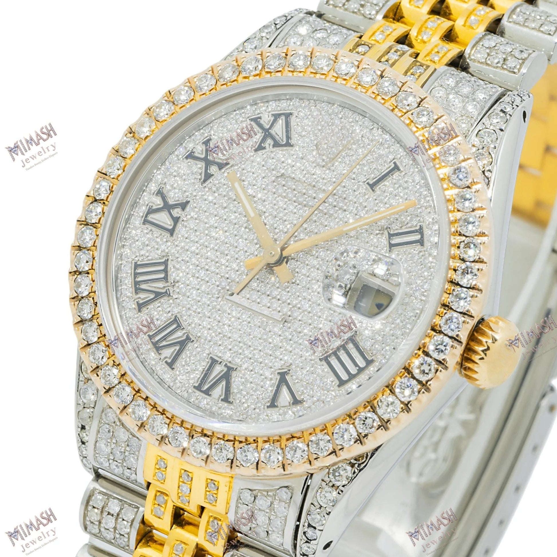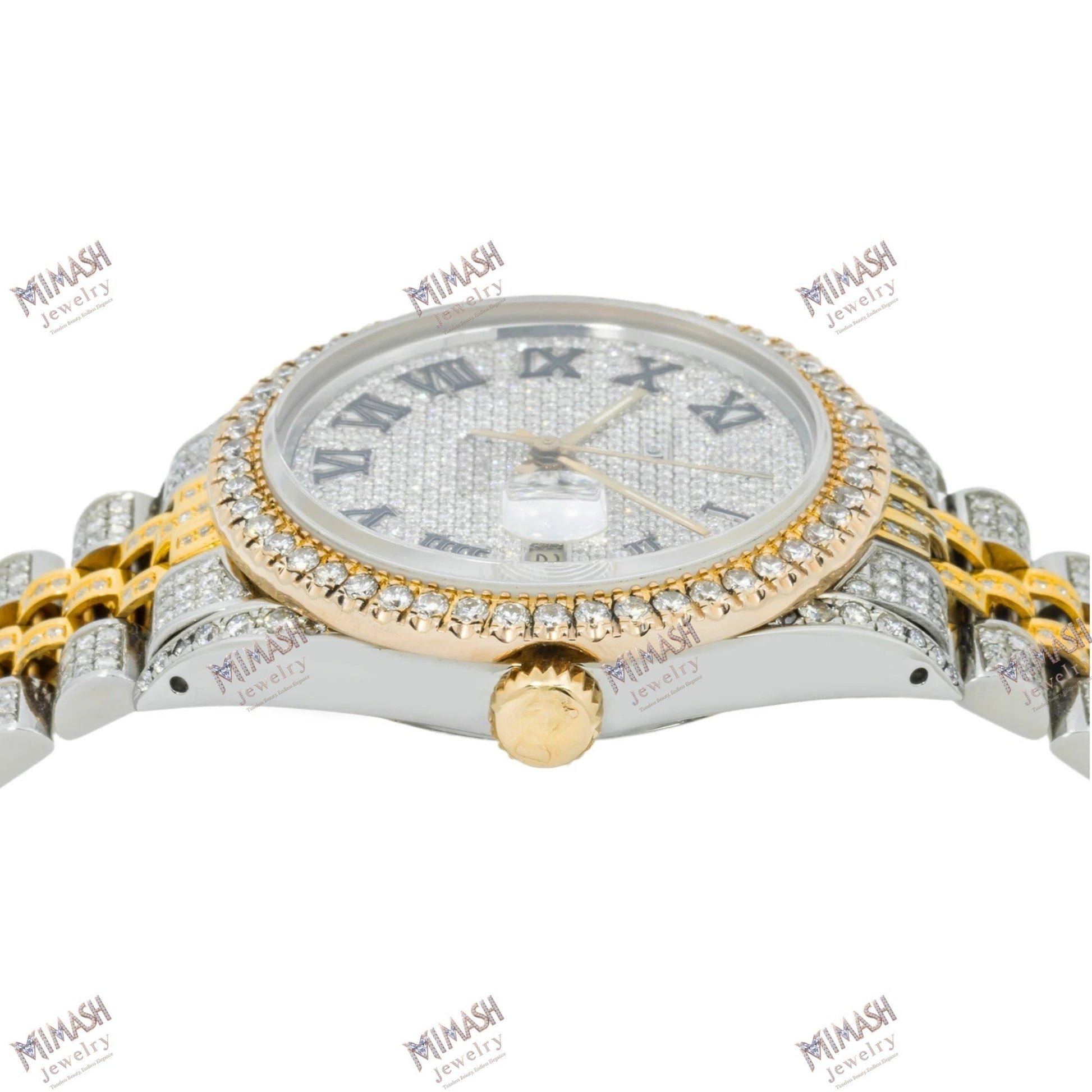 High-End Moissanite Watch 36MM Diamond Roman Dial Bezel And Two Tone Jubilee Bracelet