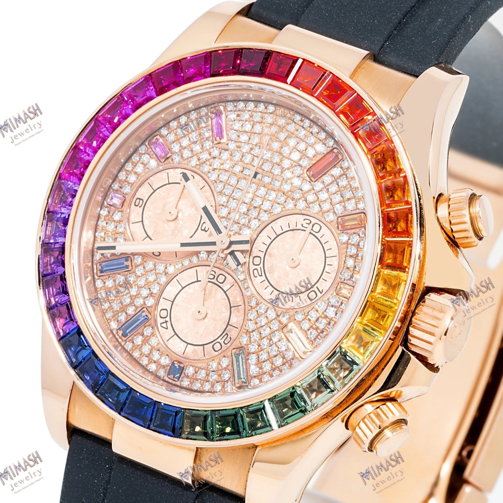 Dial – 18K Rose Gold Rainbow Custom Aftermarket Diamond Dial