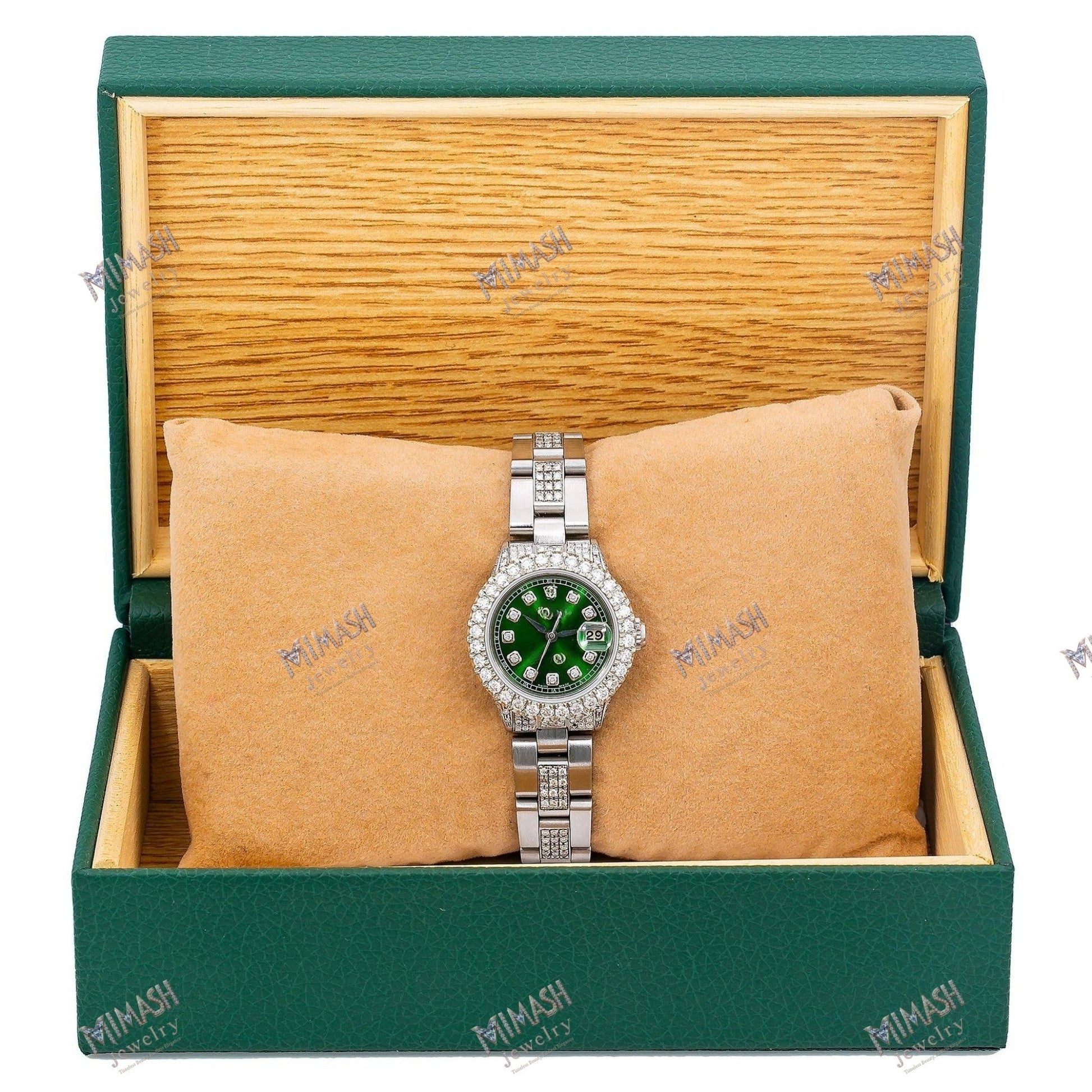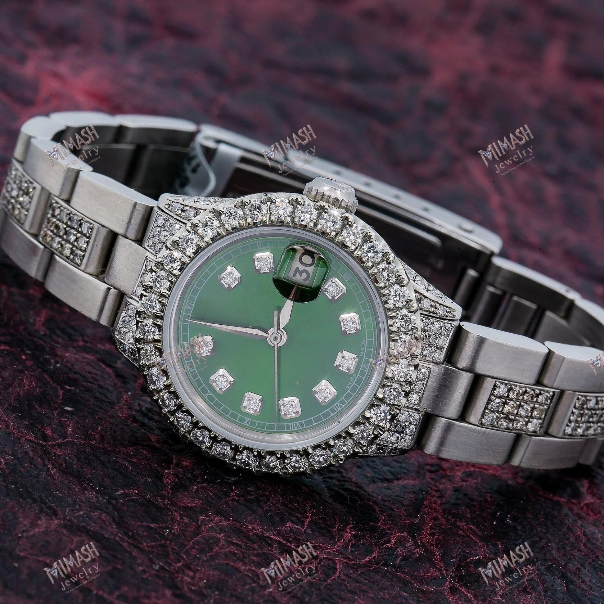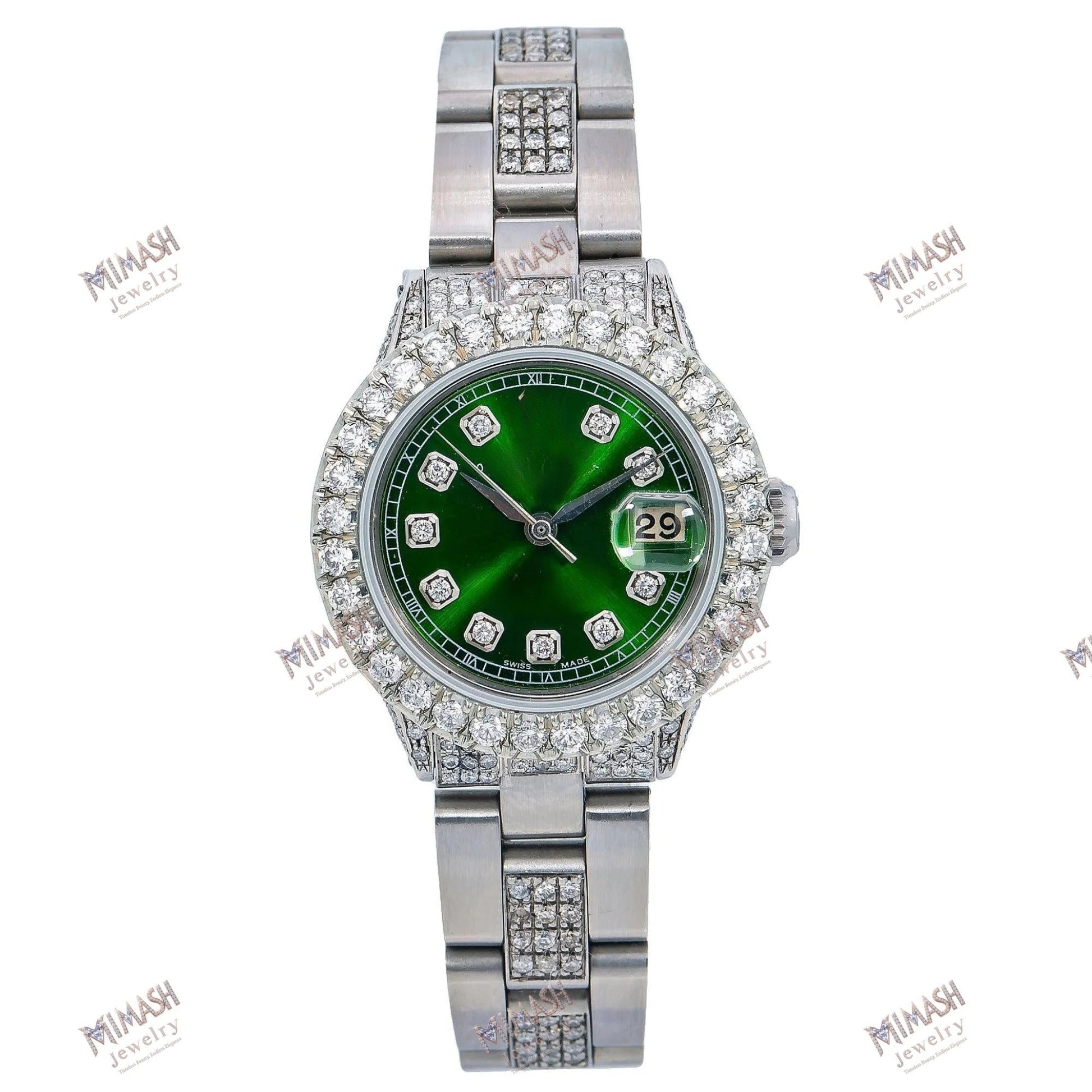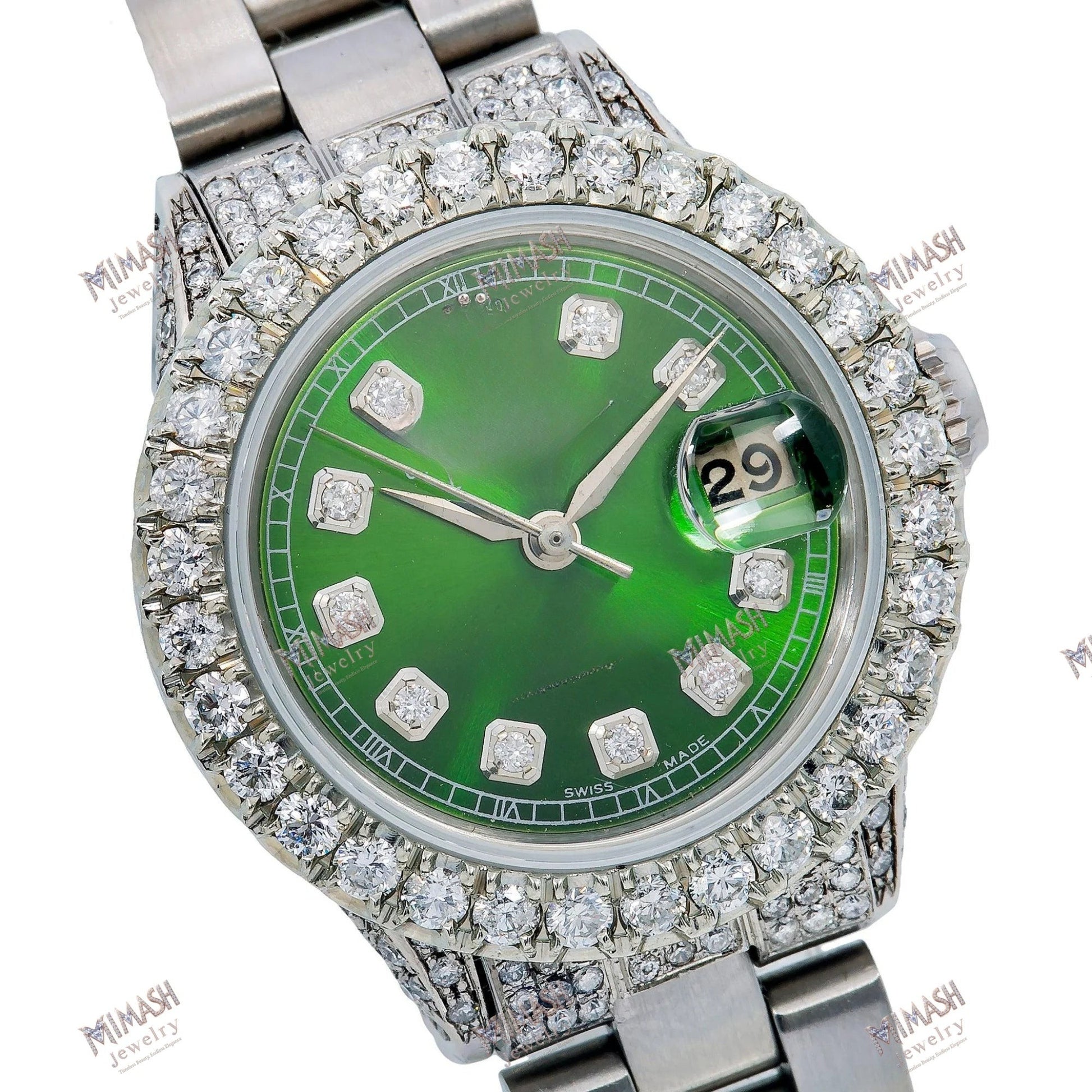 Unisex Moissanite Iced Out Watch Green Diamond Dial With 6.05 CT Diamonds