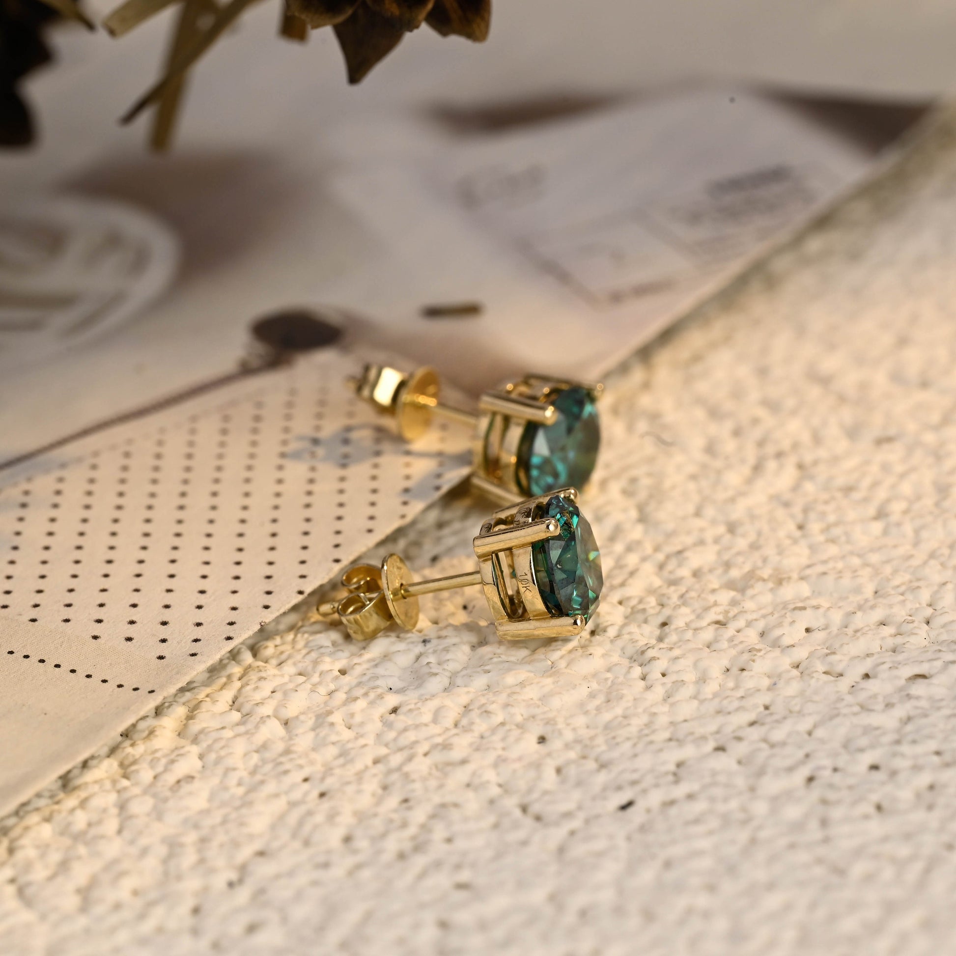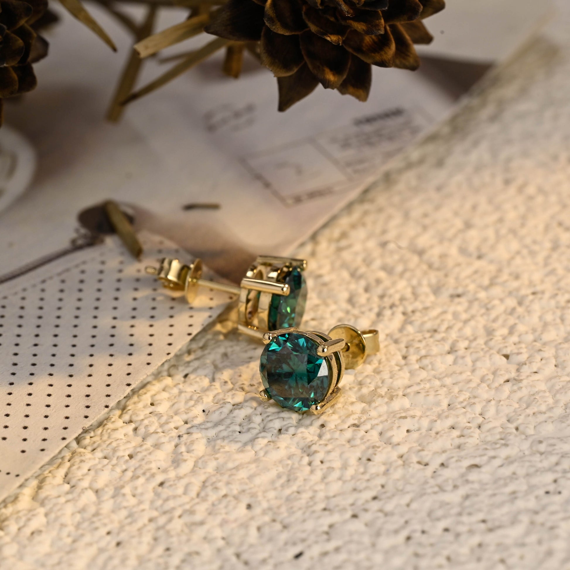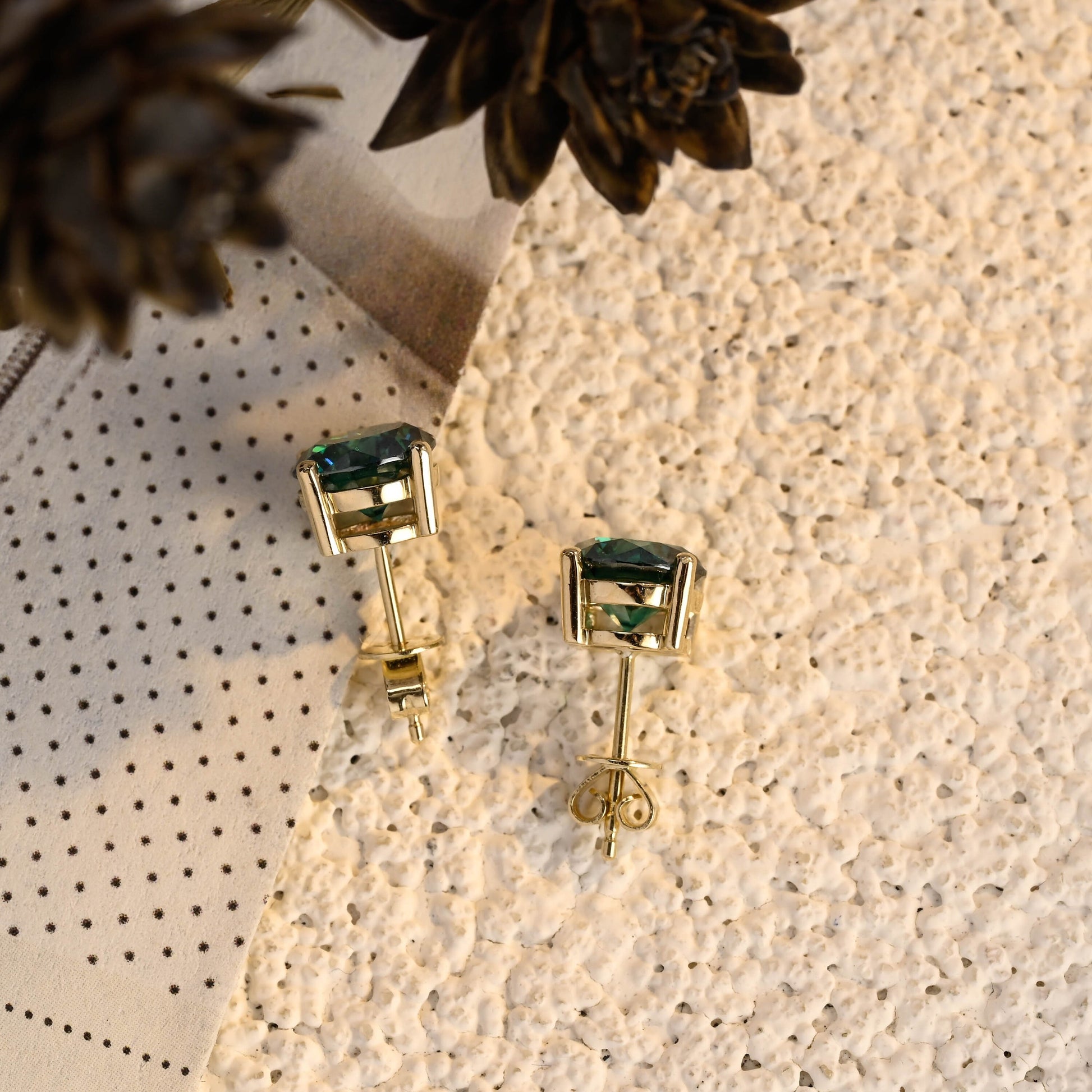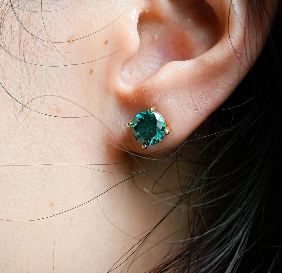round cut green moissanite earring stud real solid gold christmas gift for woman