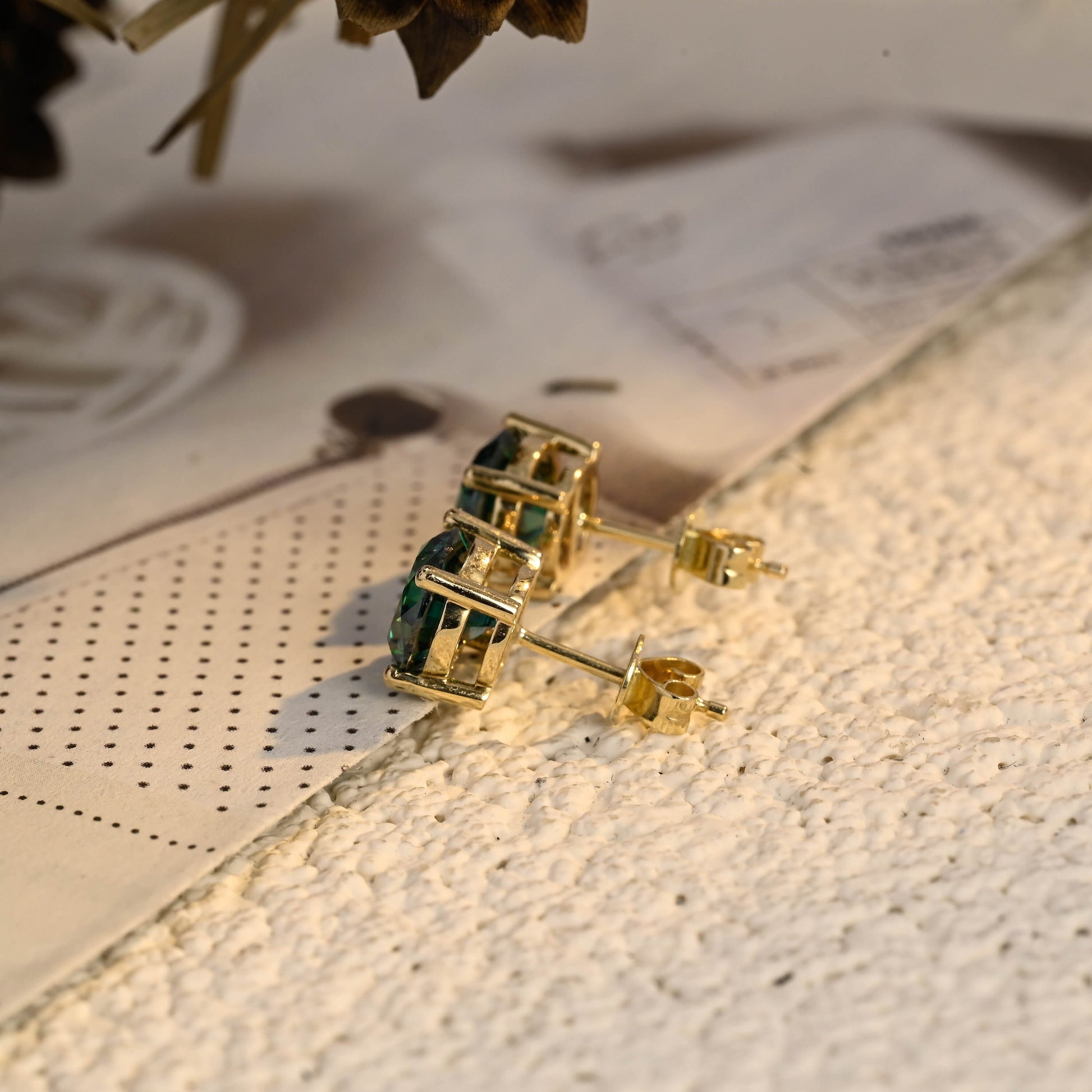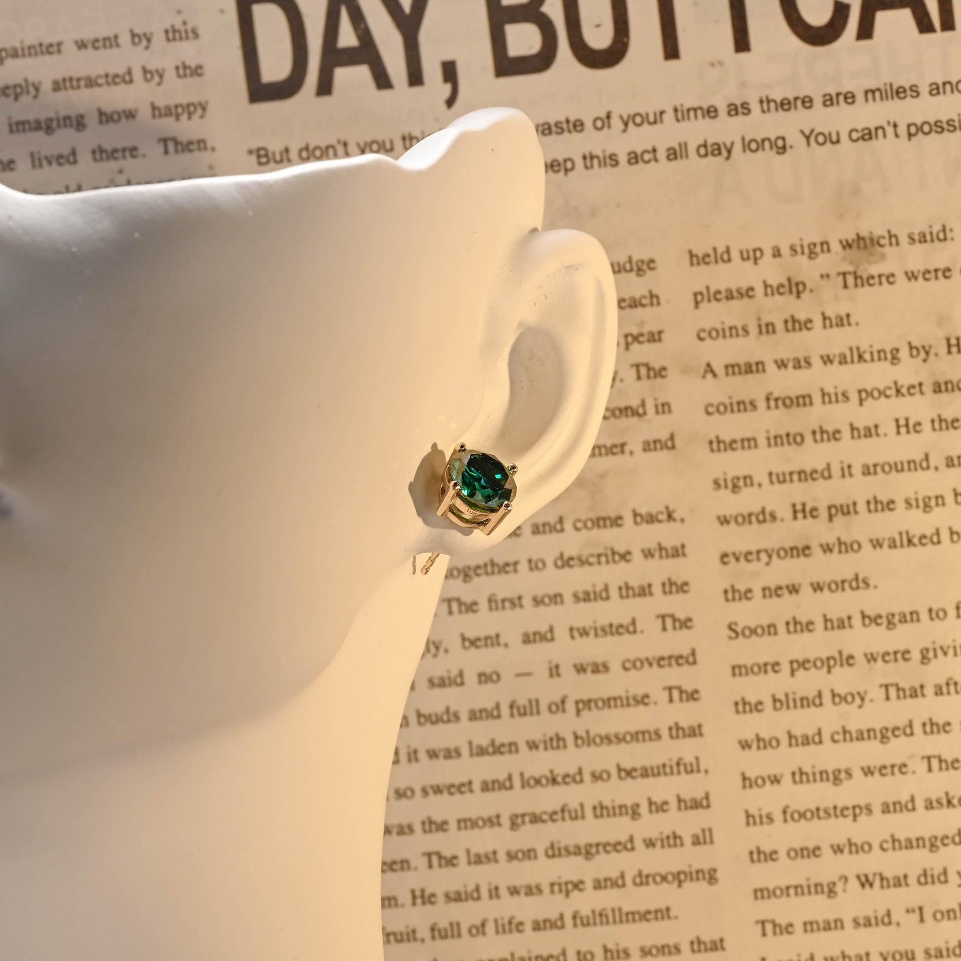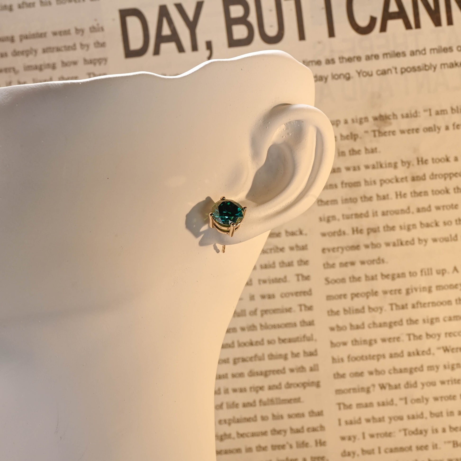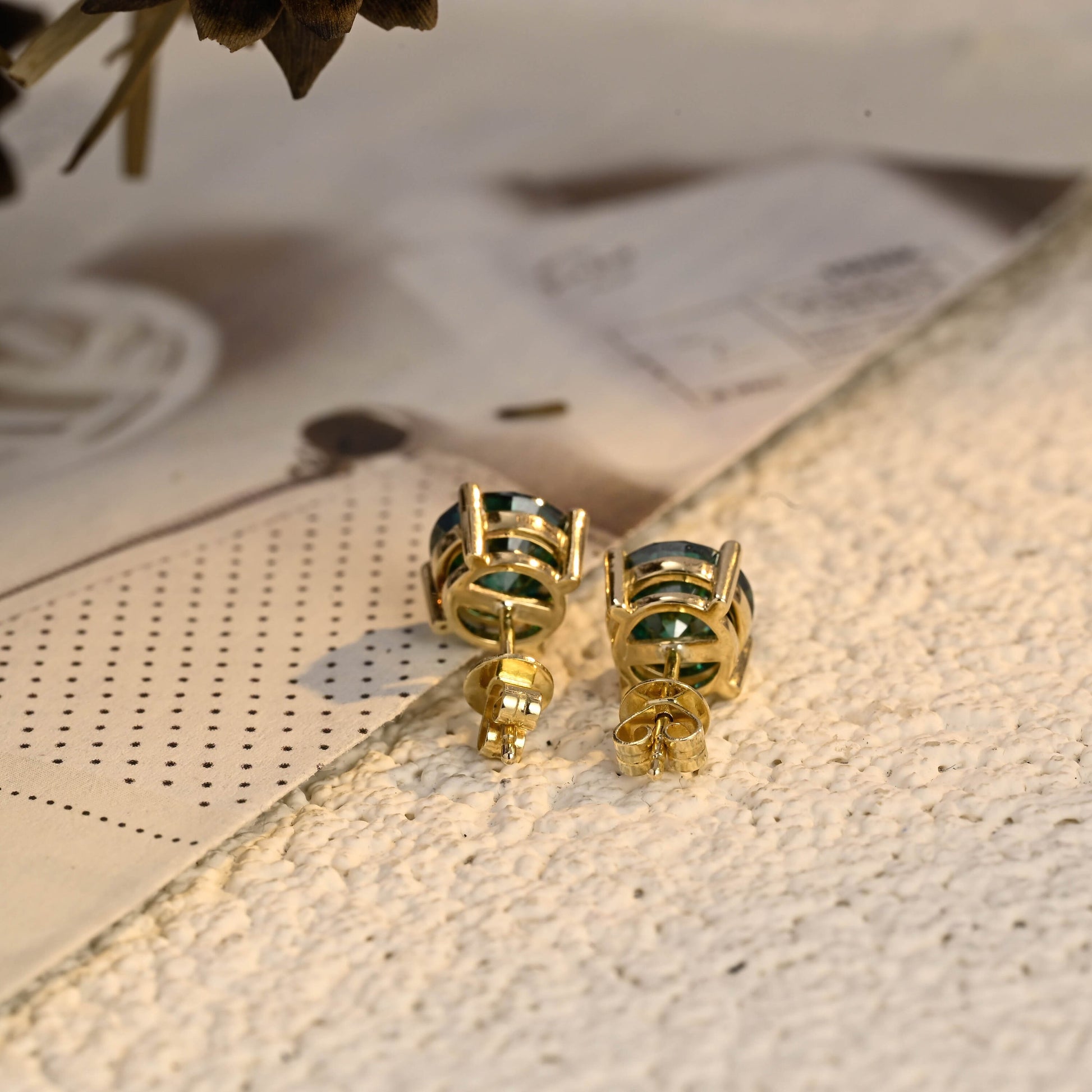 round cut green moissanite earring stud real solid gold christmas gift for woman