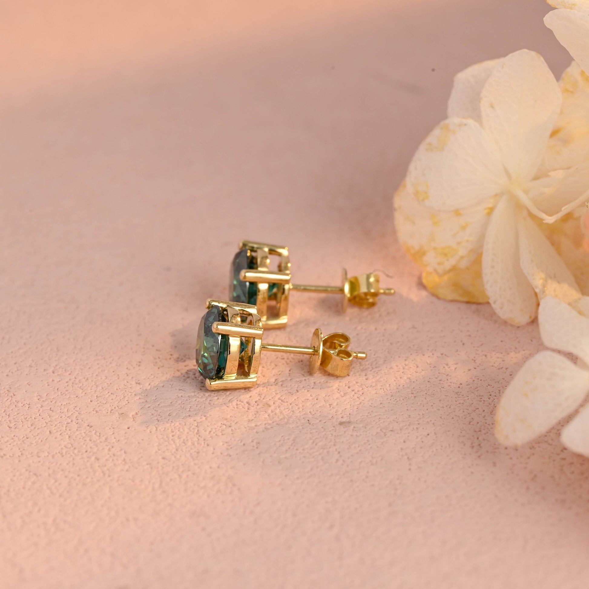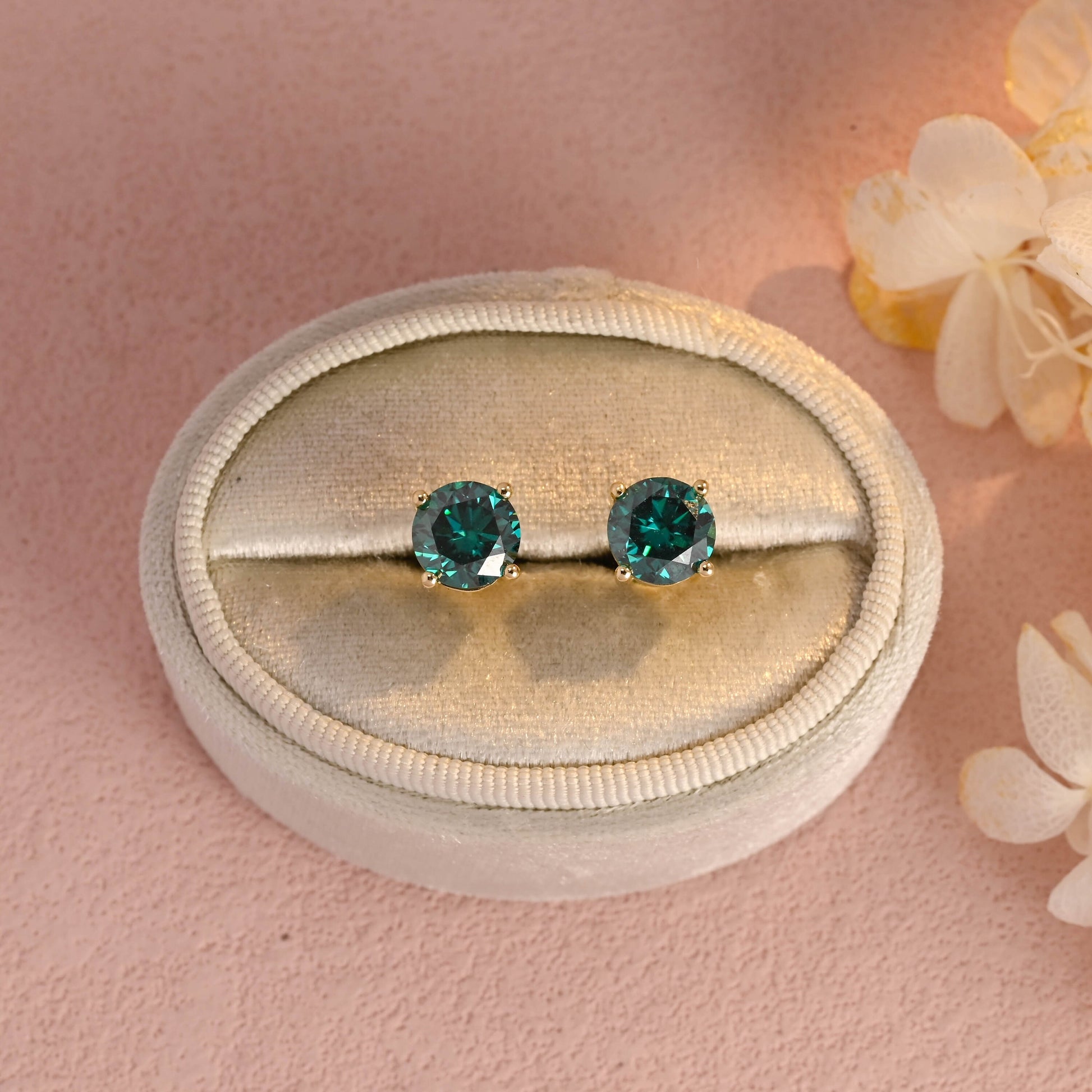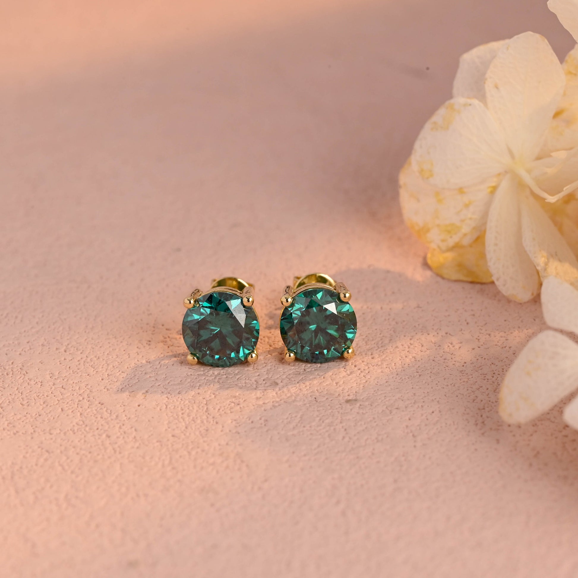 Round Cut Green Moissanite Earrings Stud,Moissanite Engagement Stud,Classic 4 Prongs Gold Round Earrings Studs,Anniversary Gift for Women