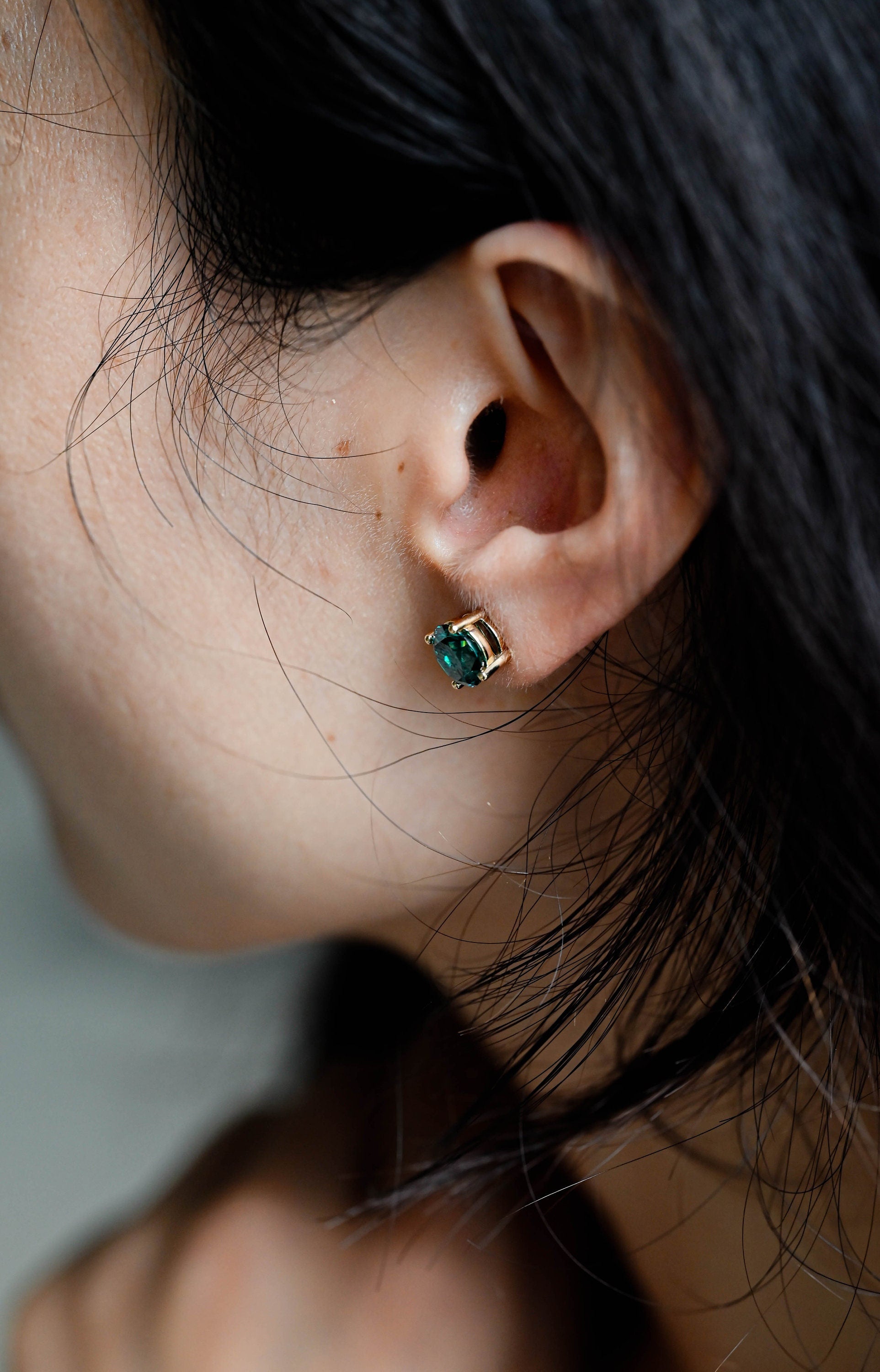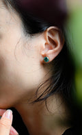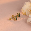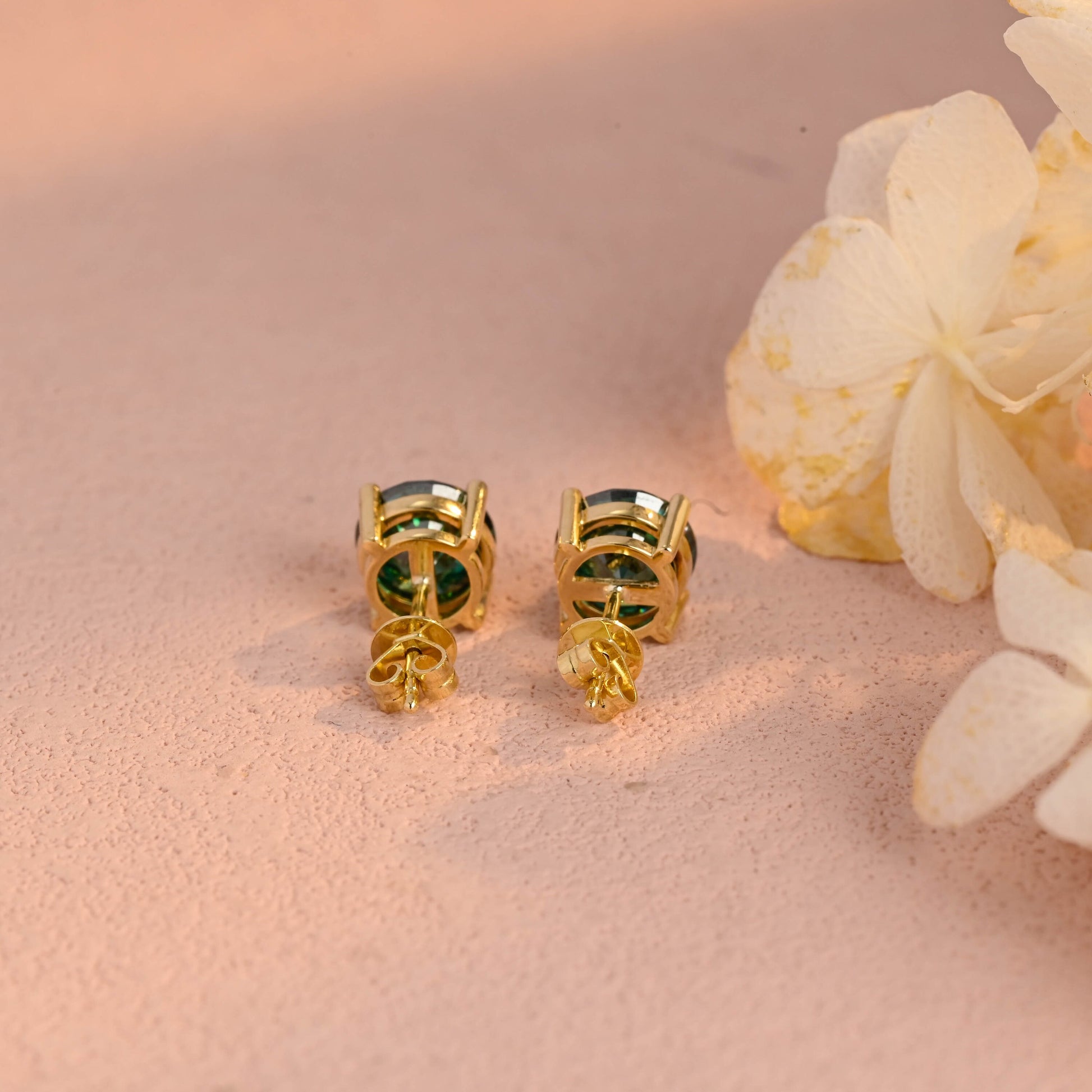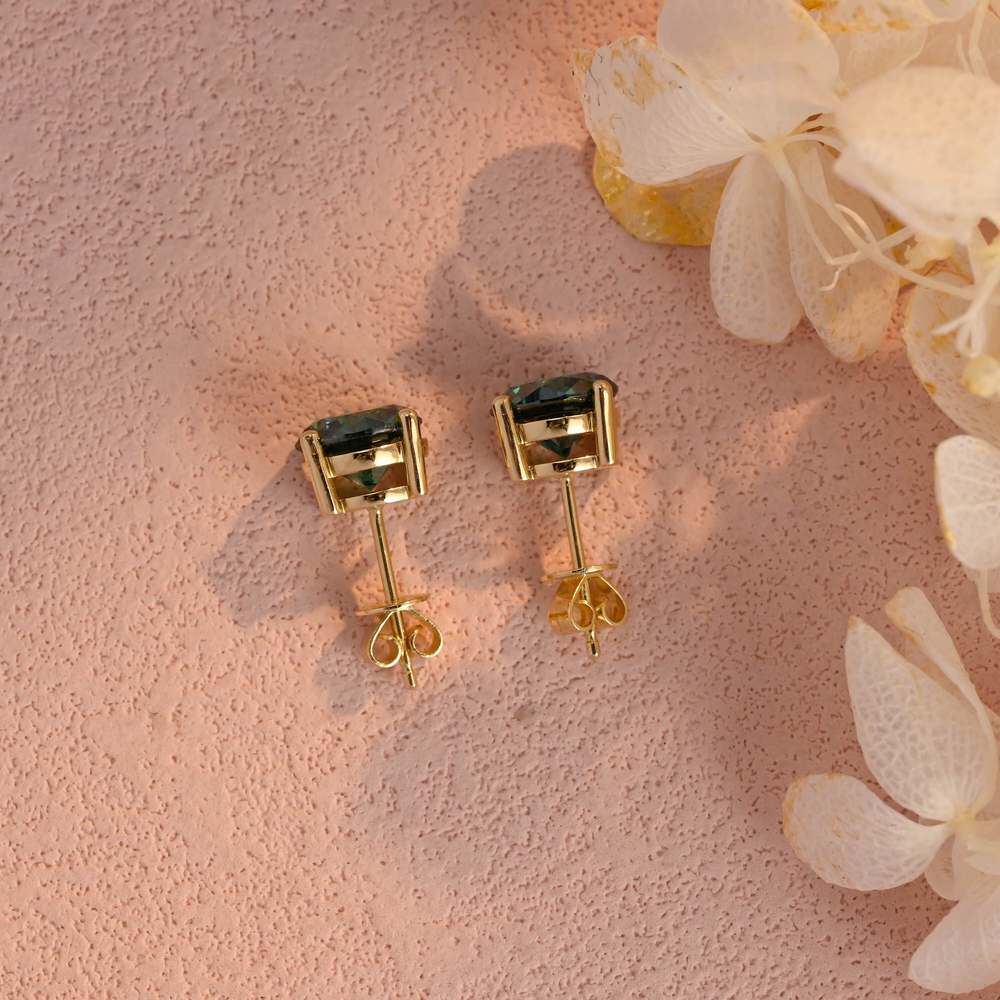 Round Cut Green Moissanite Earrings Stud,Moissanite Engagement Stud,Classic 4 Prongs Gold Round Earrings Studs,Anniversary Gift for Women