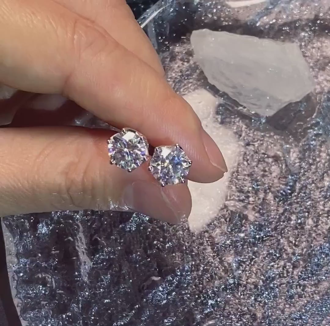 Round Cut Moissanite Earrings Stud, 9K/14K/18K Solid Gold 6 Prongs Moissanite Flower Setting Stud for Woman