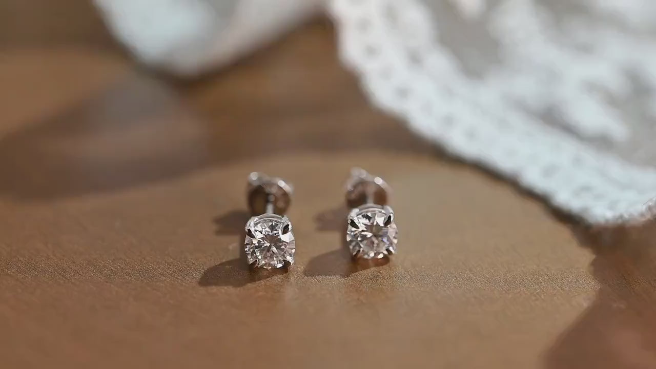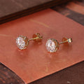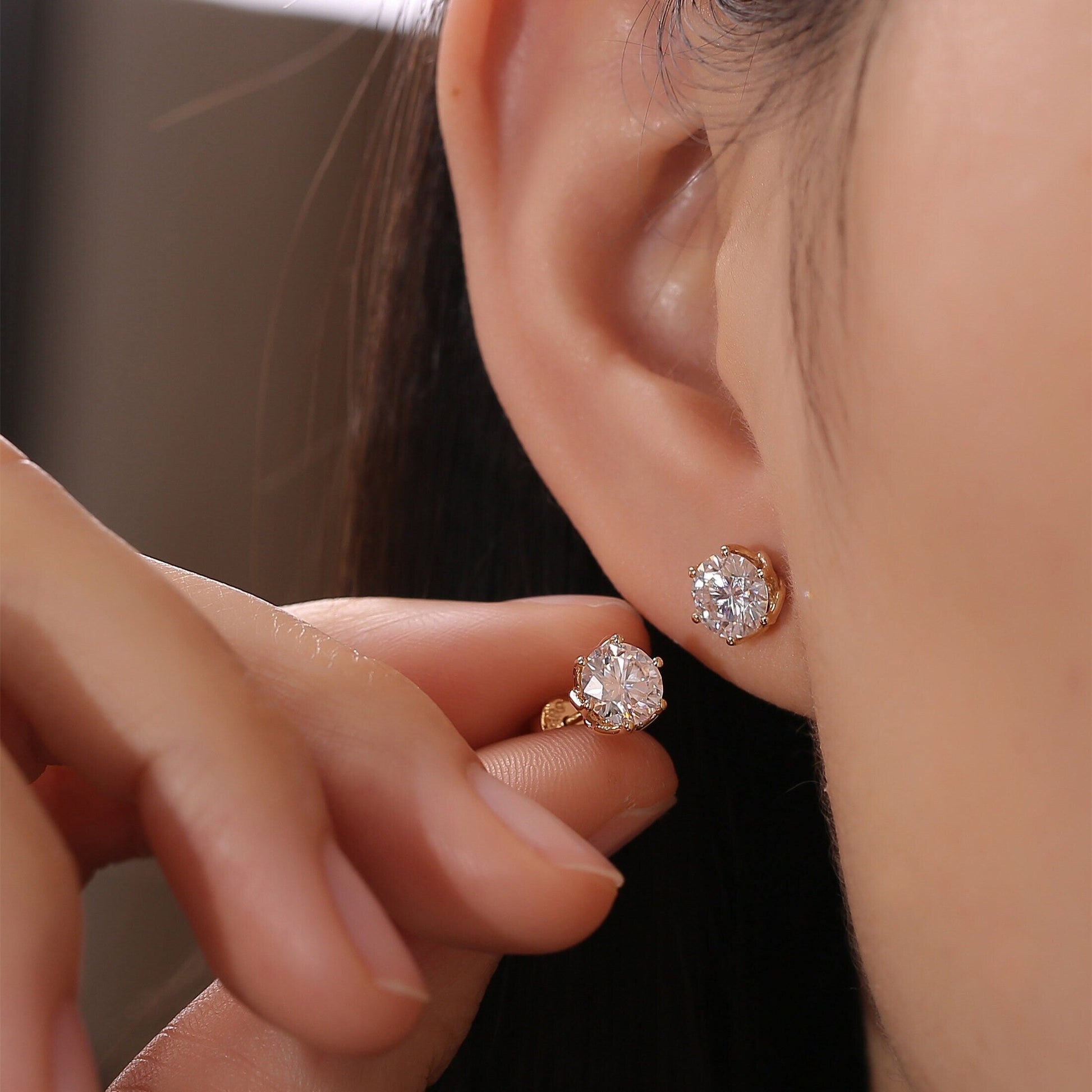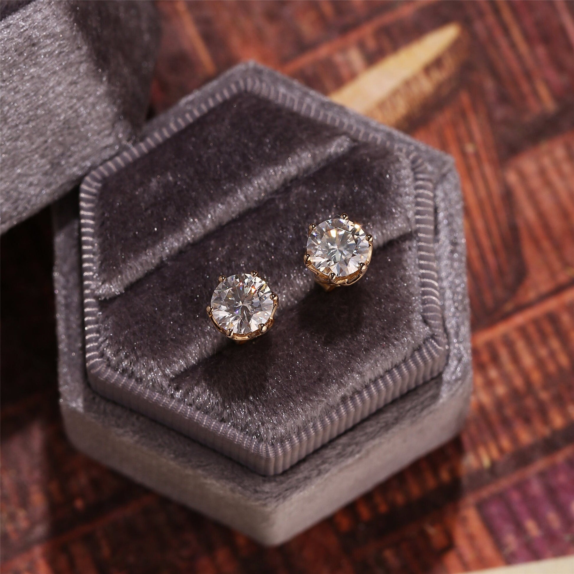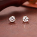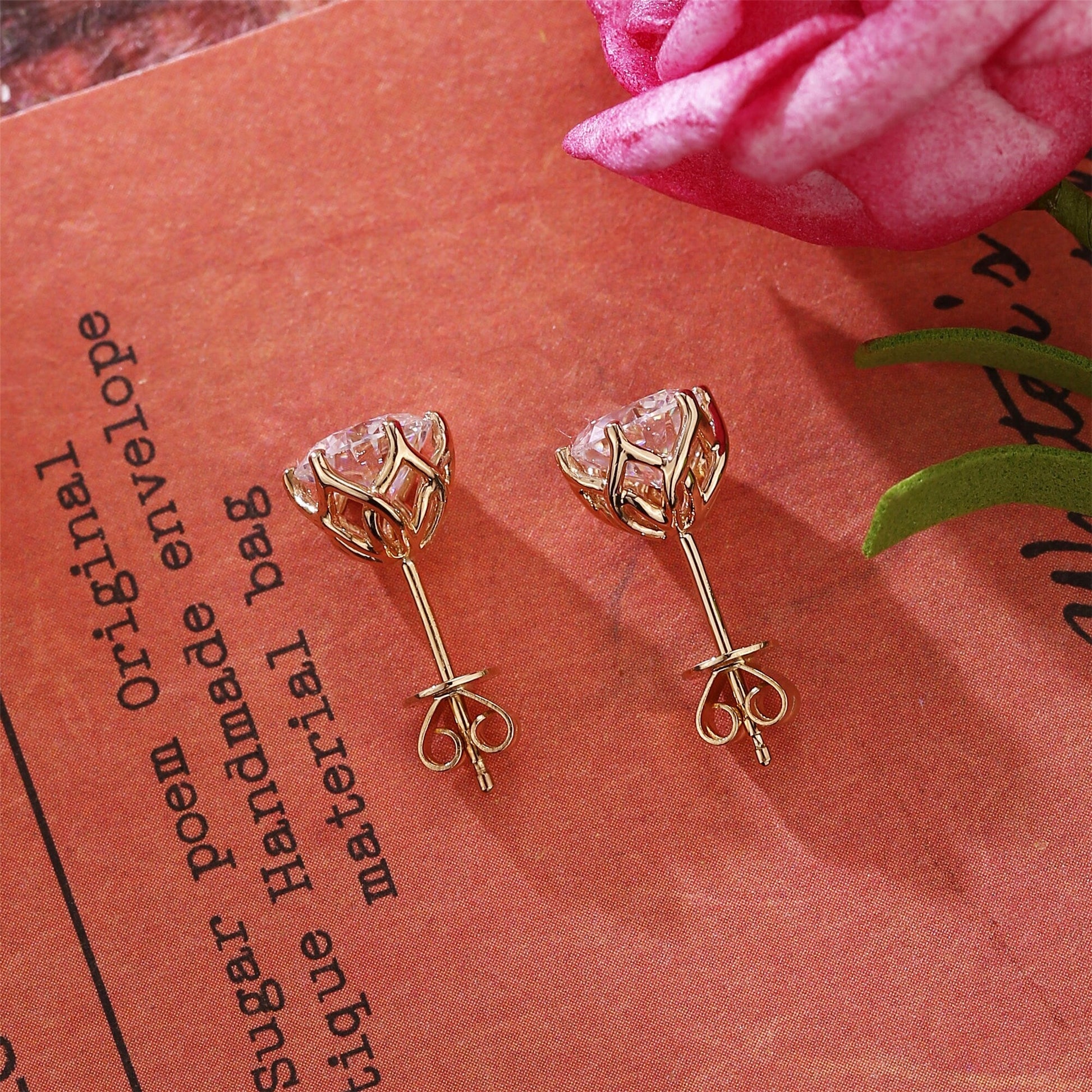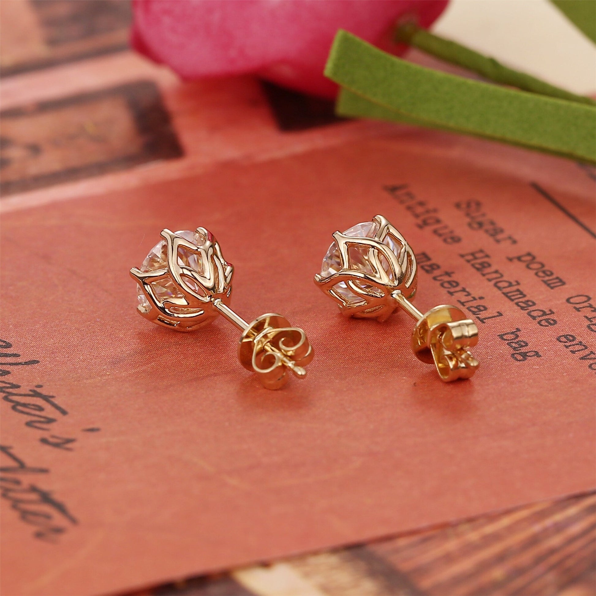 Round Cut Moissanite Earrings Stud, Real Solid Gold Moissanite Stud Flower Setting, 6 Prongs Round Earrings Studs, Birthday Gift for Woman