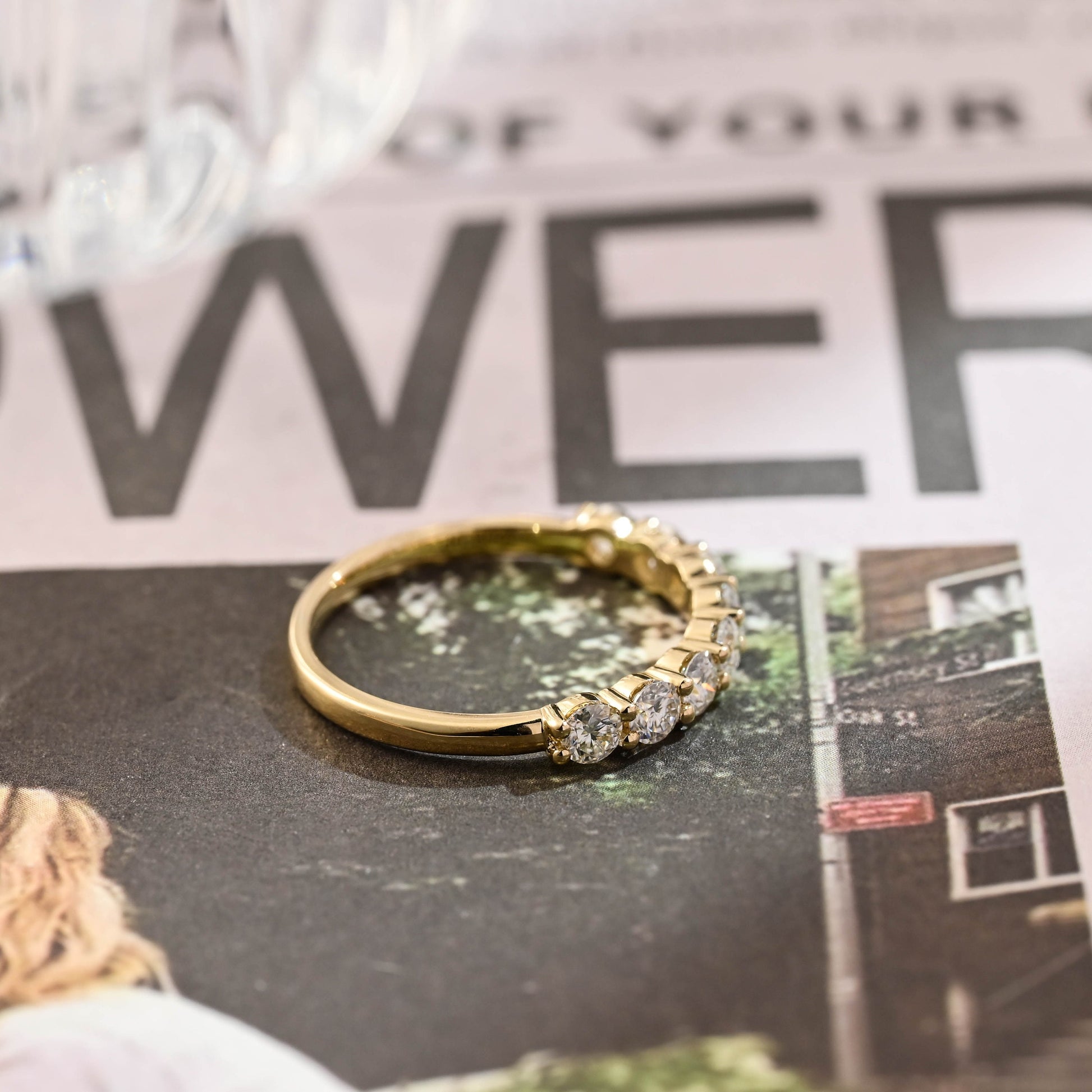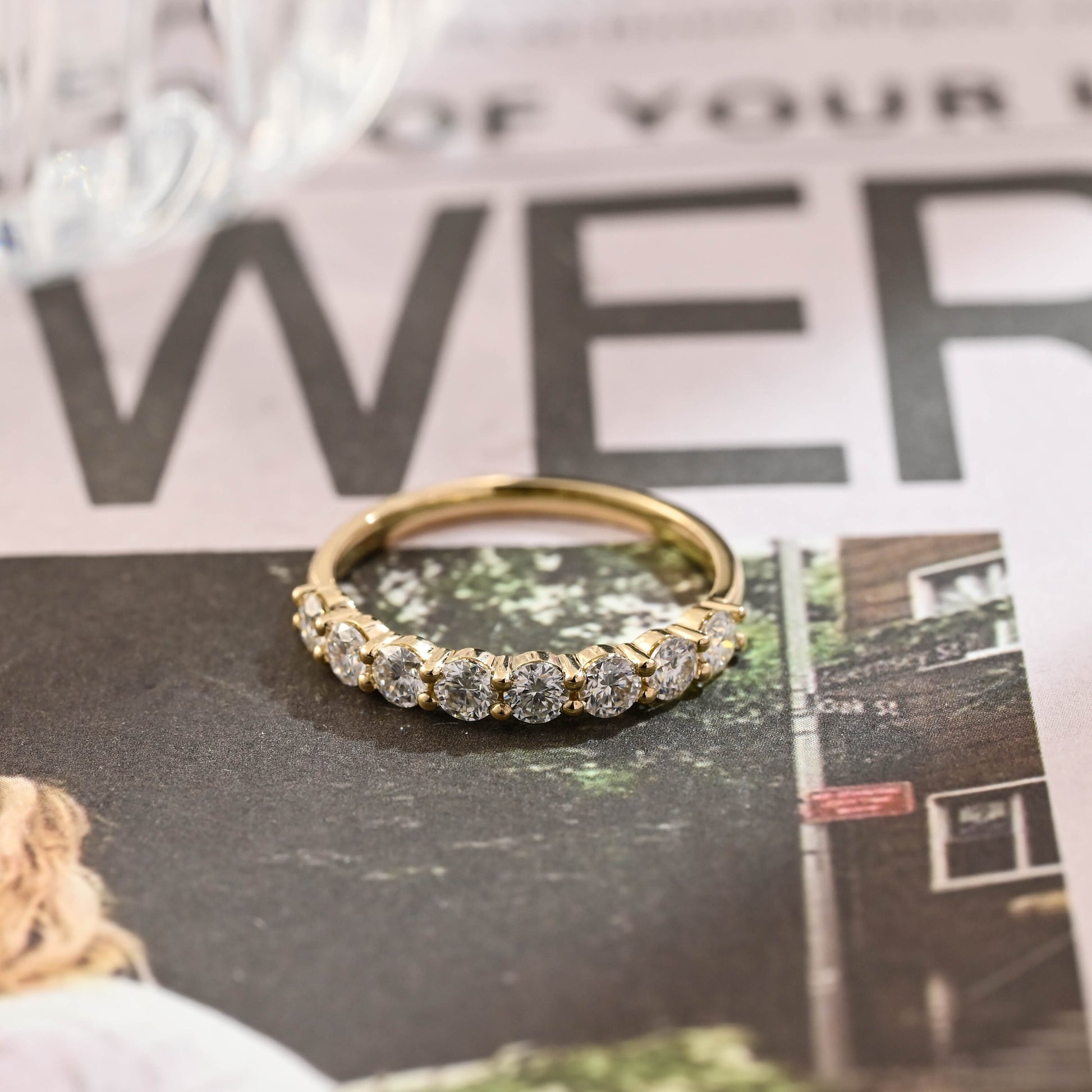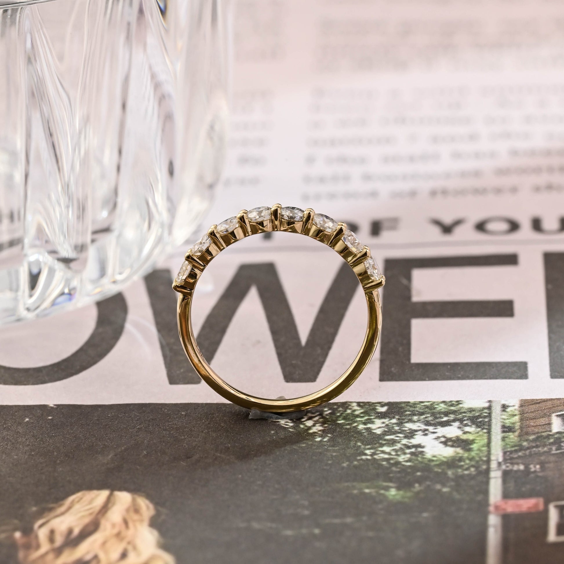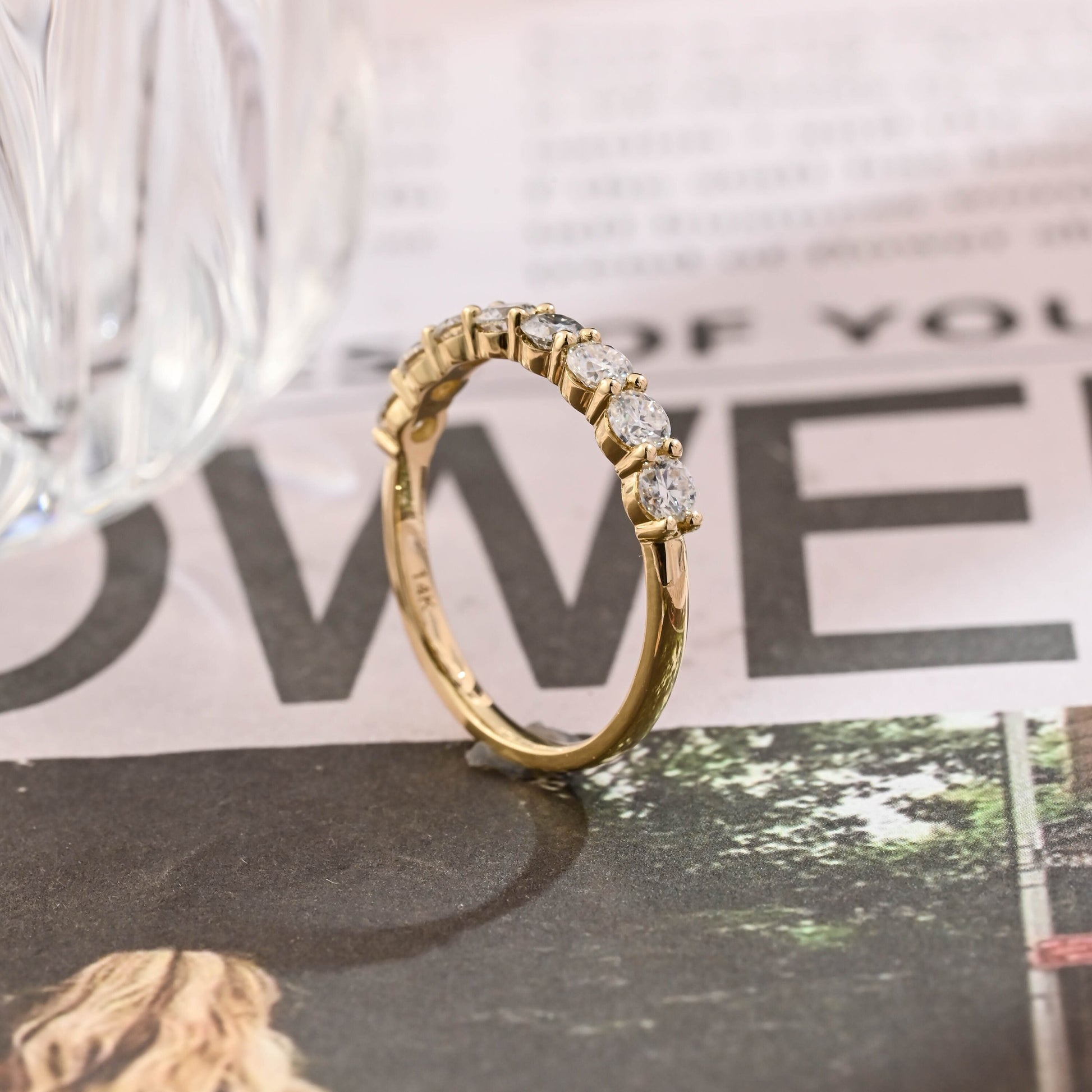Round Cut Moissanite Engagement Wedding Band, Round Half-Eternity Band, 9K/14K/18K Solid Gold Personalized Matching Band, Anniversary Gift