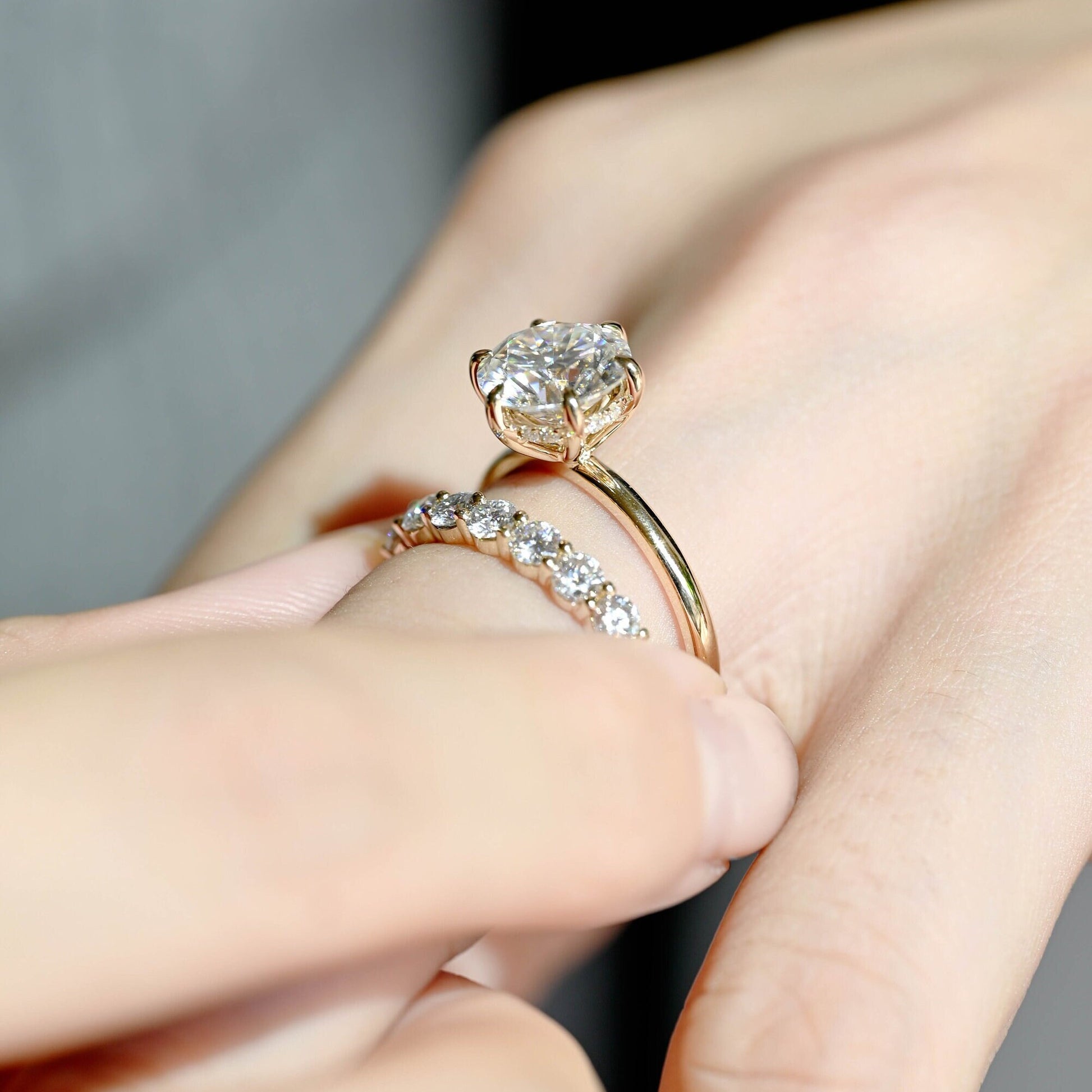 Round Cut Moissanite Engagement Wedding Band Personalized Matching Band