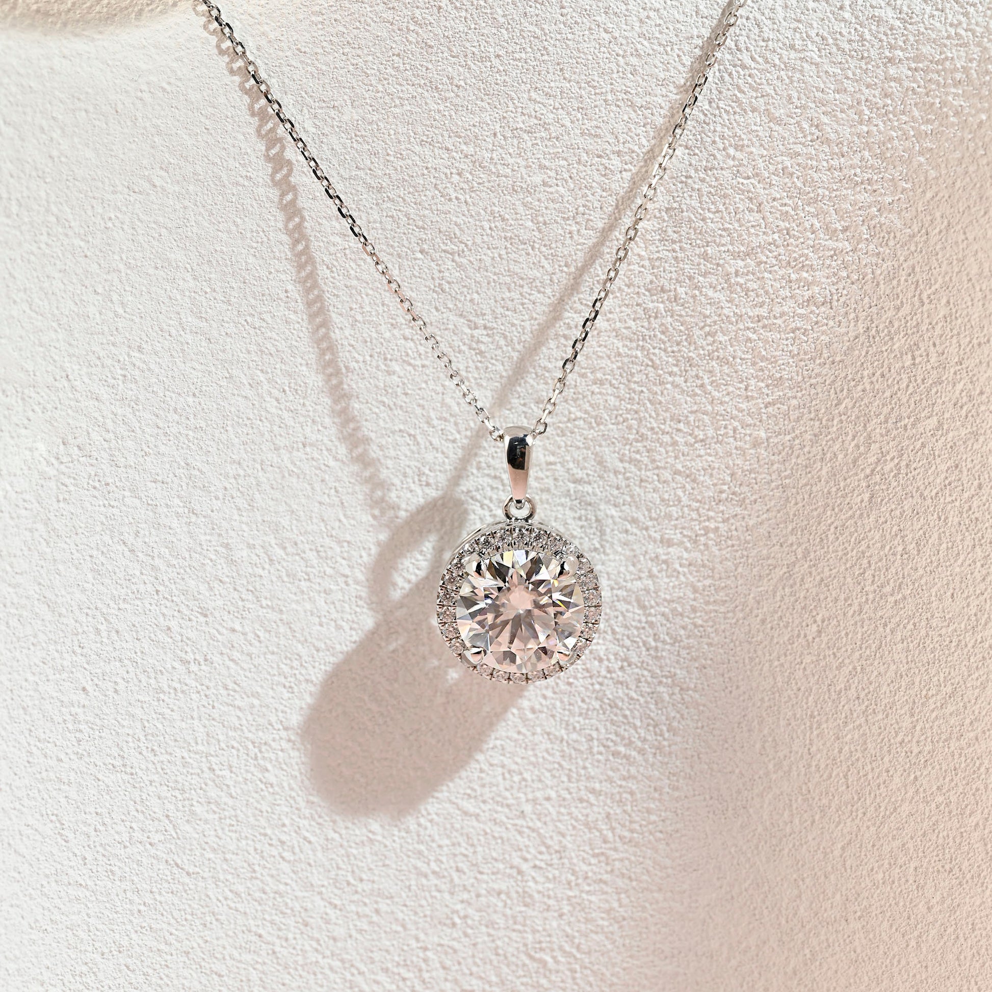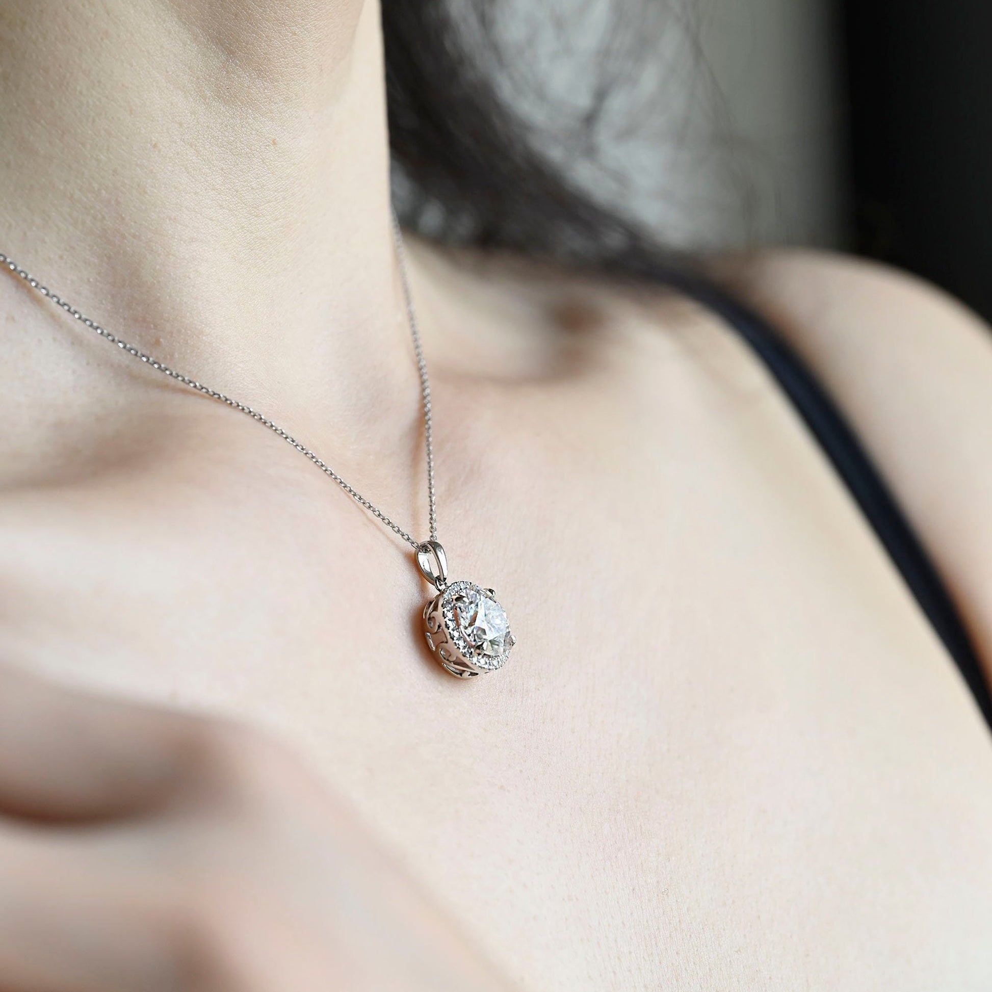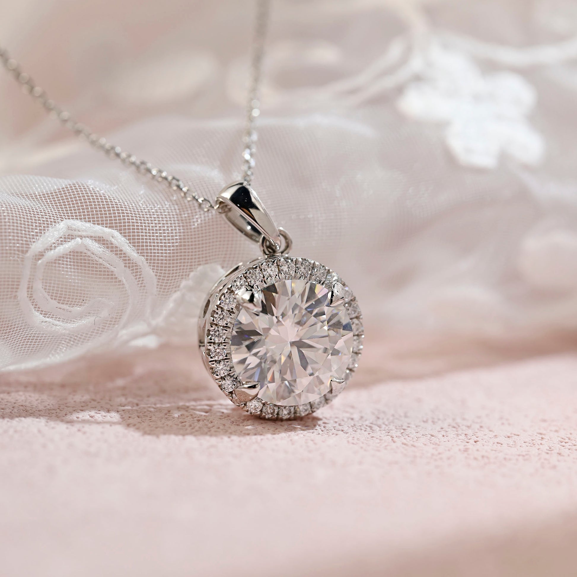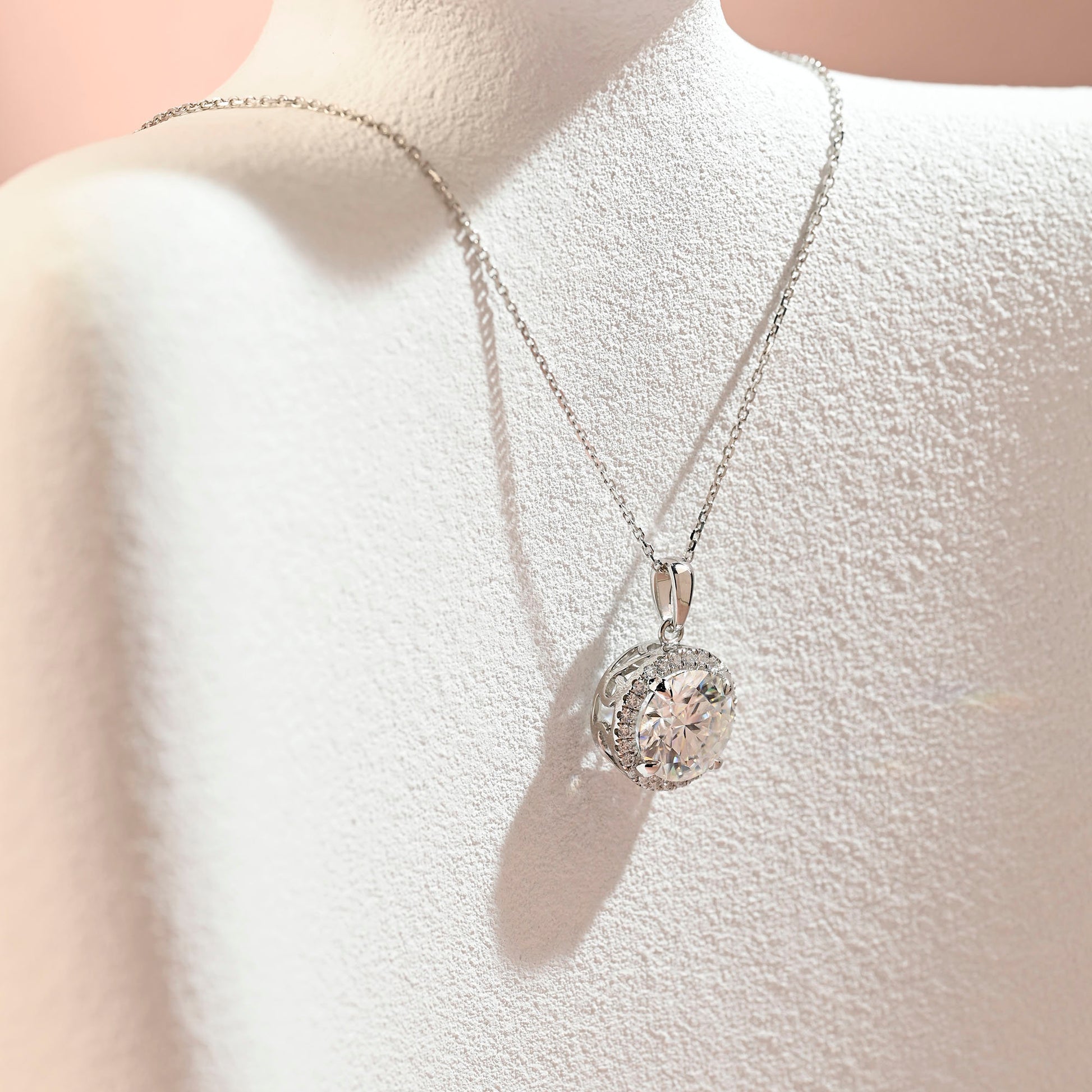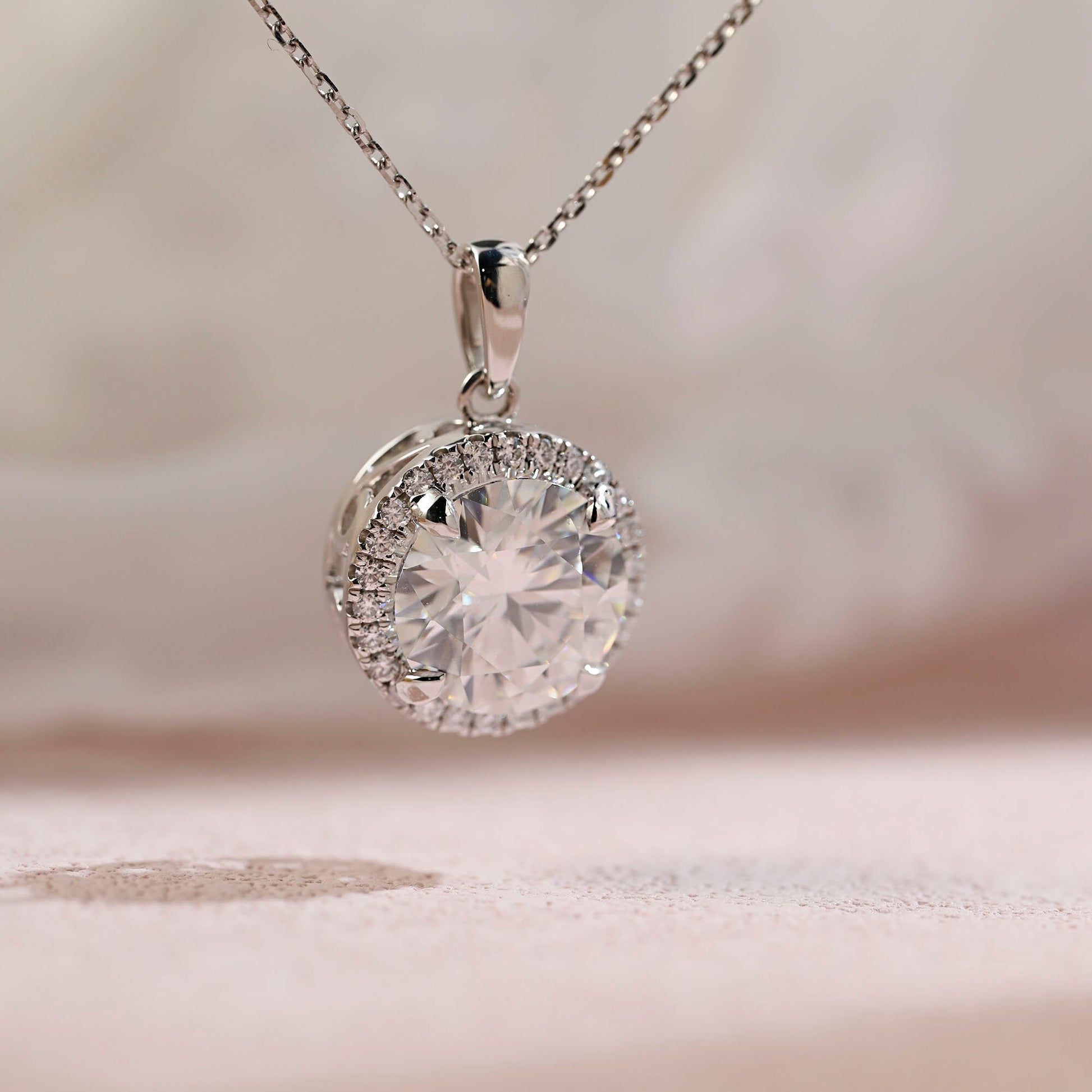 Round Cut Moissanite Pendant Neckace,9K 14K 18K Solid Gold Necklace Single Clasp,Moissanite Pendant Necklace,Anniversary Gift for Women