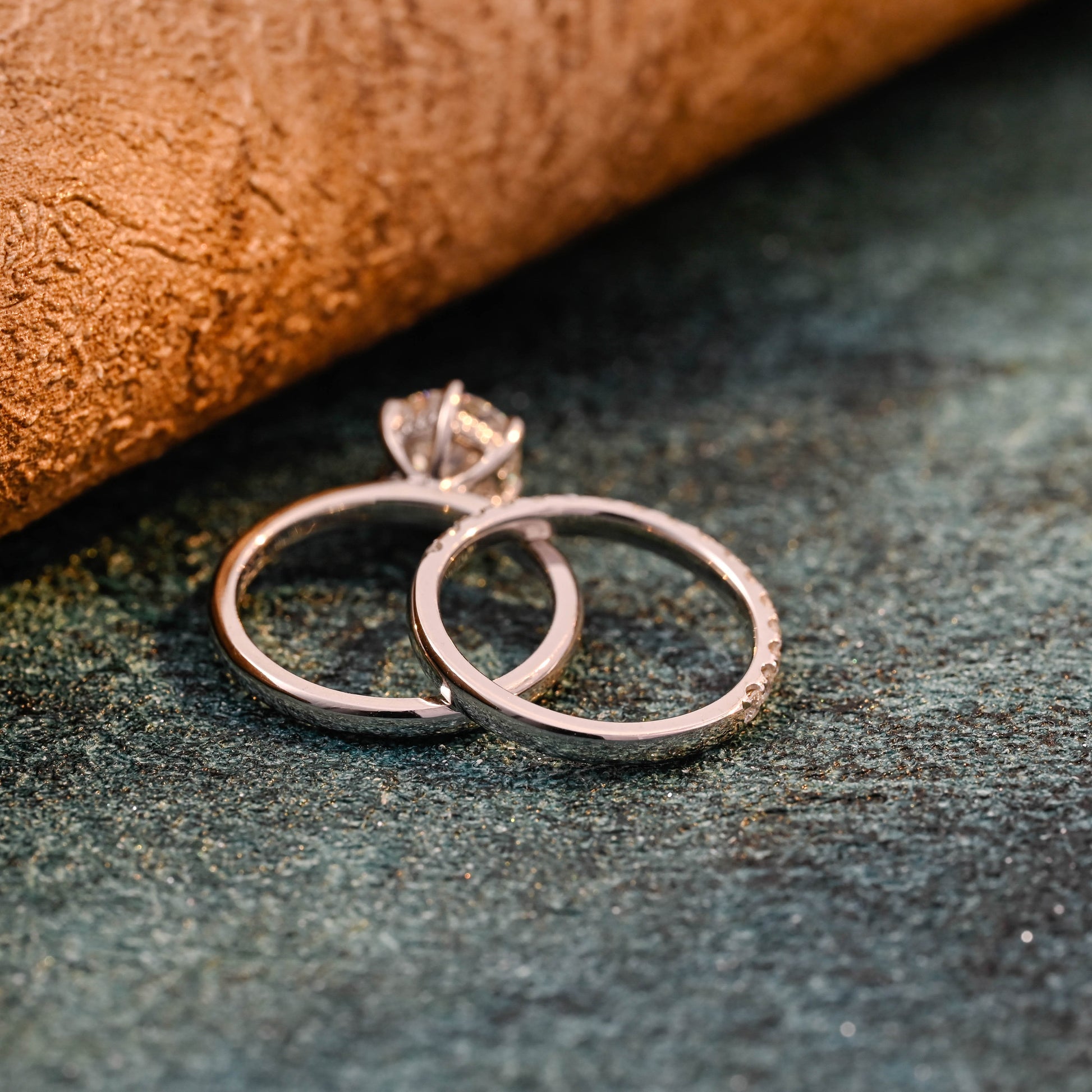 Round Moissanite Engagement Ring Set, Solid Gold Wedding Set, Bridal Ring Set, Birthday Gift Anniversary Gift Valentine's Day Gift for Woman