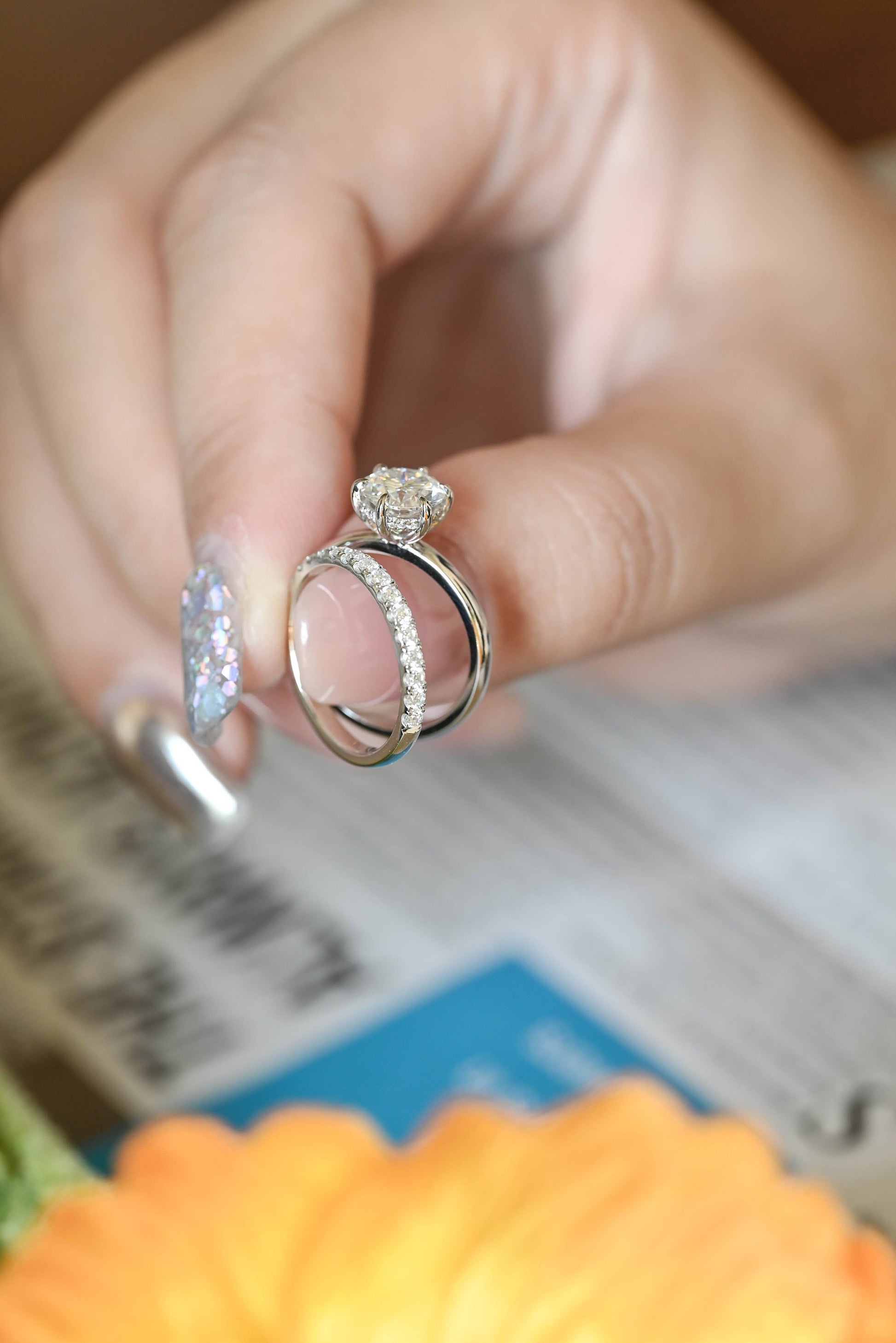 Our jewelry is crafted with simulant diamonds, moissanite, natural diamonds, lab-grown diamonds, and fine metals like 925 silver (with gold plating) and solid 10K, 14K, and 18K gold in white, yellow, and rose gold.