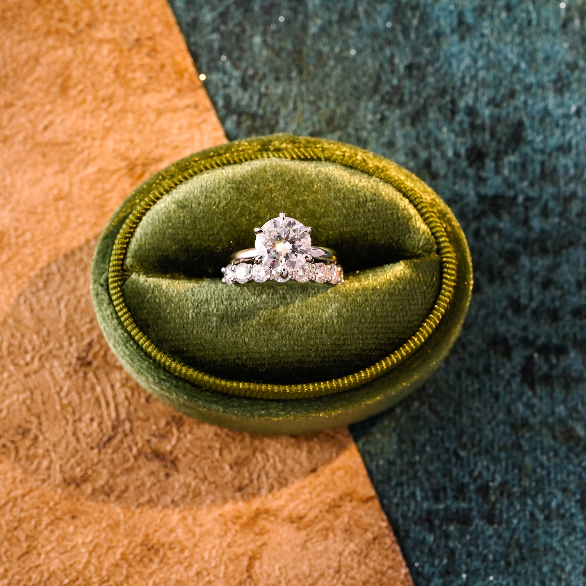 Our jewelry is crafted with simulant diamonds, moissanite, natural diamonds, lab-grown diamonds, and fine metals like 925 silver (with gold plating) and solid 10K, 14K, and 18K gold in white, yellow, and rose gold.