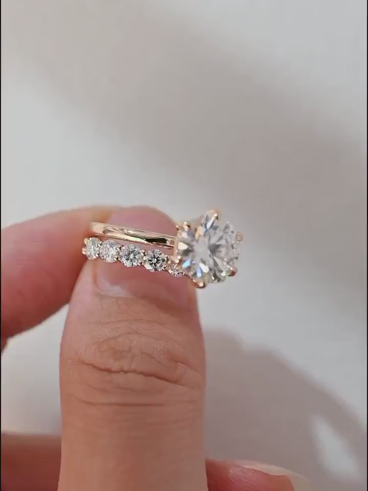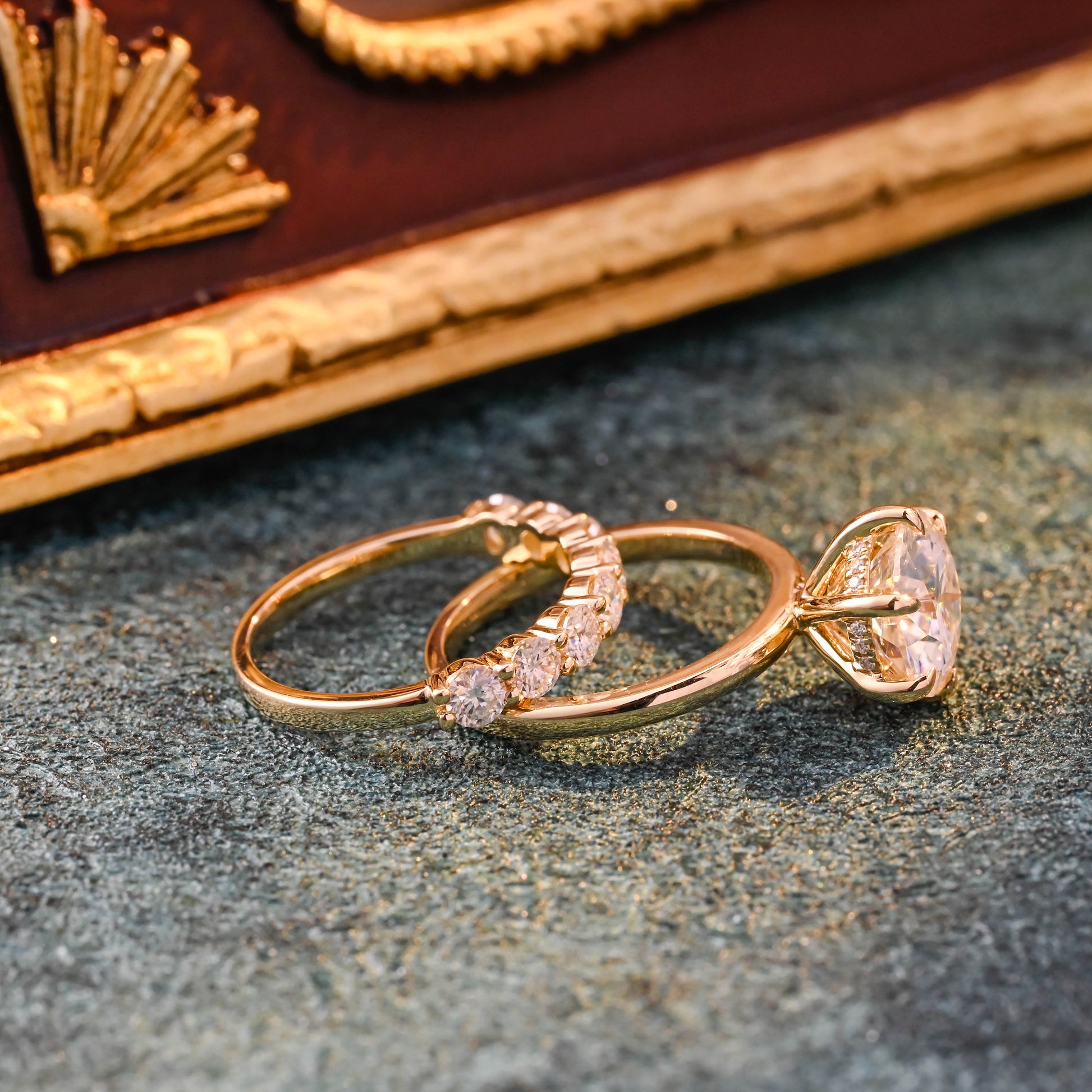 Round Moissanite Engagement Ring Set, Solid Gold Wedding Set, Bridal Ring Set, Birthday Gift Anniversary Gift Valentine's Day Gift for Woman