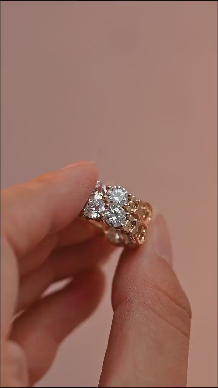 Our jewelry is crafted with simulant diamonds, moissanite, natural diamonds, lab-grown diamonds, and fine metals like 925 silver (with gold plating) and solid 10K, 14K, and 18K gold in white, yellow, and rose gold.