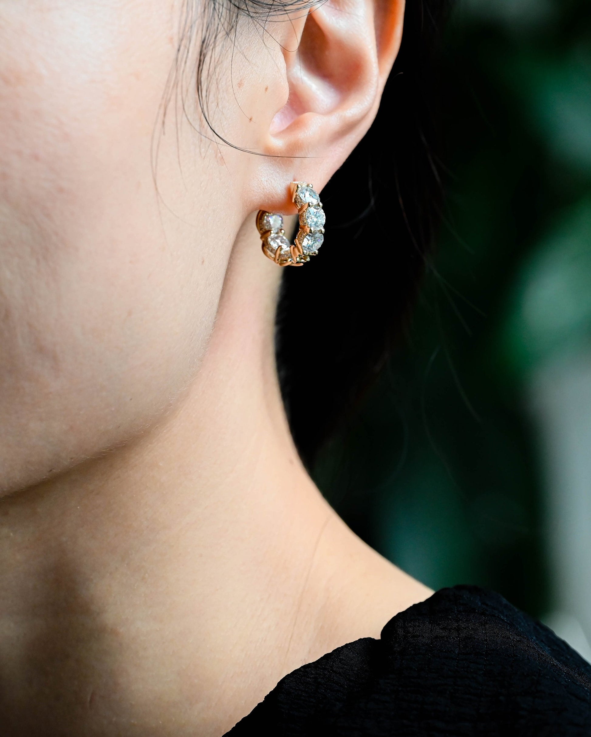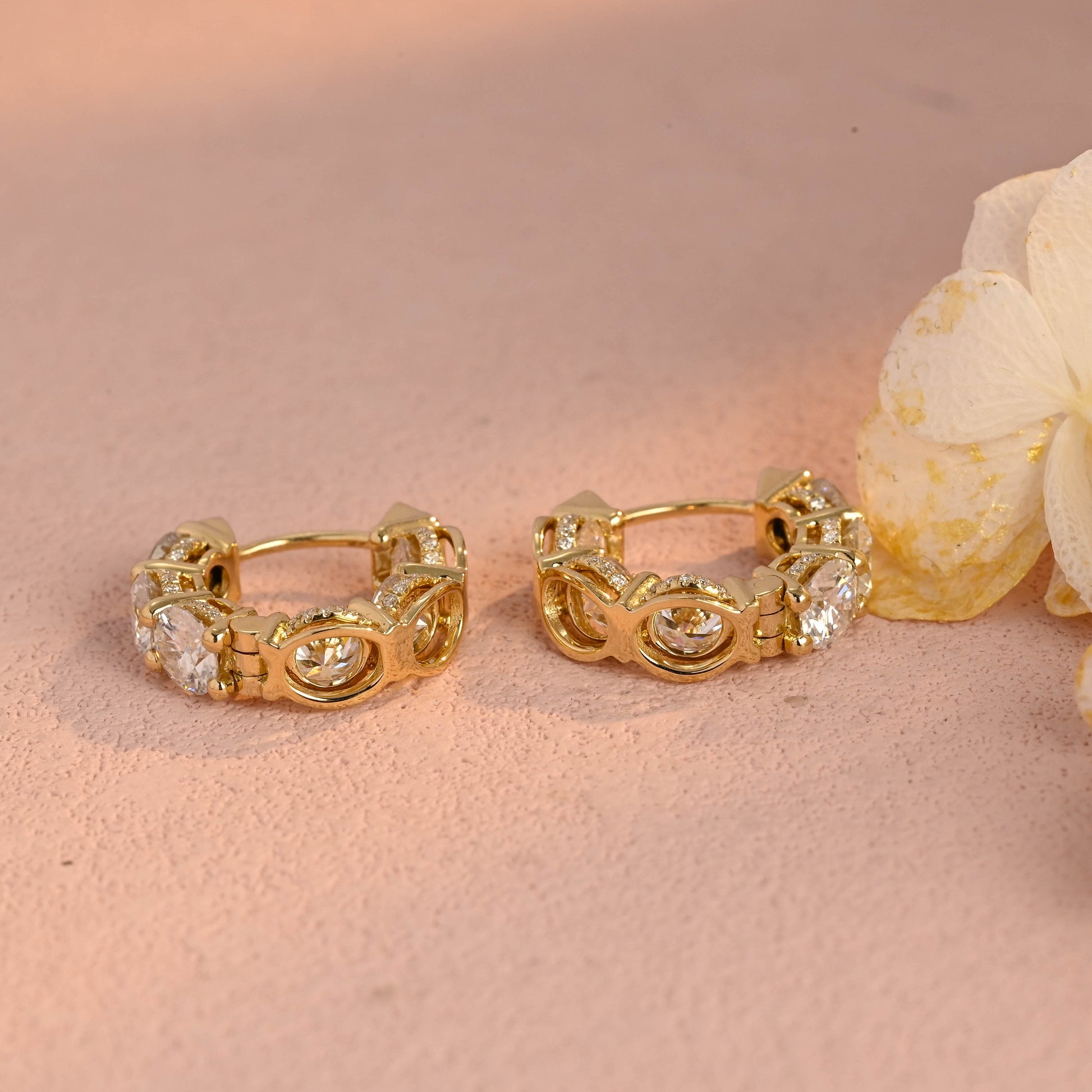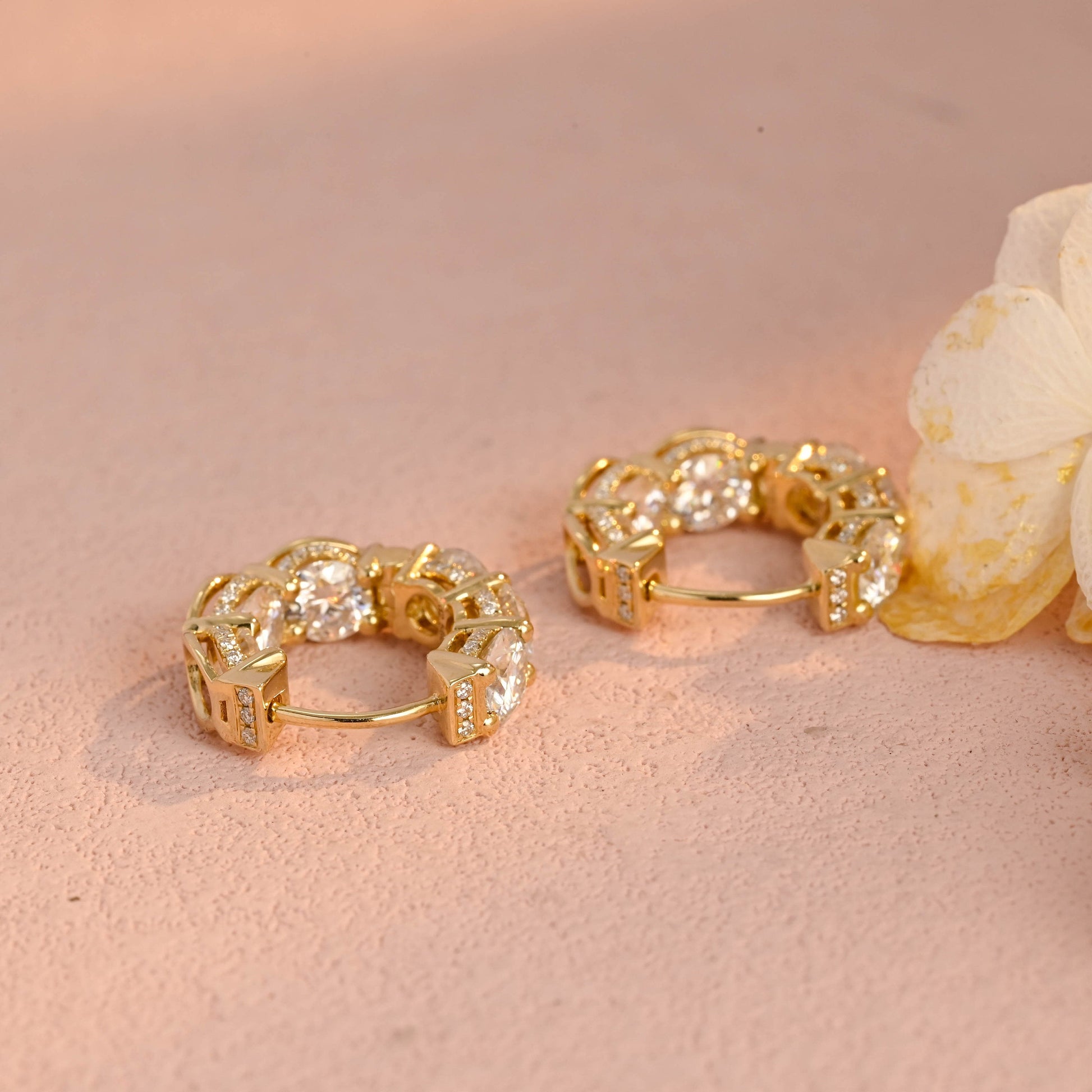 Round Moissanite Huggie Earrings,Luxurious 4-5mm Round Moissanite Earring Studs,9K 14K 18 Yellow Gold White Gold Moissanite Wedding Earrings