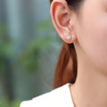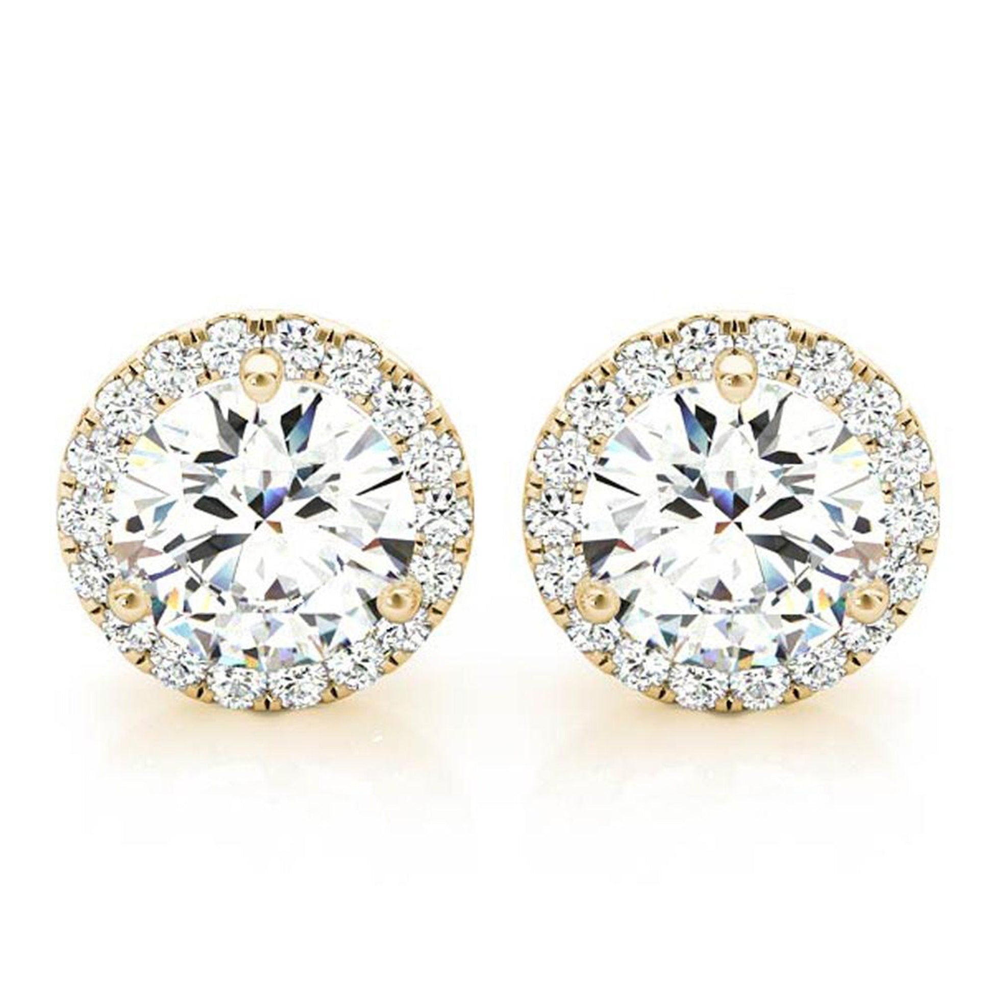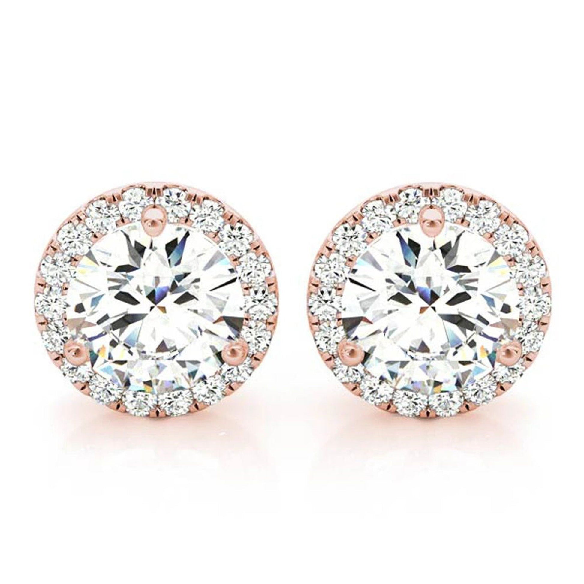 Round Moissanite Stud Earrings/14K Rose Gold Round Shaped Earrings/Round Cluster Moissanite Earring/Wedding Anniversary Stud for Women
