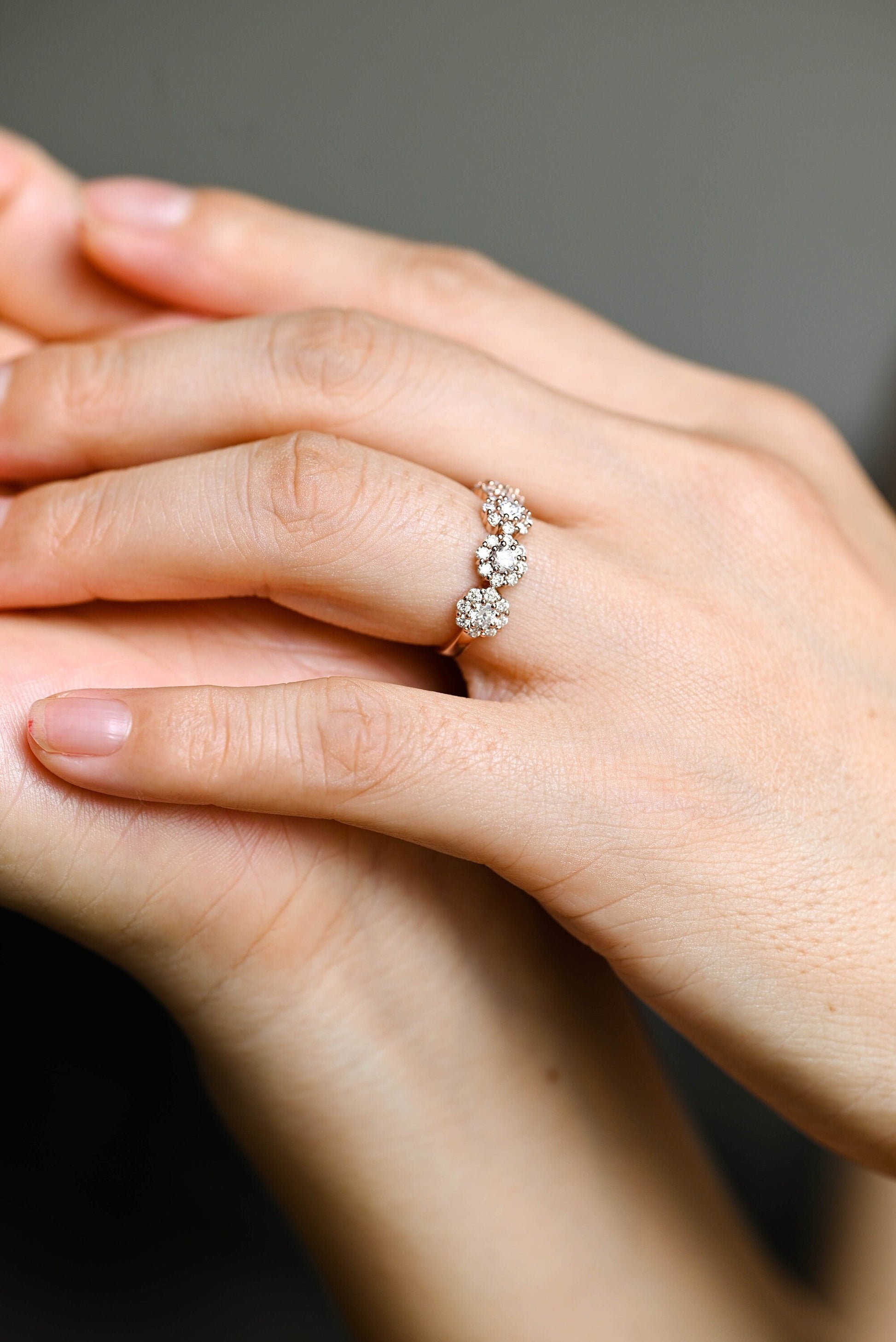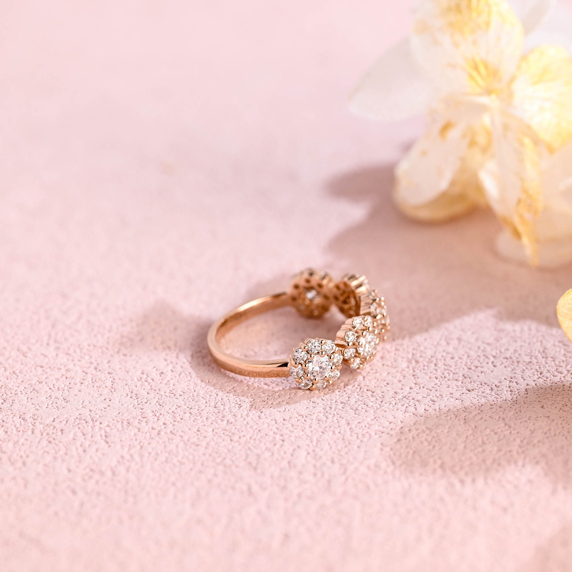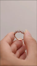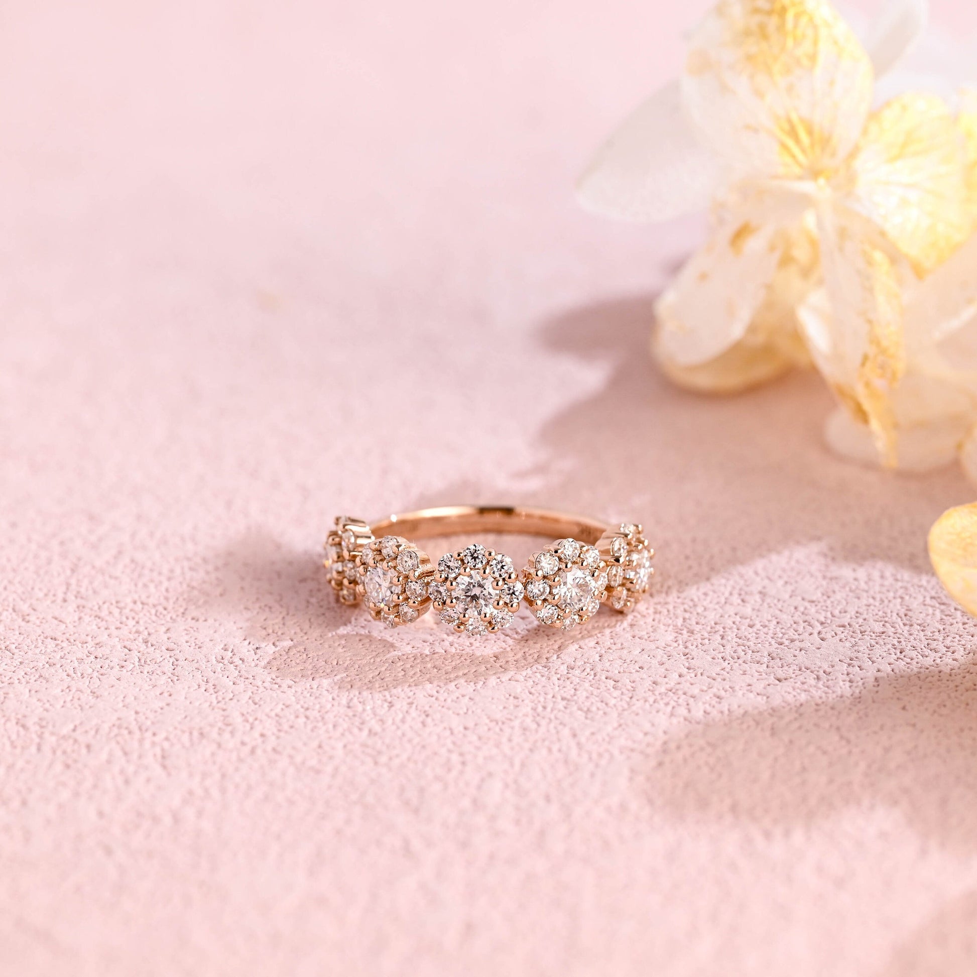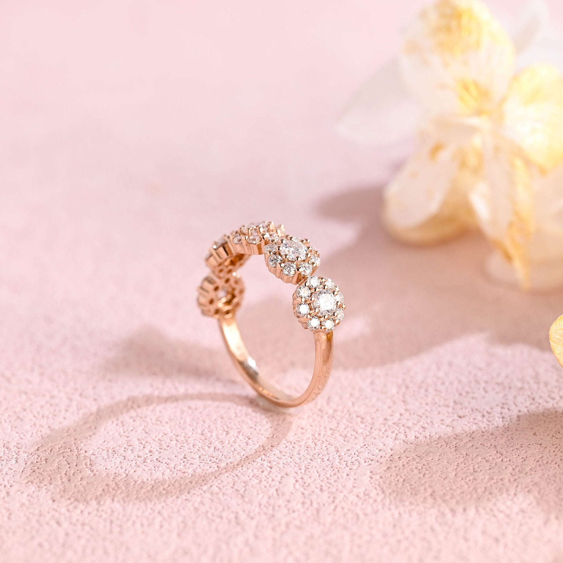 Round Moissanite Wedding Band, Half-Eternity Round Moissanite Wedding Ring, 14K Rose Gold Vintage Cluster Matching Band, Gift for Women