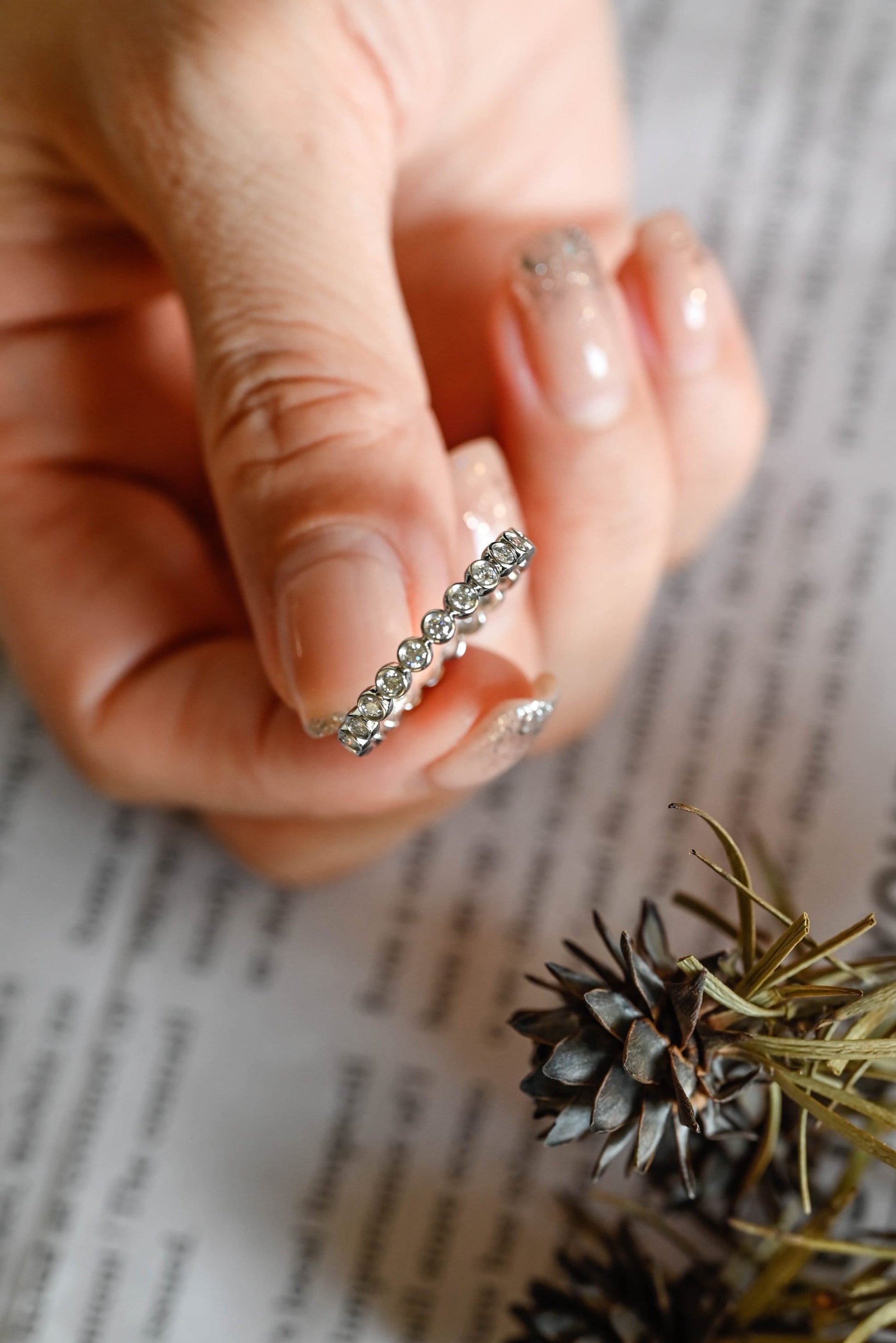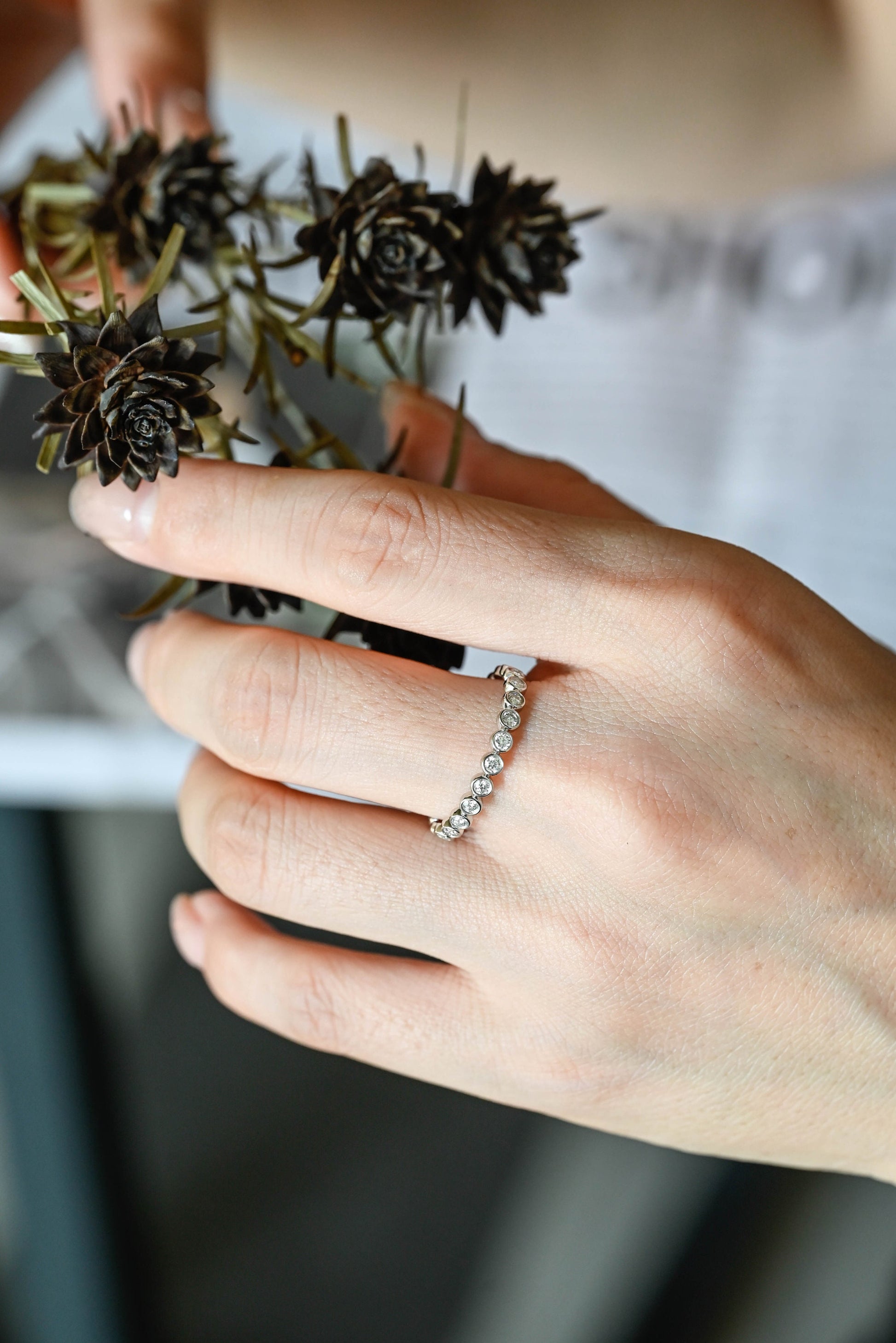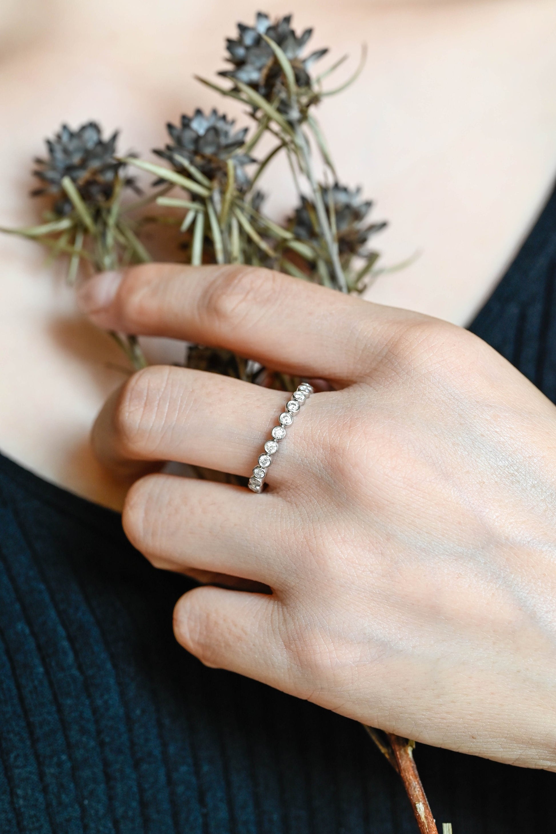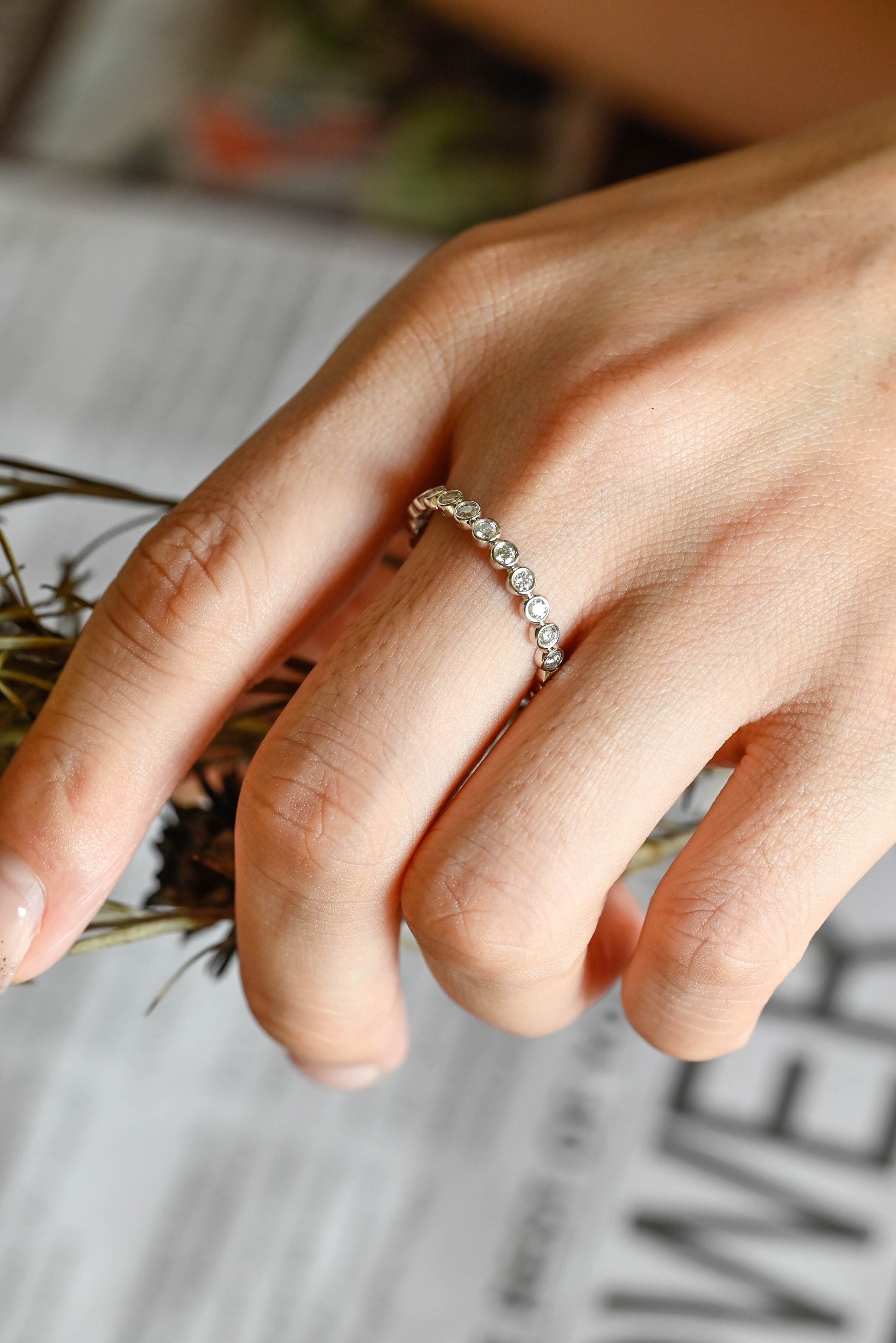 Round Moissanite Wedding Band, Solid Gold Ring, Full Eternity Wedding Band, Birthday Gift Anniversary Gift Valentine's Day Gift for Woman
