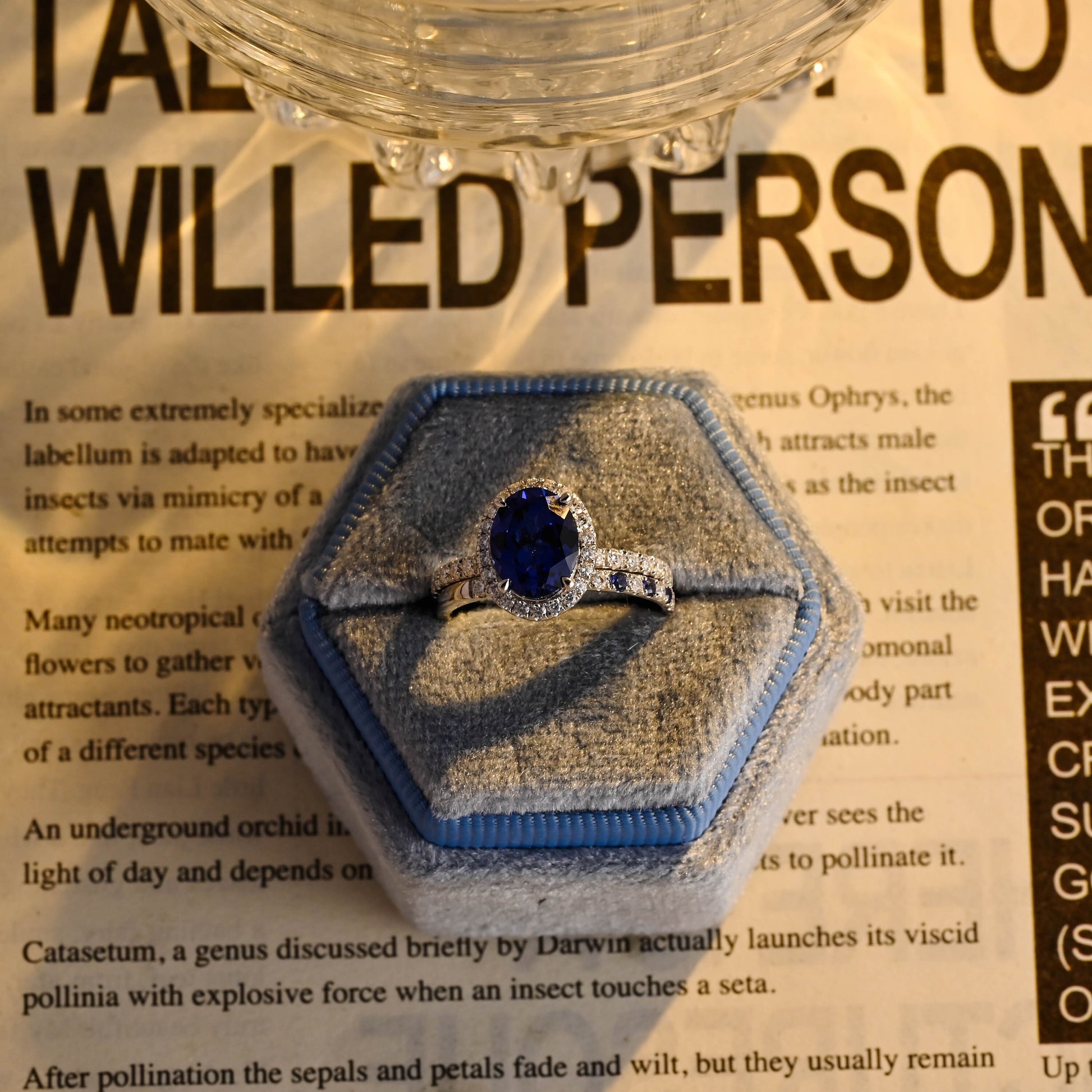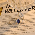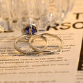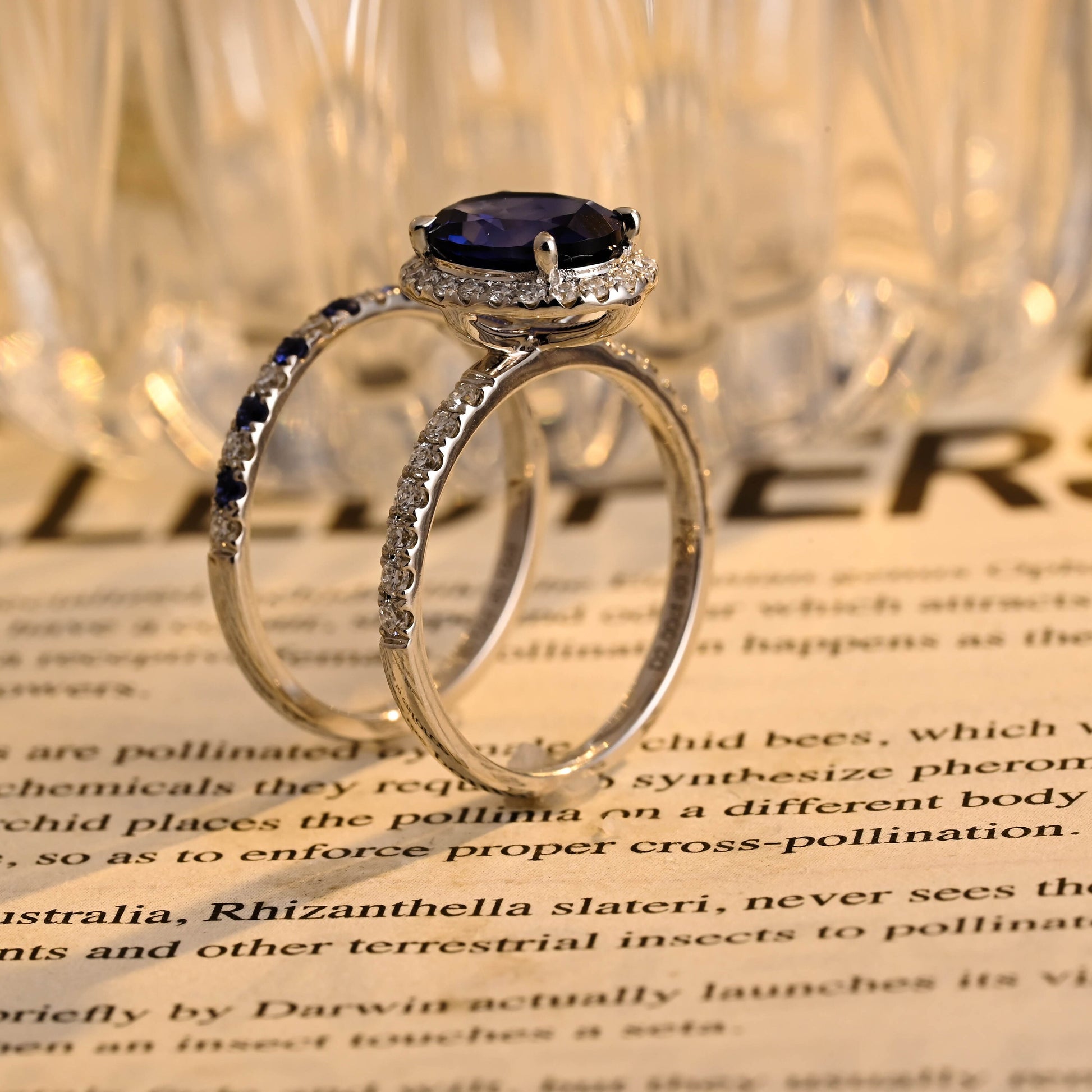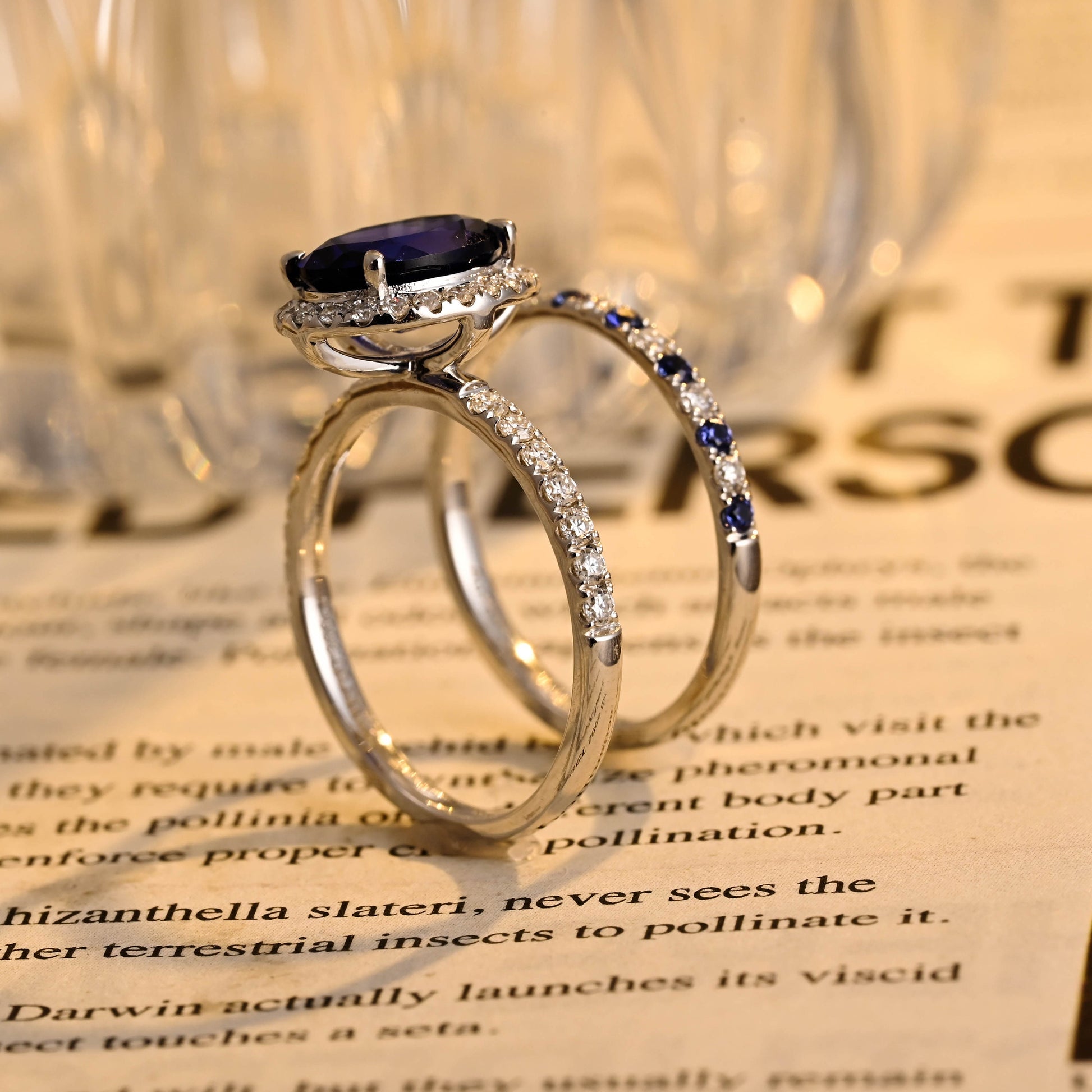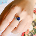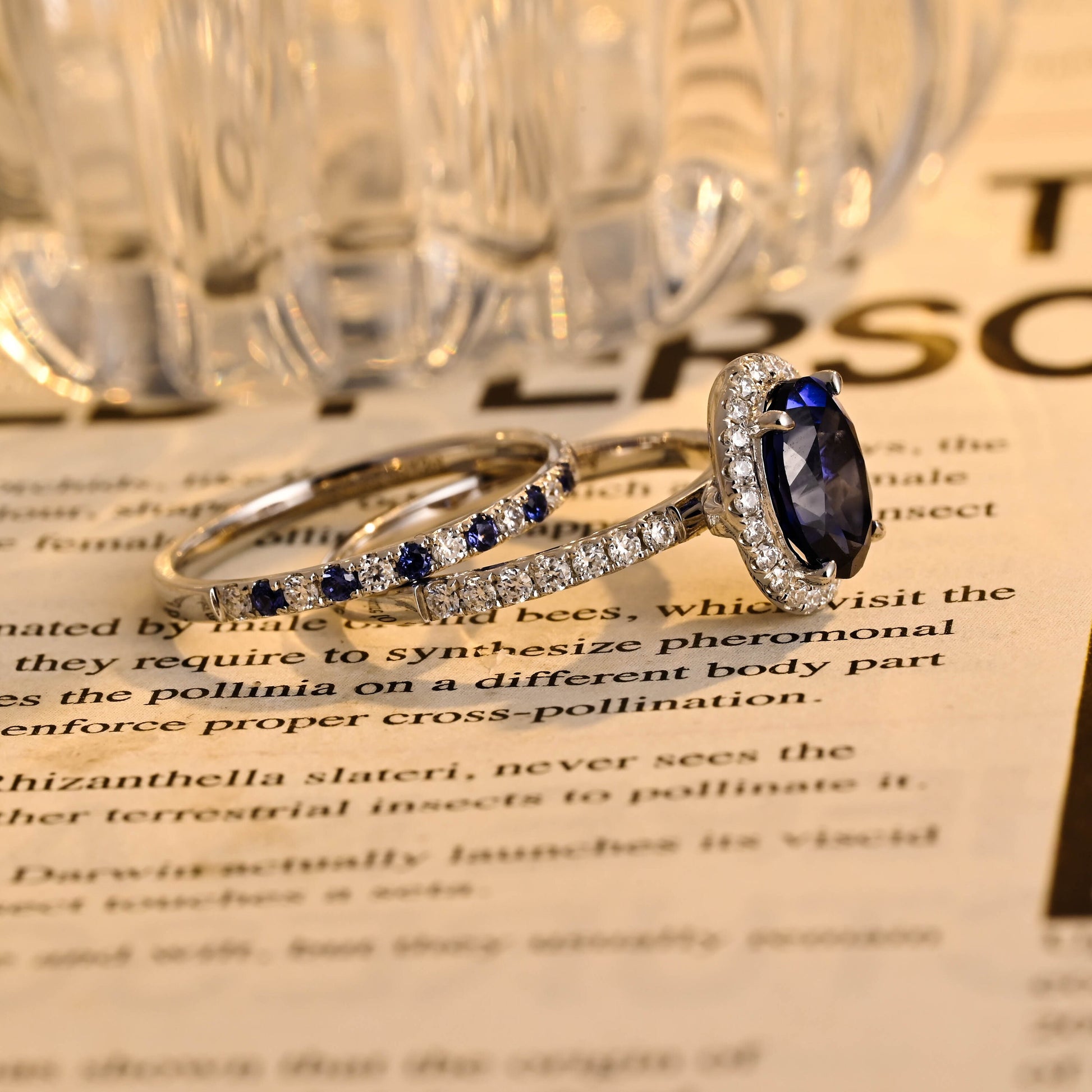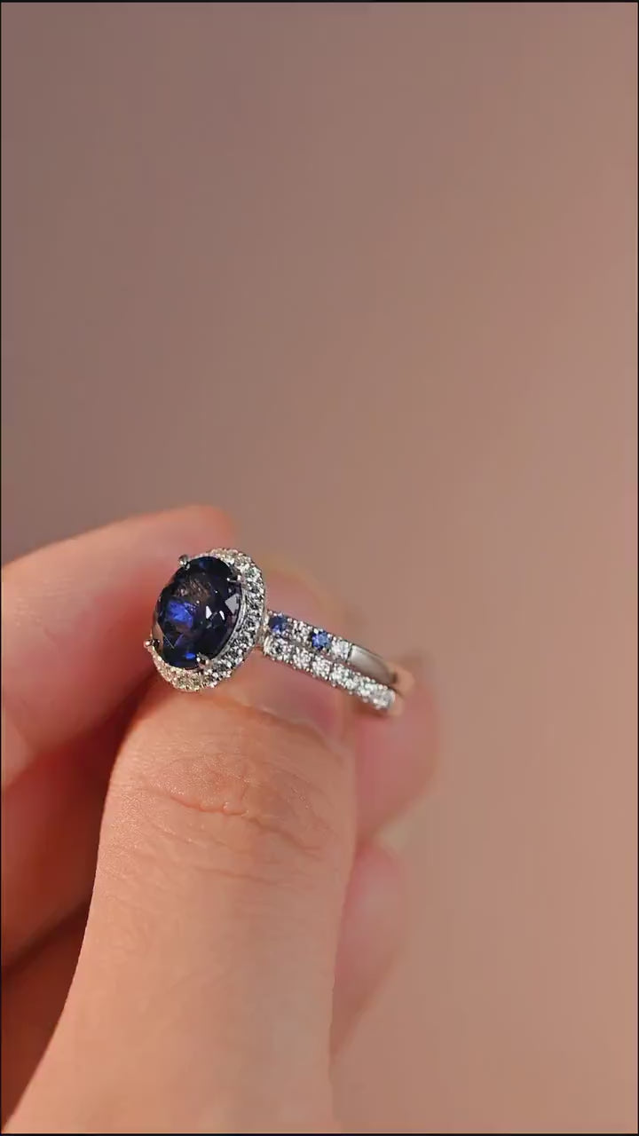 Sapphire Oval Cut Paved Halo Moissanite Engagement Bridal Ring Set