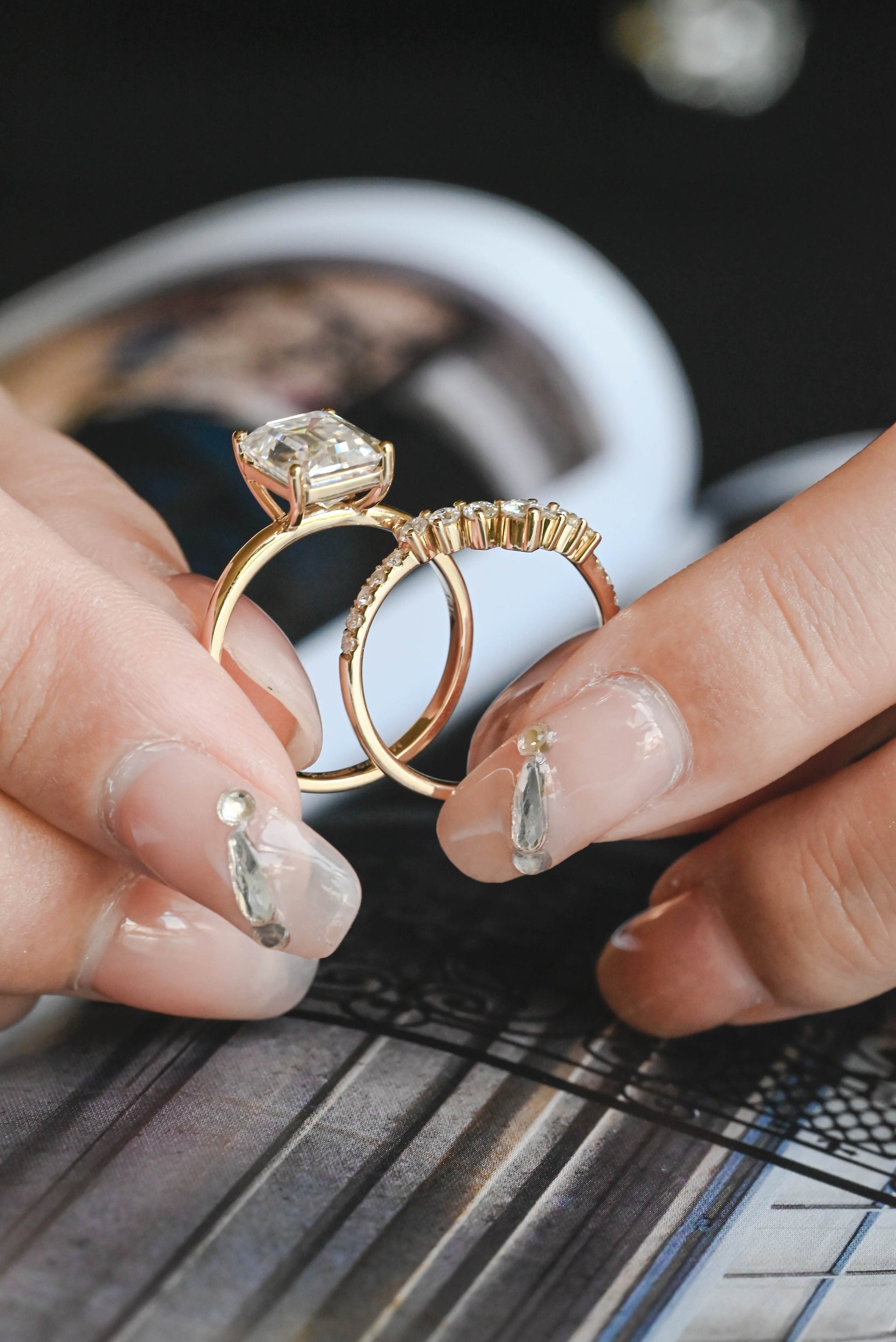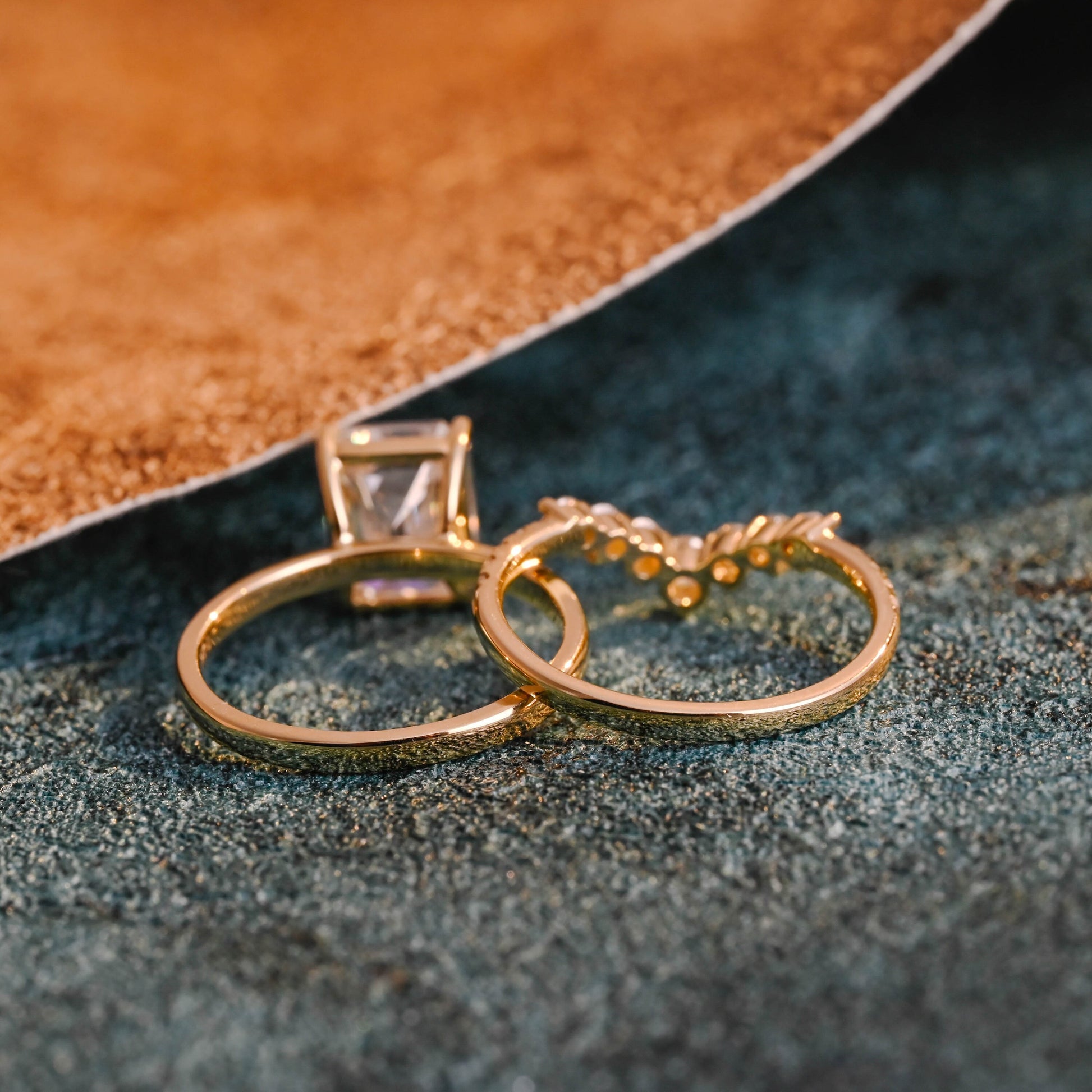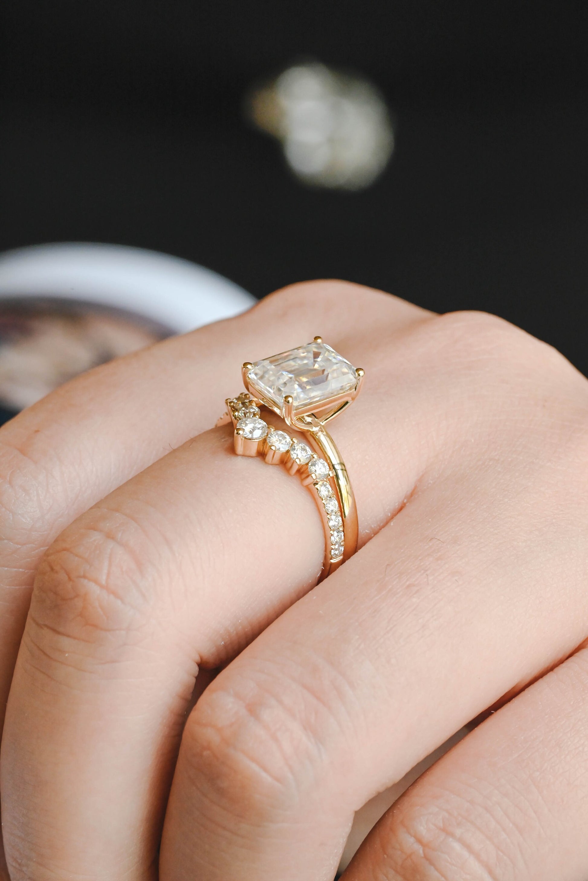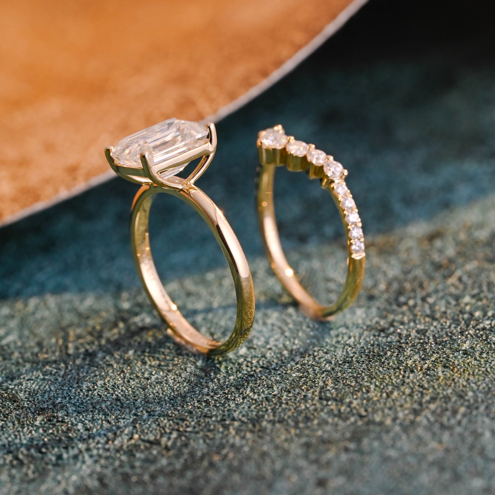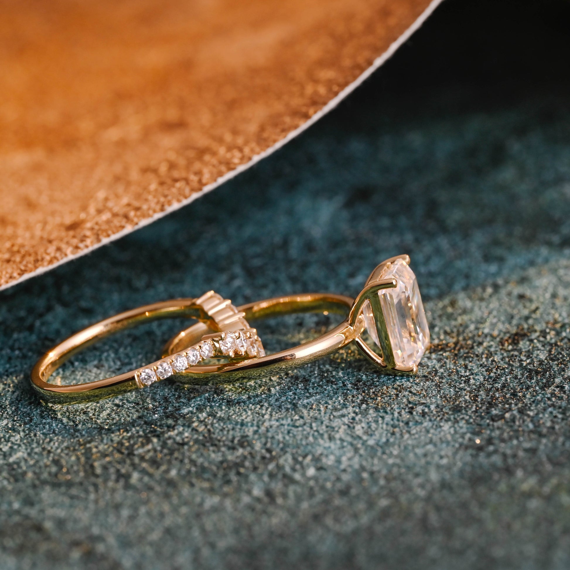 Solid Gold Emerald Cut Moissanite Engagement Ring and Wedding Ring Set, Classic Bridal Ring Set, Anniversary / Birthday Gift for Women, Wife