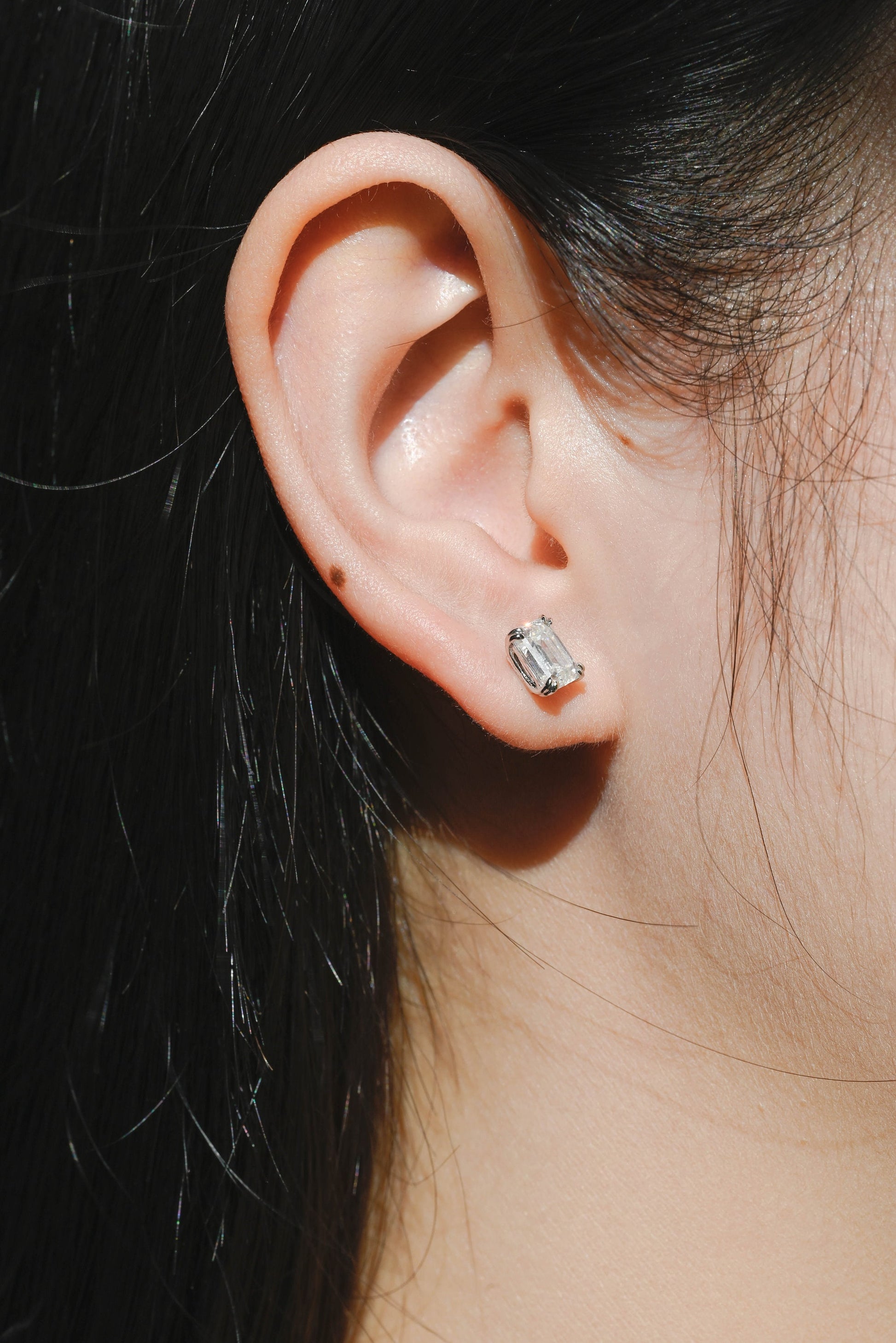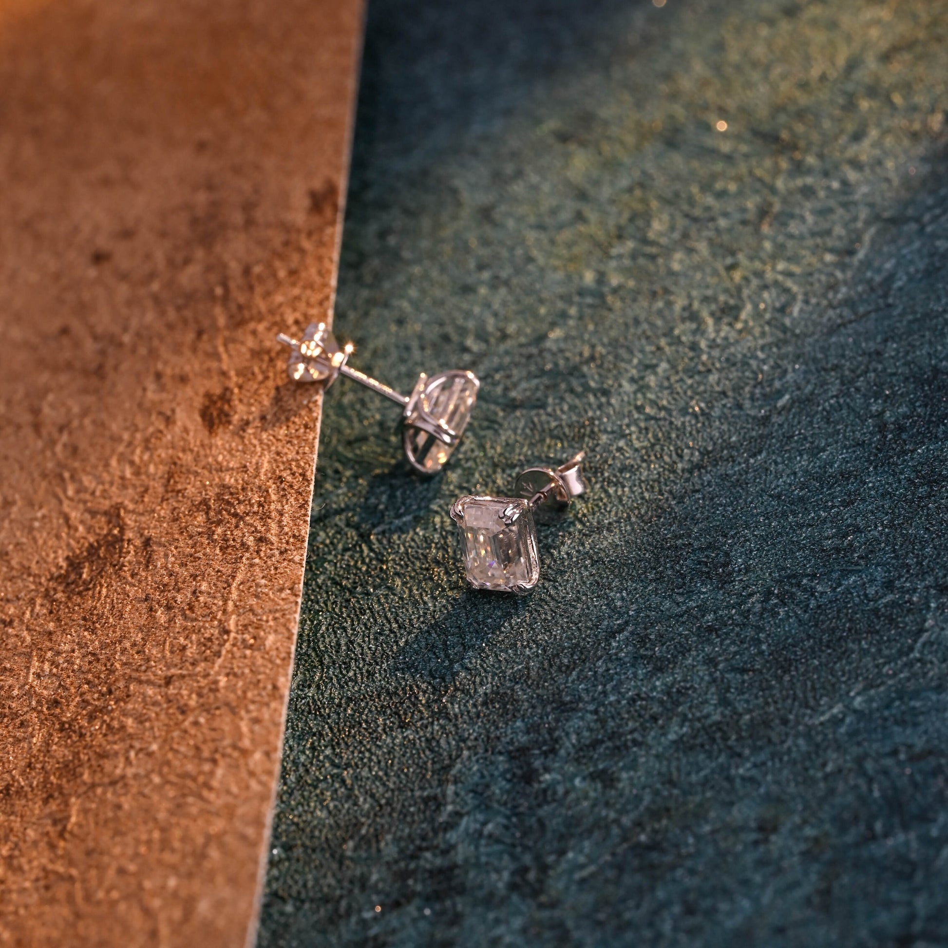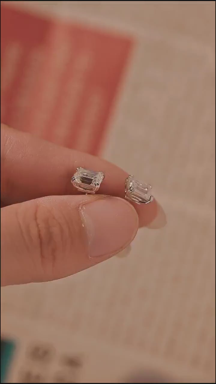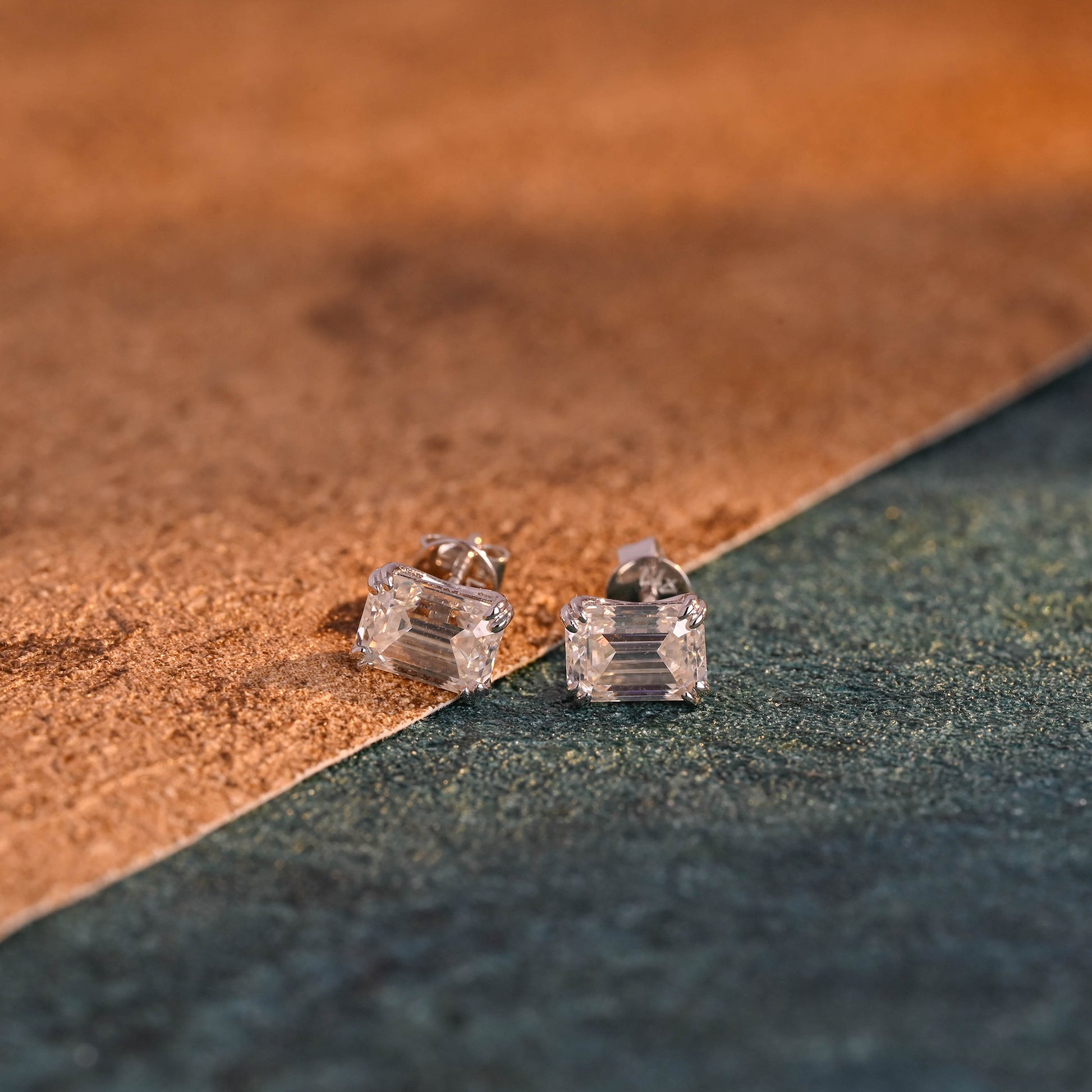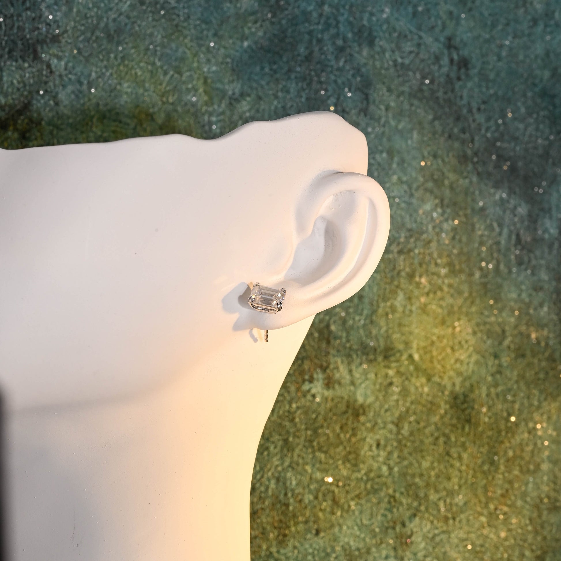 Solid Gold Emerald Cut Moissanite Studs Earrings, Art Deco Earrings, Valentine's Day/ Anniversary/ Birthday Gift for Woman, Wife, Girlfriend