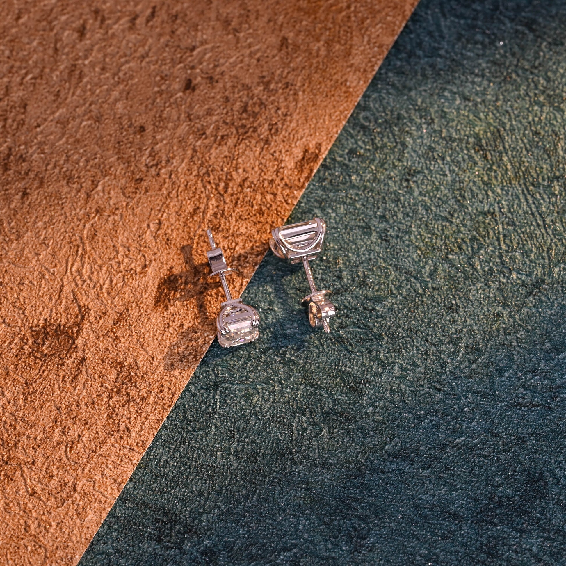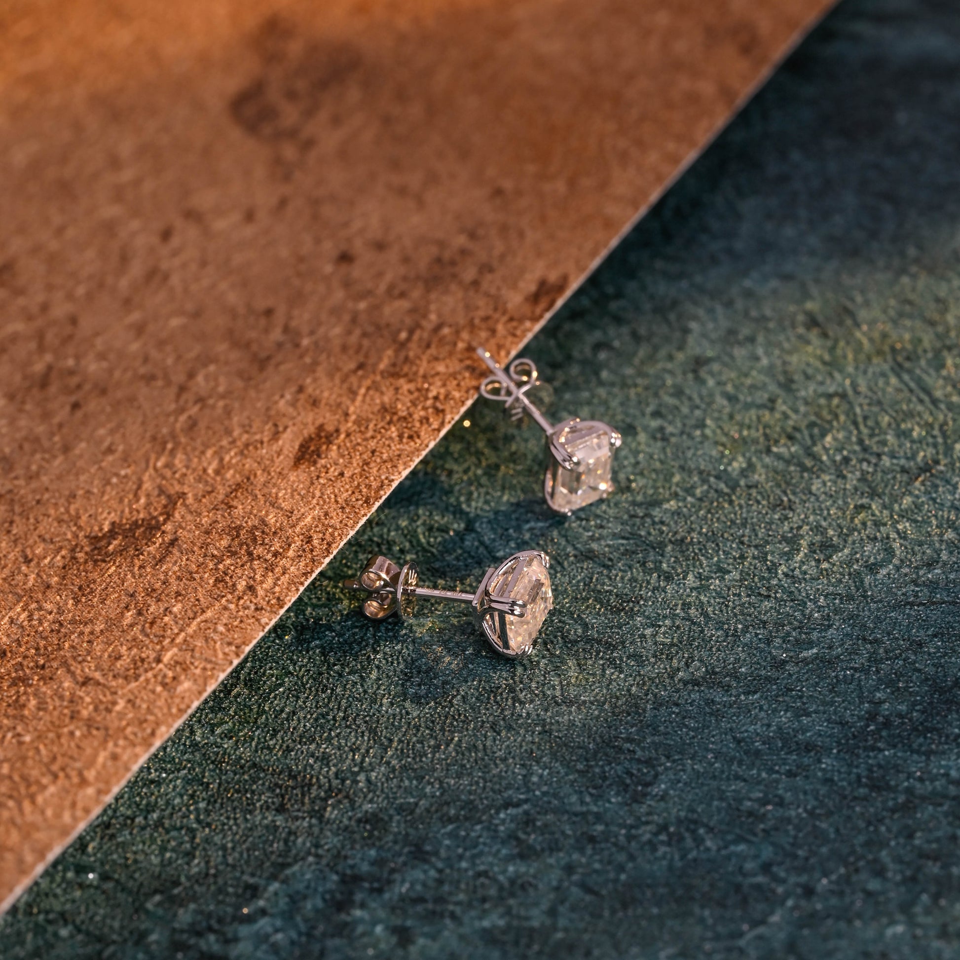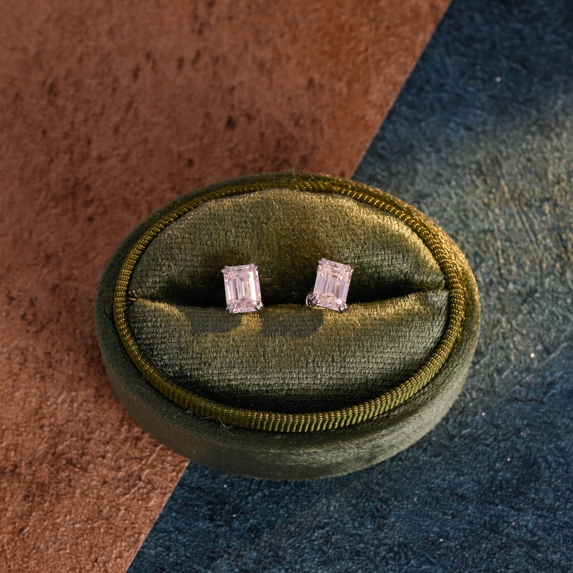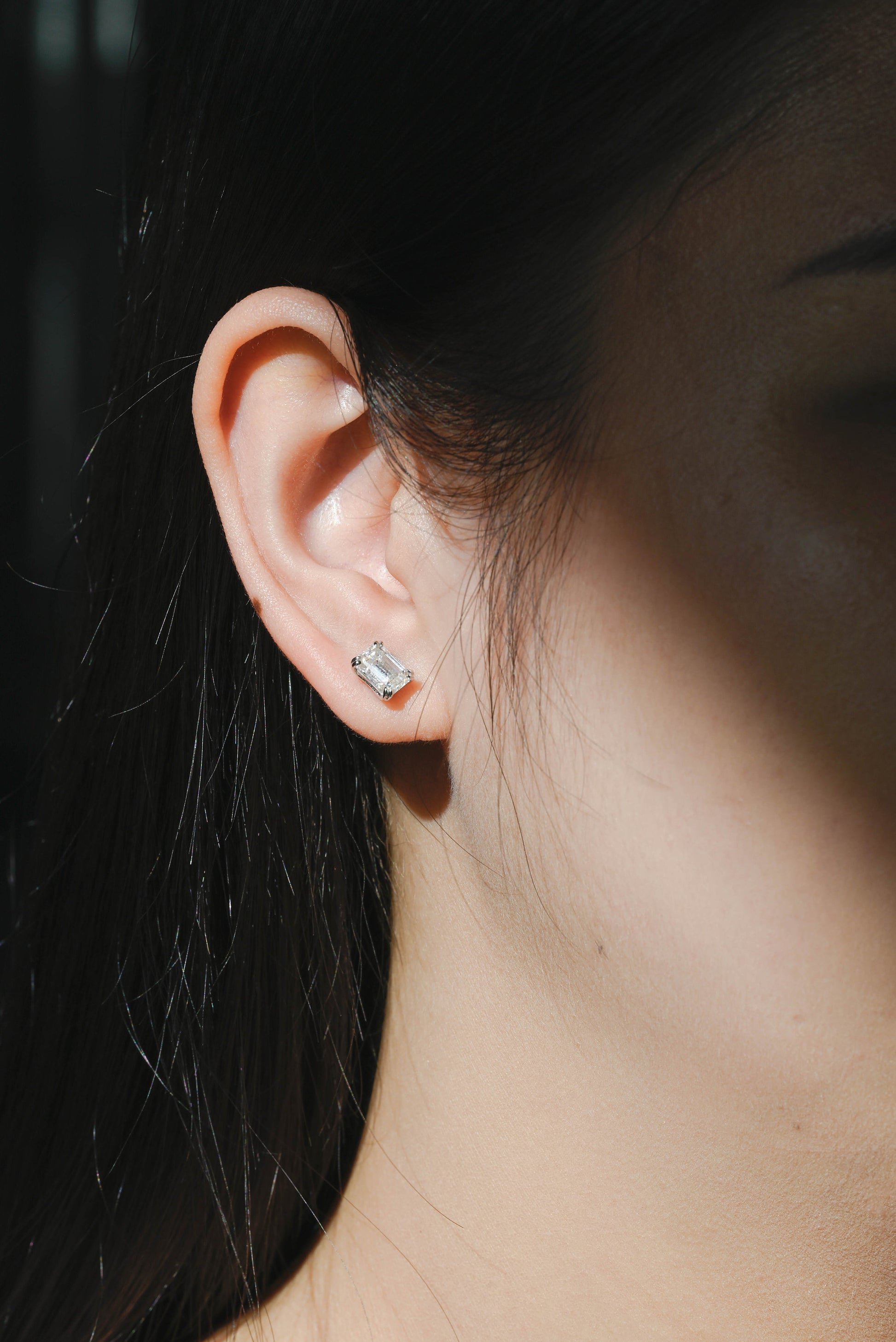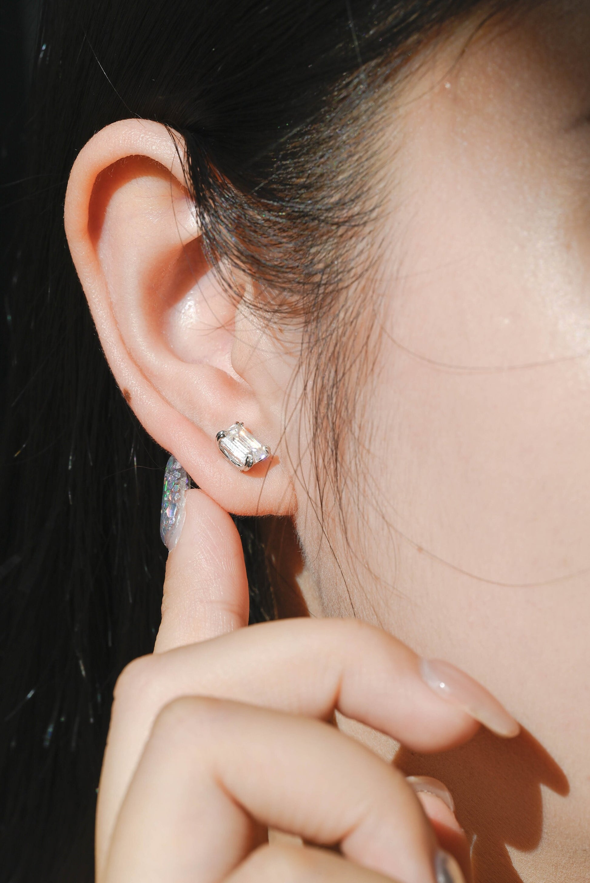 Solid Gold Emerald Cut Moissanite Studs Earrings, Art Deco Earrings, Valentine's Day/ Anniversary/ Birthday Gift for Woman, Wife, Girlfriend