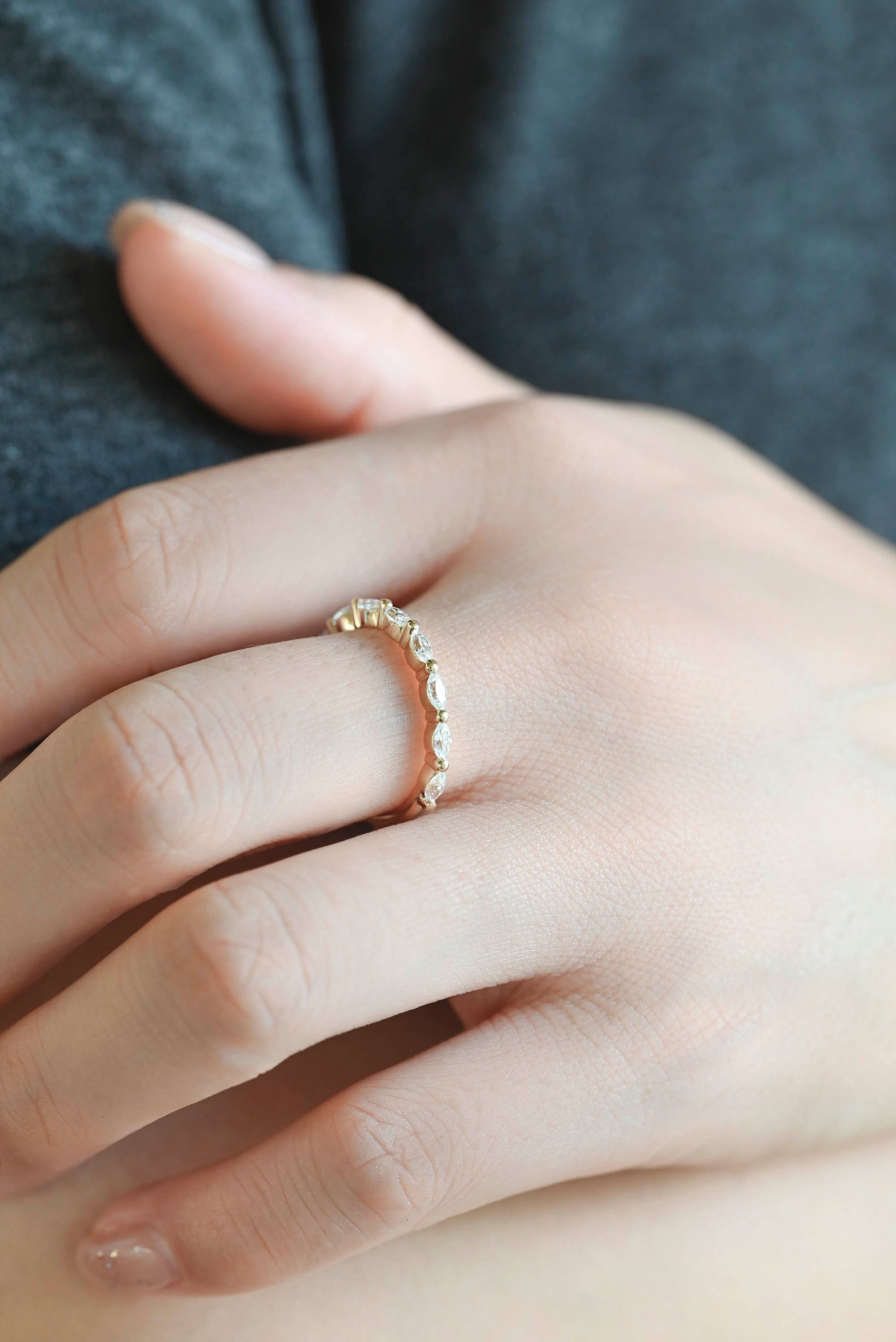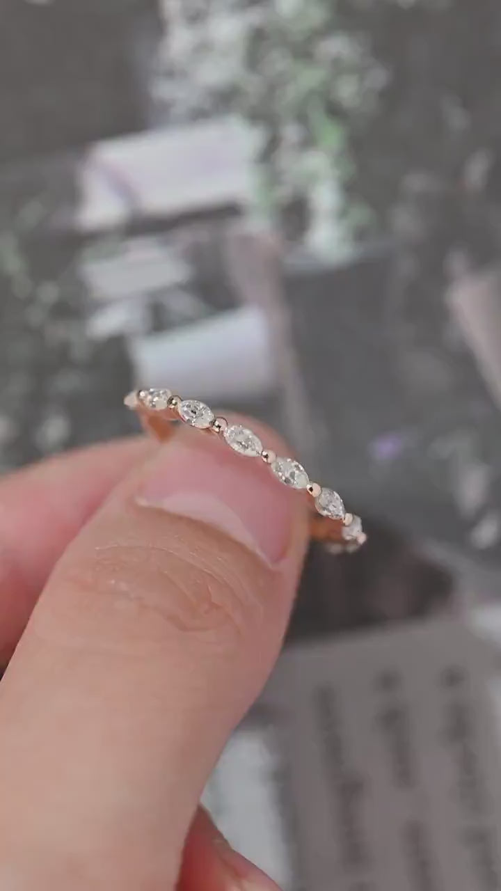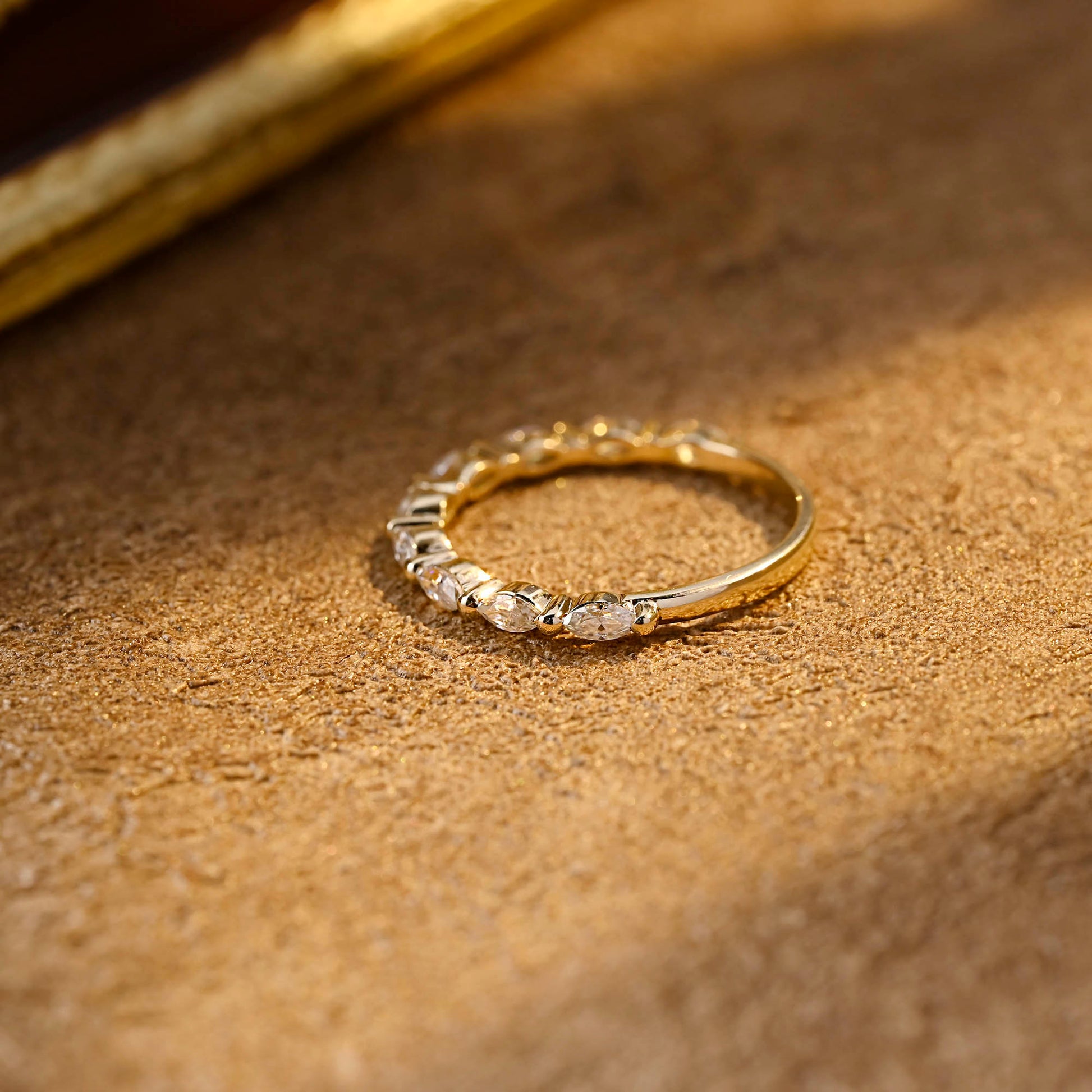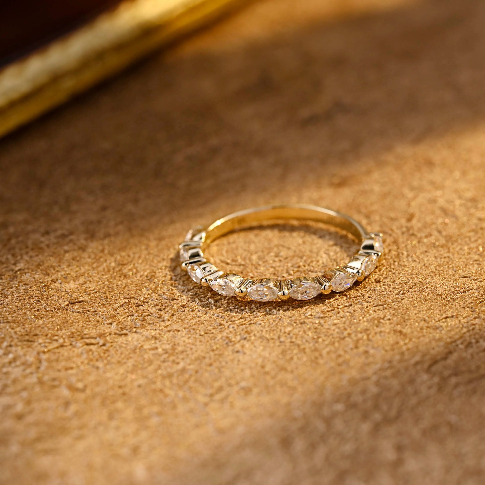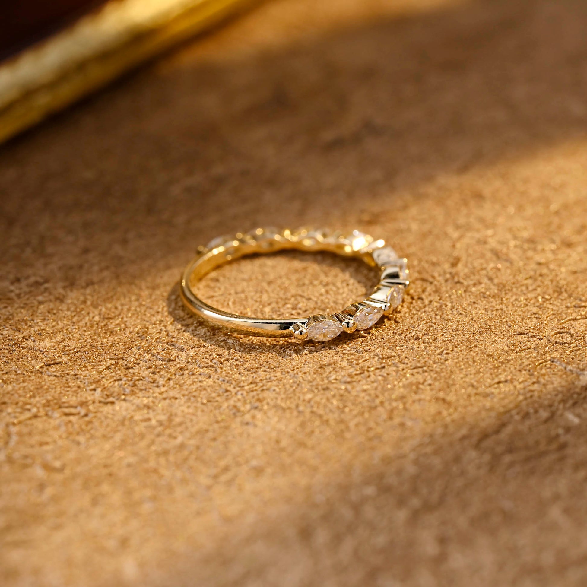 Solid Gold Marquise Cut Moissanite Wedding Band, Art Deco Half Eternity Wedding Ring, Classic Wedding Band, Gift for Woman, Girl, Wife