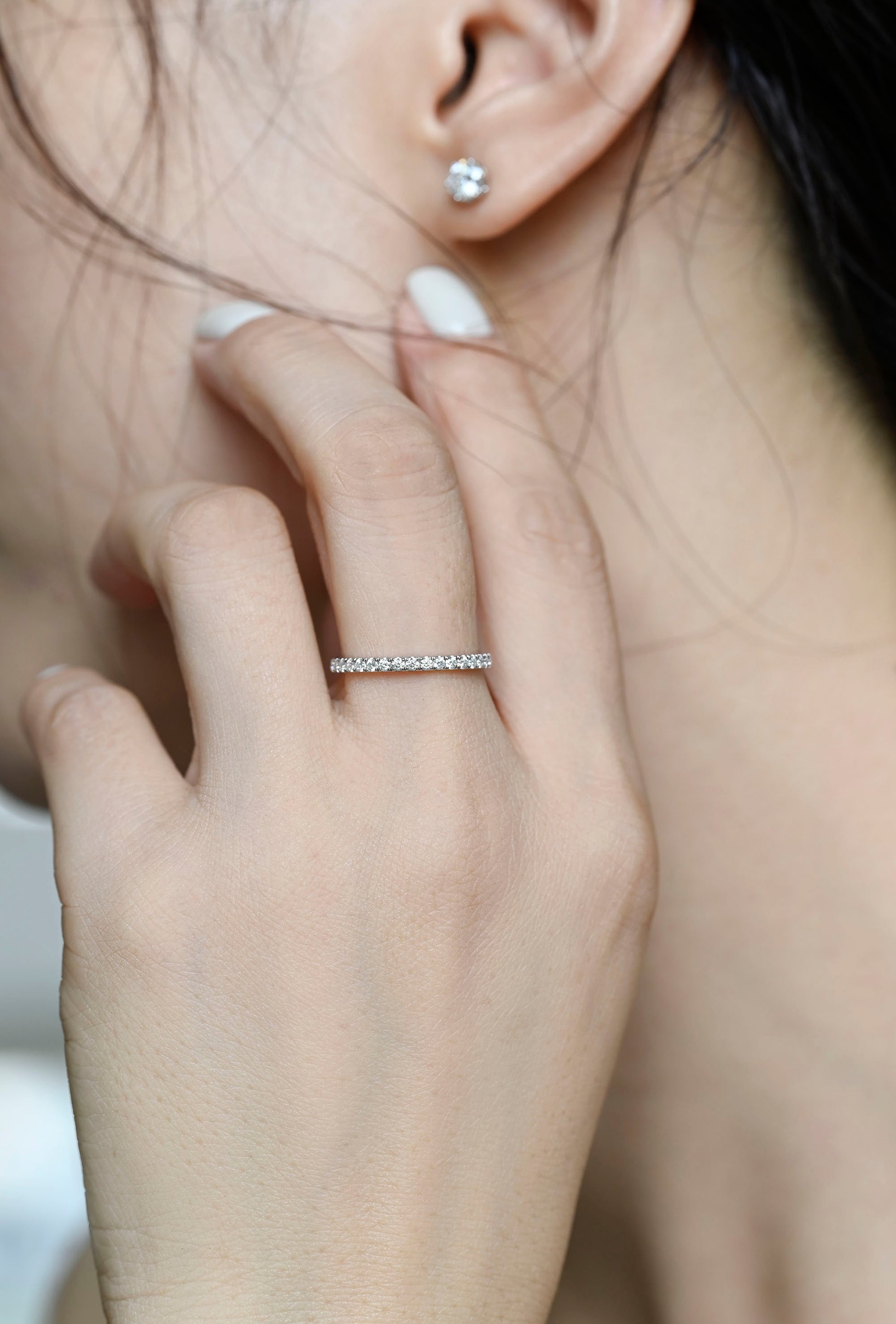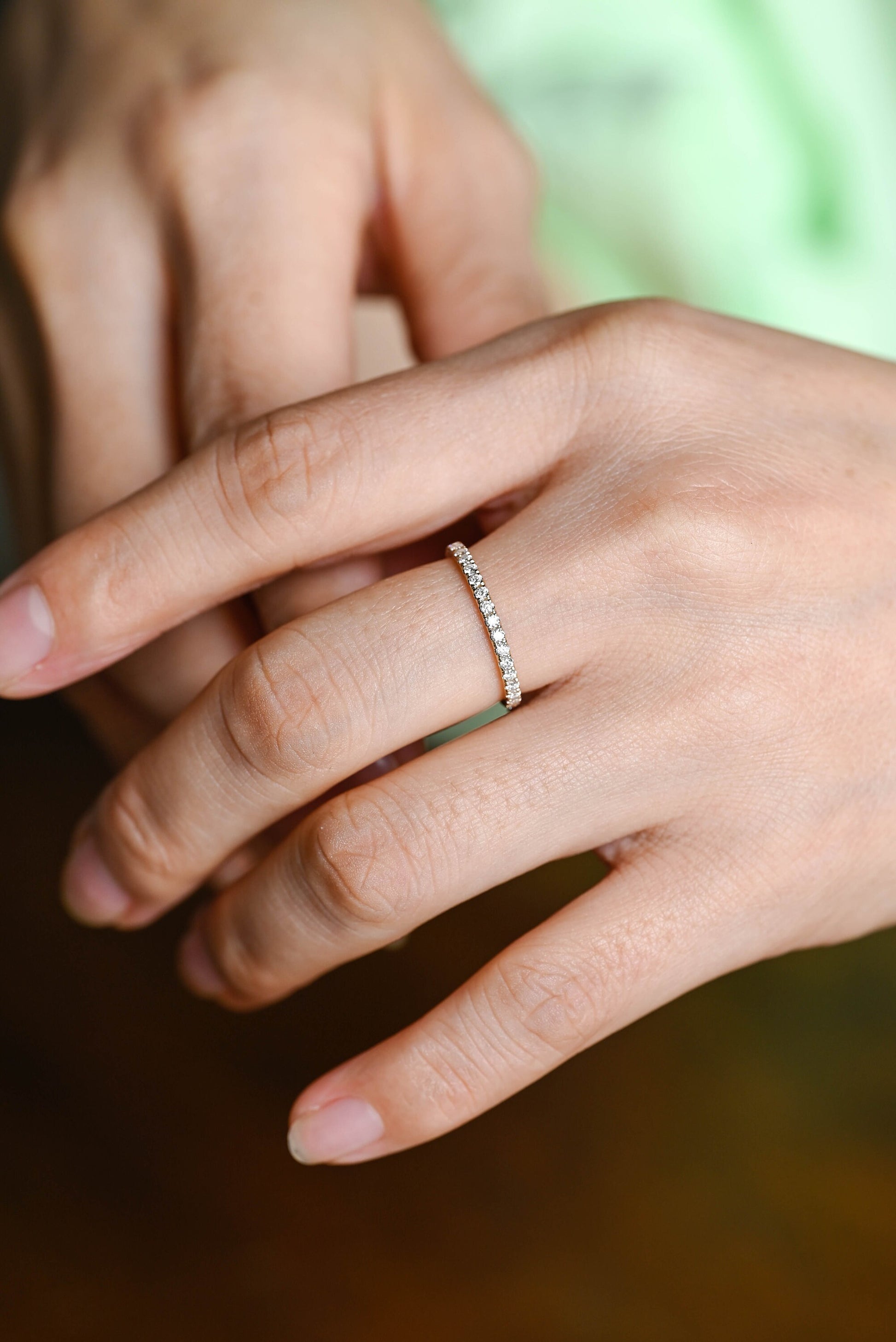 Solid Gold Moissanite Wedding Band, Full Eternity Wedding Ring, Stackable Ring, Anniversary/ Birthday/ Valentine's Day Gift for Woman, Wife