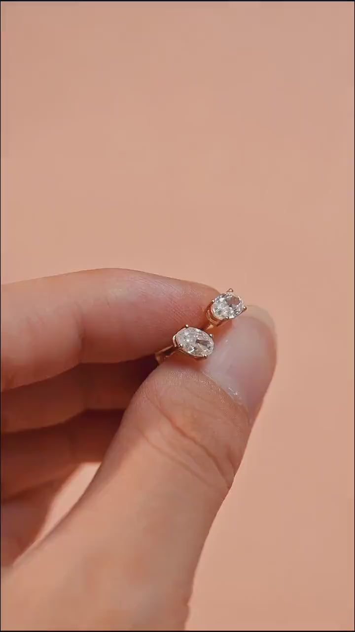 Solid Gold Oval Cut Moissanite Earrings Stud, Minimalist Gold Studs, Valentine's Day/ Anniversary/ Birthday Gift for Woman, Wife, Girlfriend