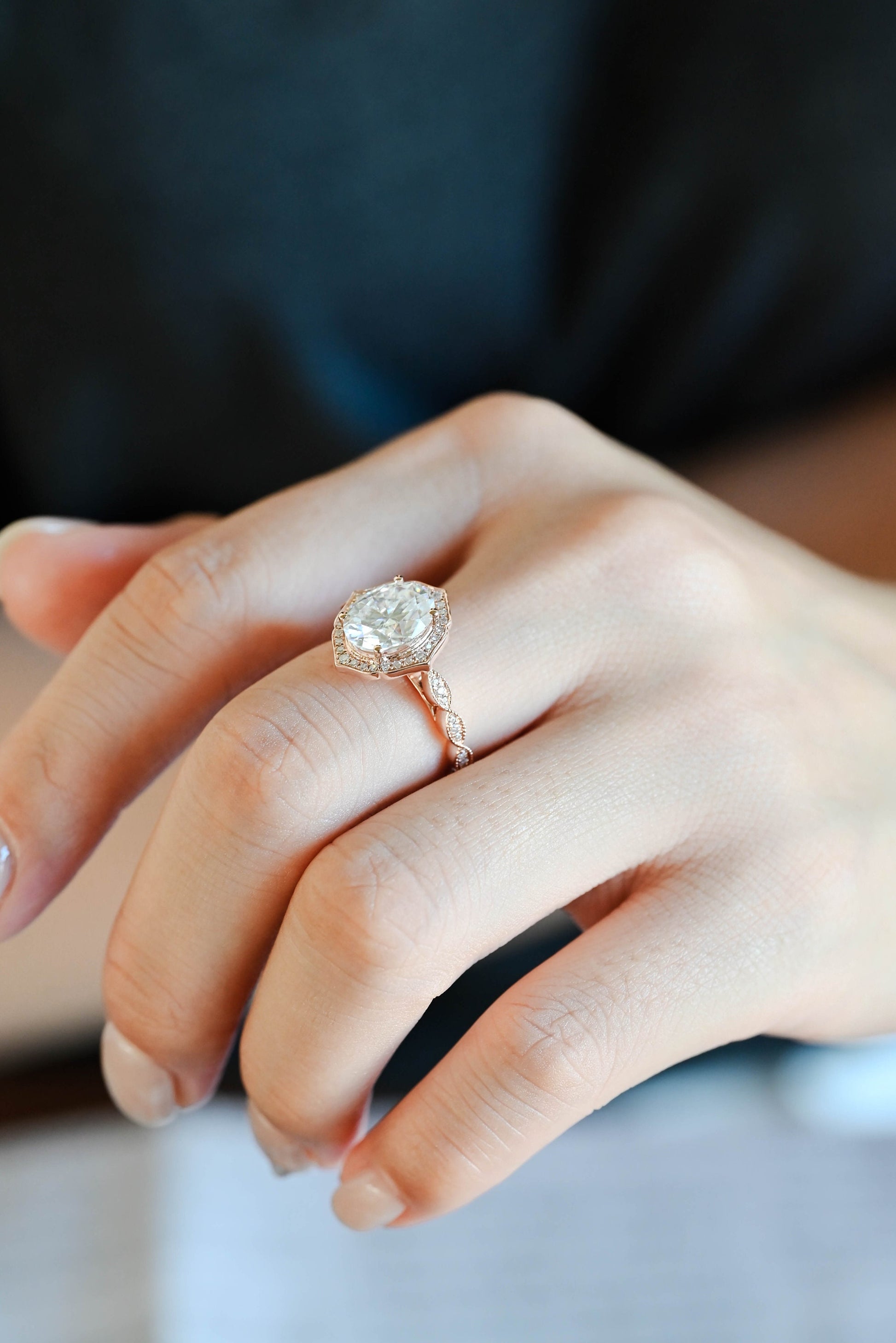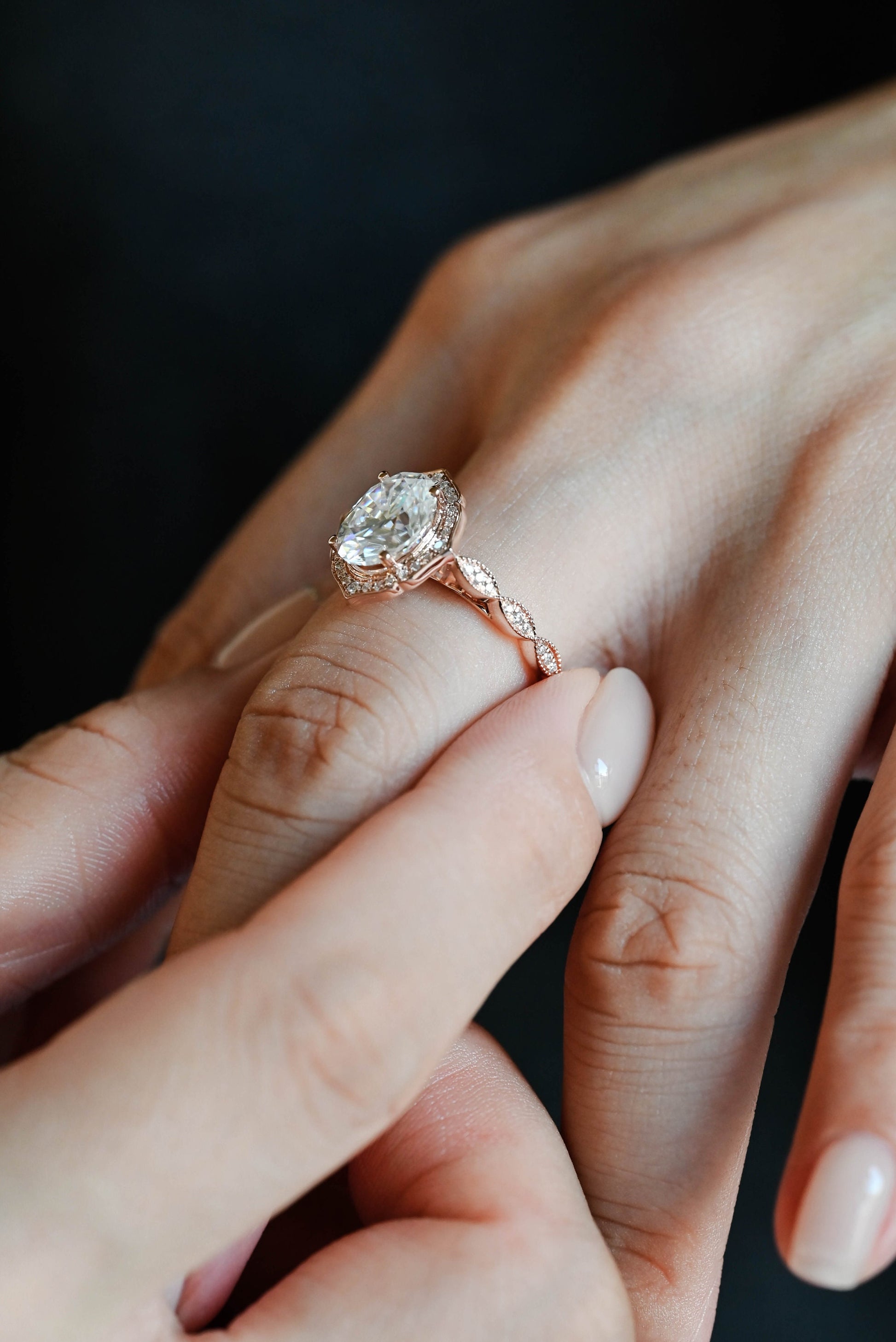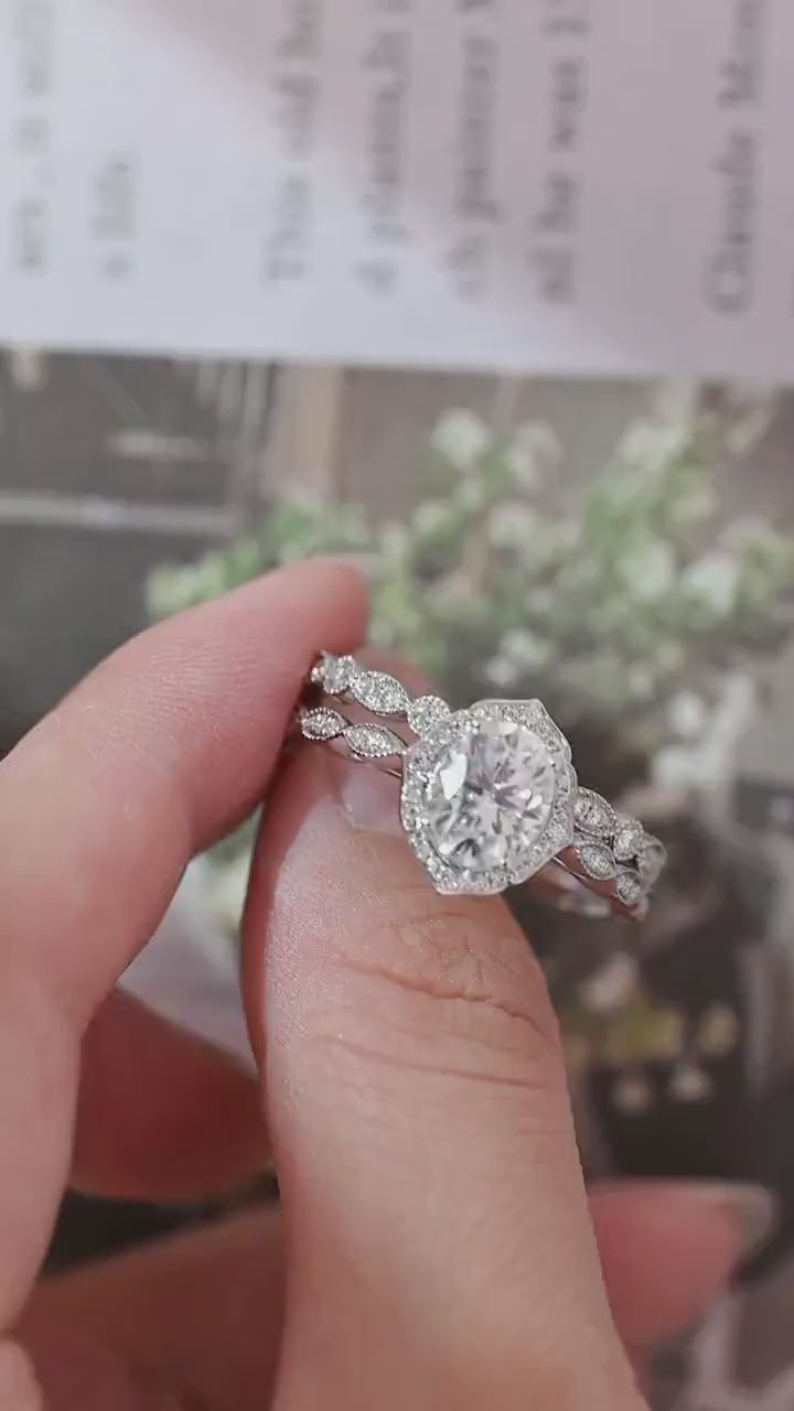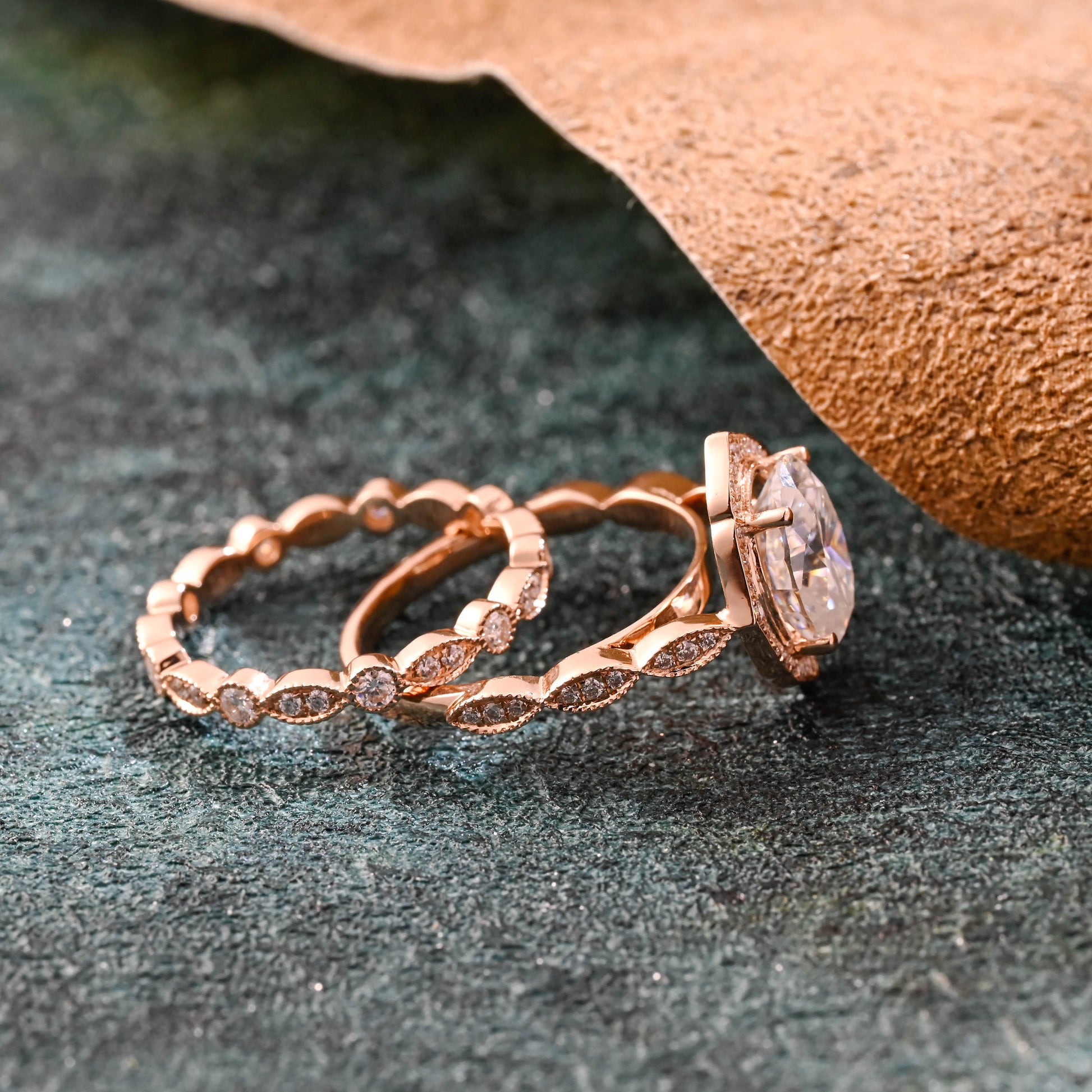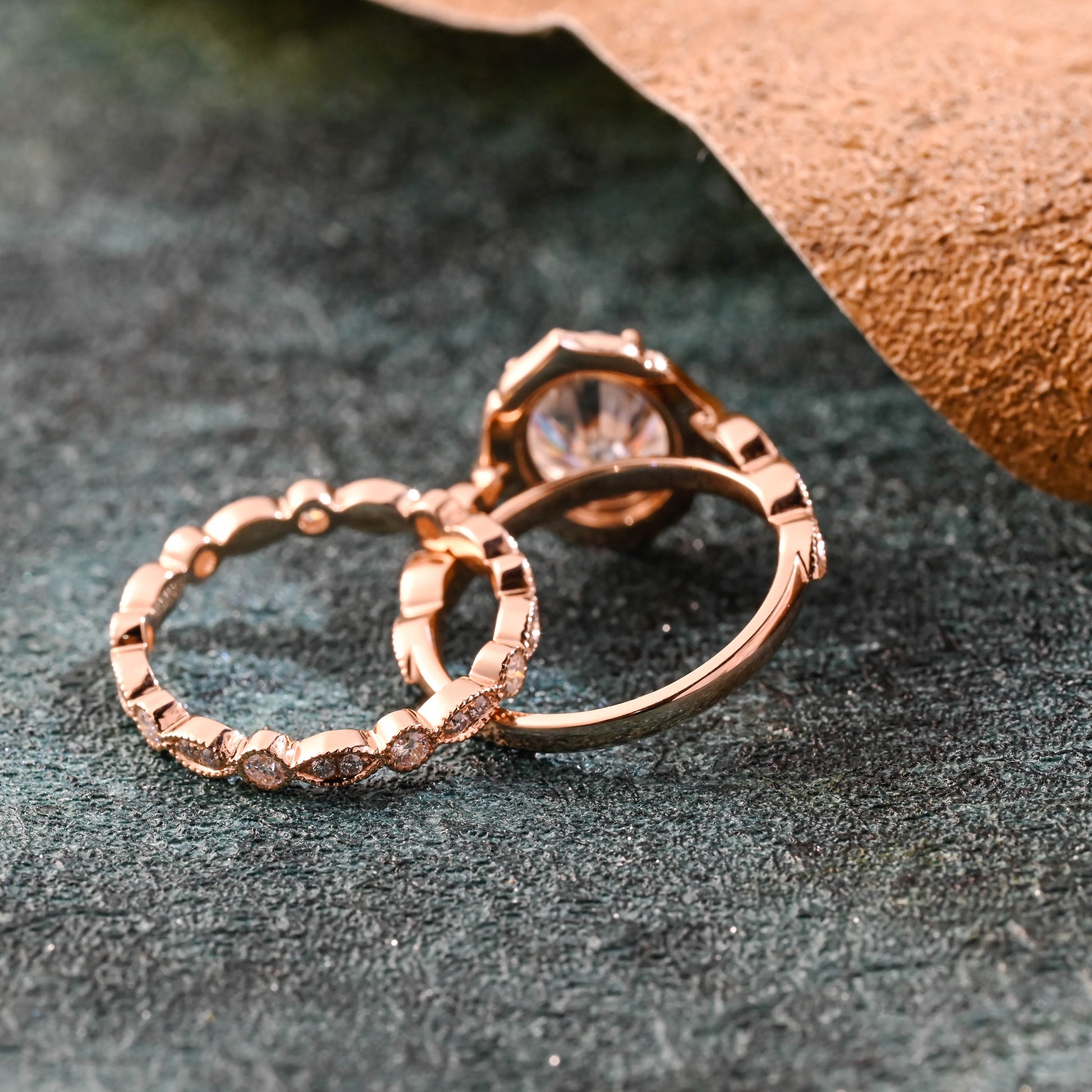 Solid Gold Oval Cut Moissanite Engagement Ring and Wedding Band Set, Vintage Bridal Ring Set, Art Deco Ring, Anniversary Gift for Woman,Wife