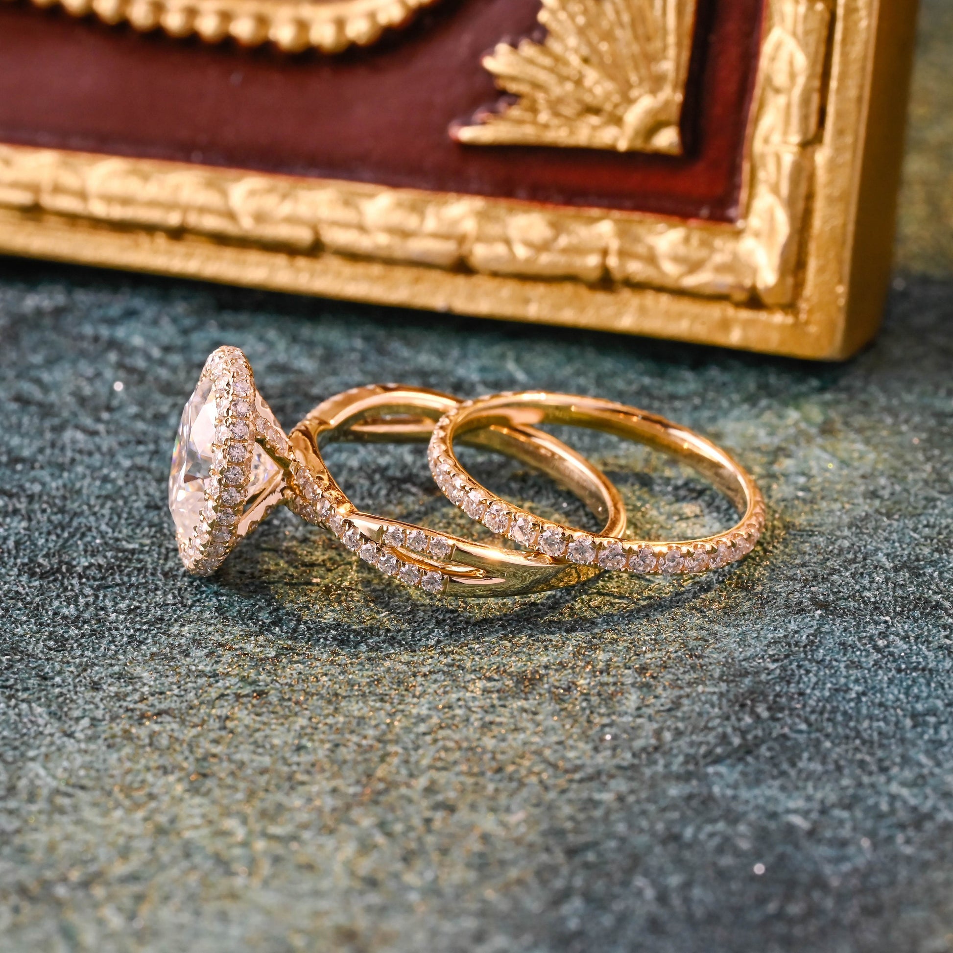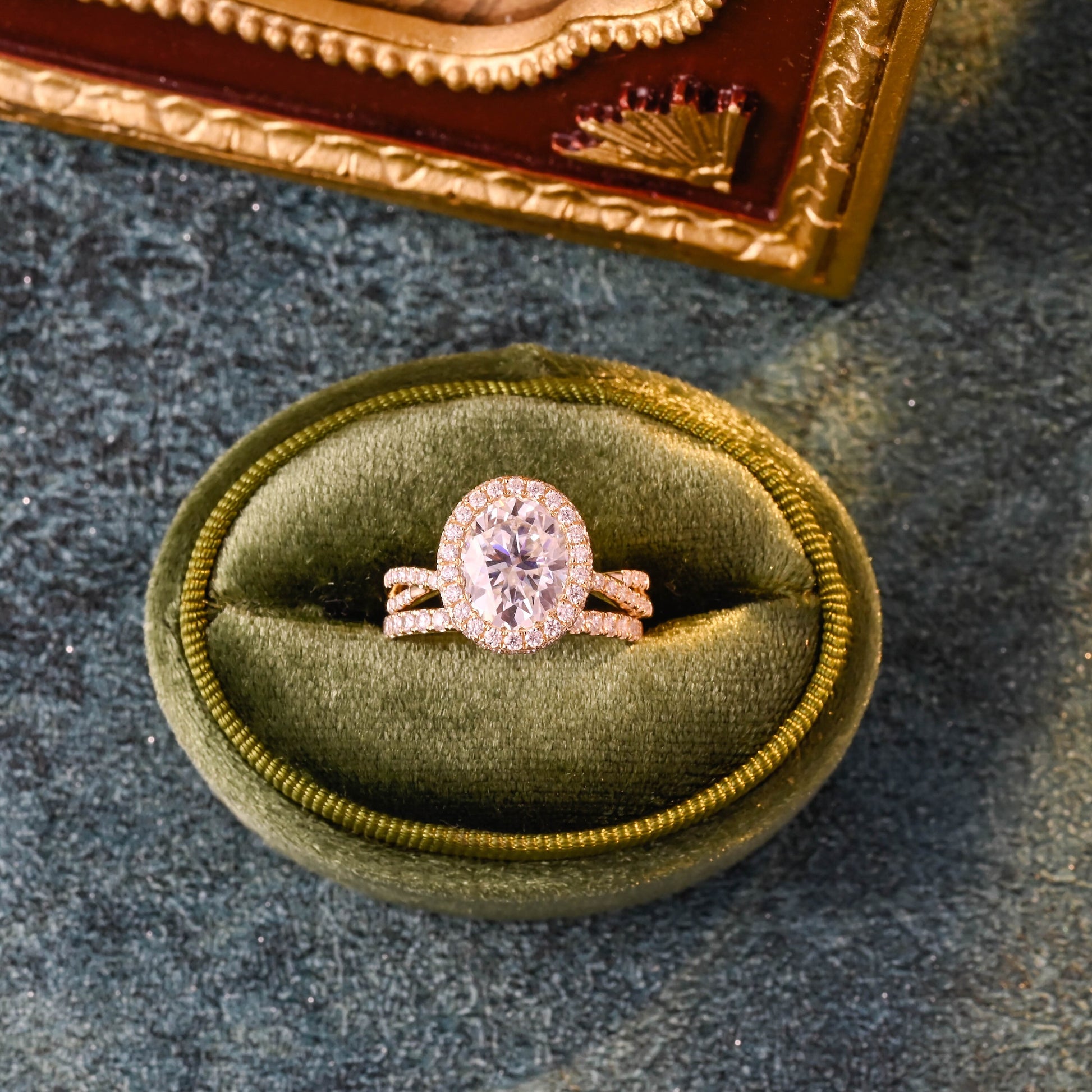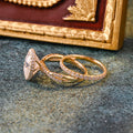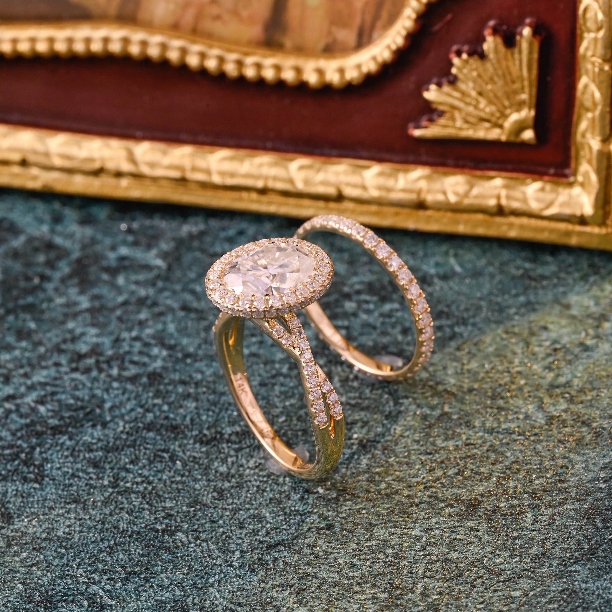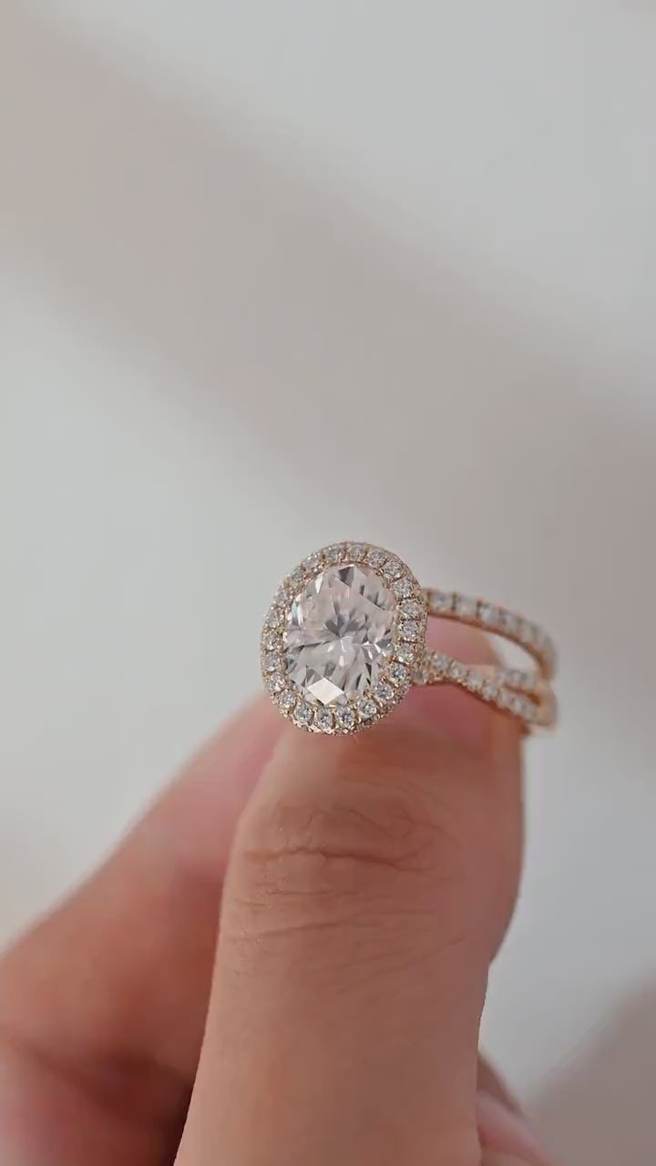 Solid Gold Oval Cut Moissanite Engagement Ring and Wedding Ring Set, Art Deco Ring Set, Vintage Bridal Ring Set, Anniversary Gift for Woman
