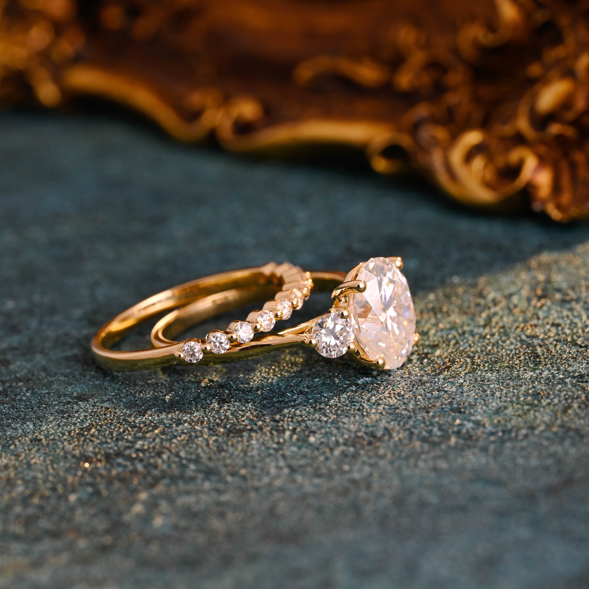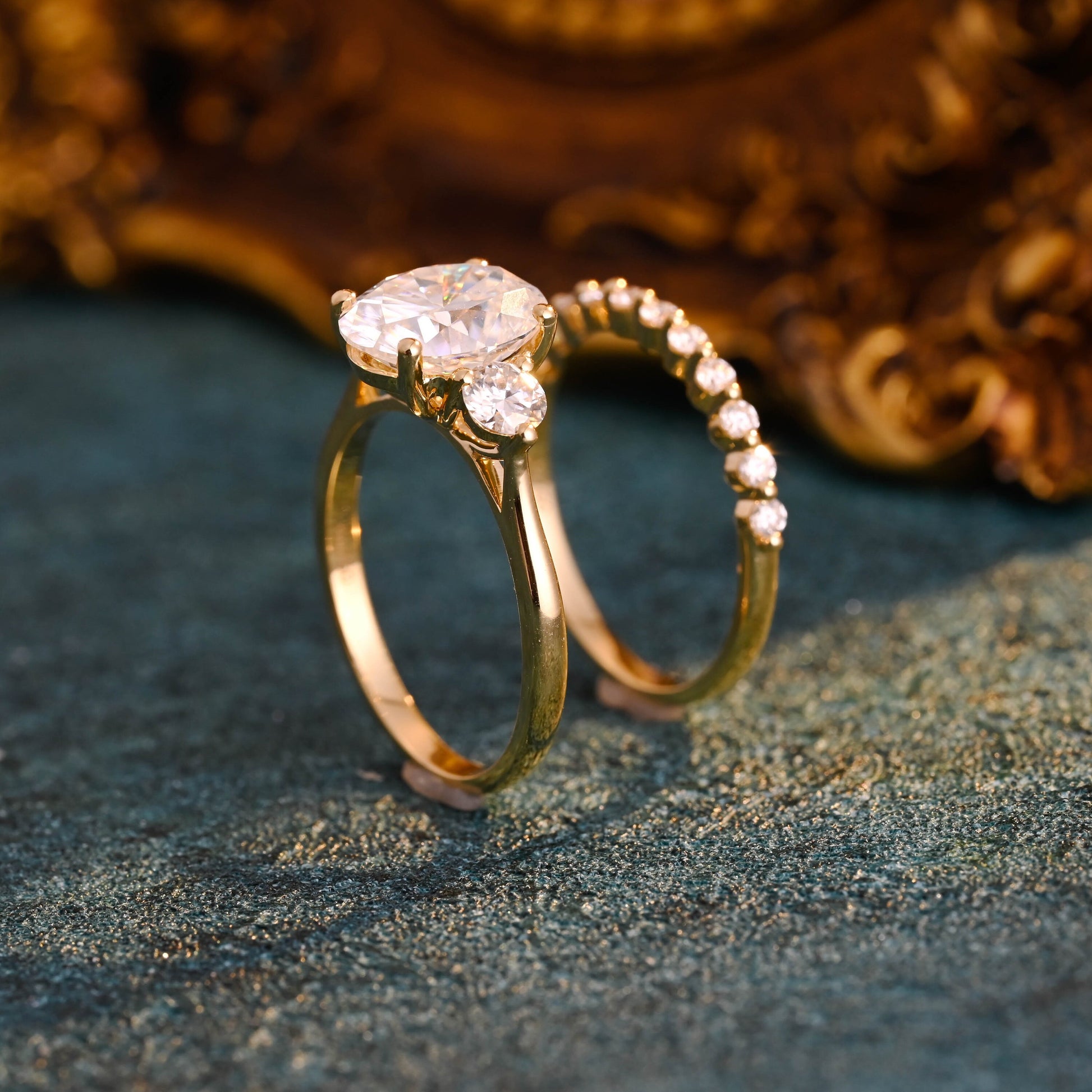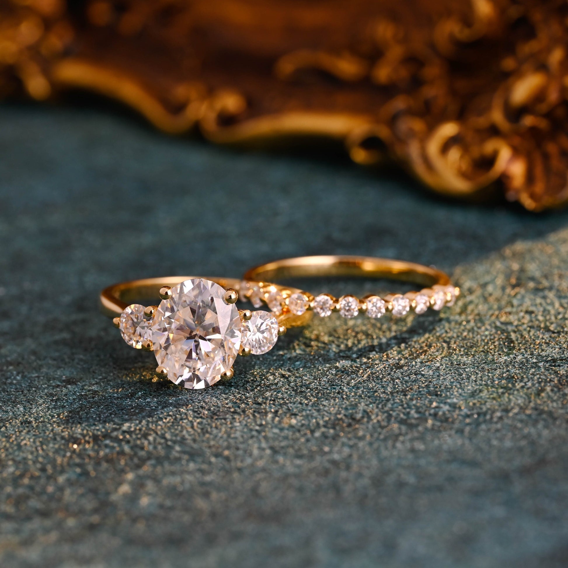 Solid Gold Oval Cut Moissanite Engagement Ring and Wedding Ring Set, Classic Bridal Ring Set, Art Deco Ring, Valentine's Day Gift for Woman