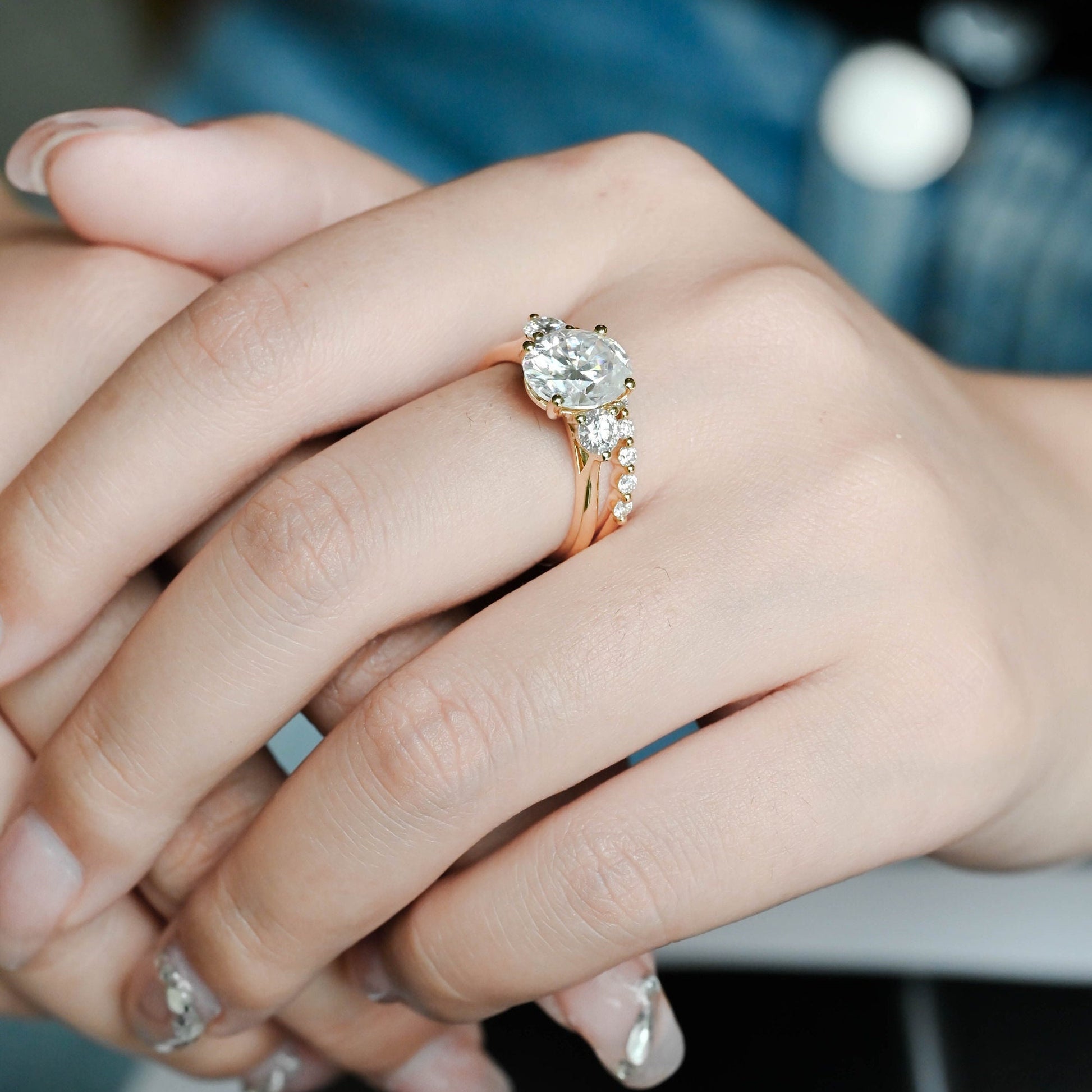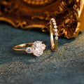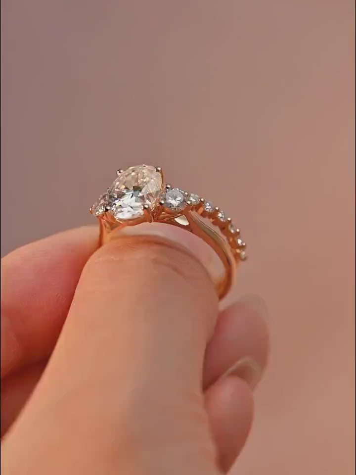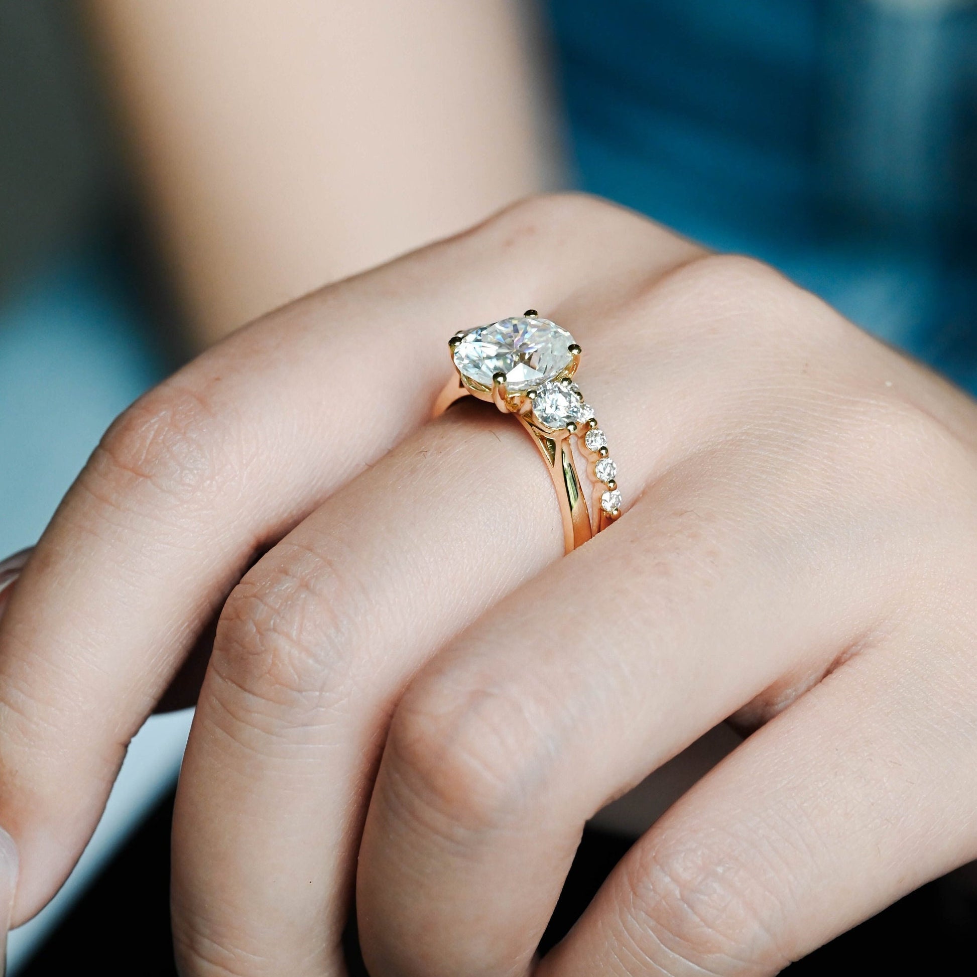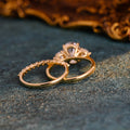 Solid Gold Oval Cut Moissanite Engagement Ring and Wedding Ring Set, Classic Bridal Ring Set, Art Deco Ring, Valentine's Day Gift for Woman