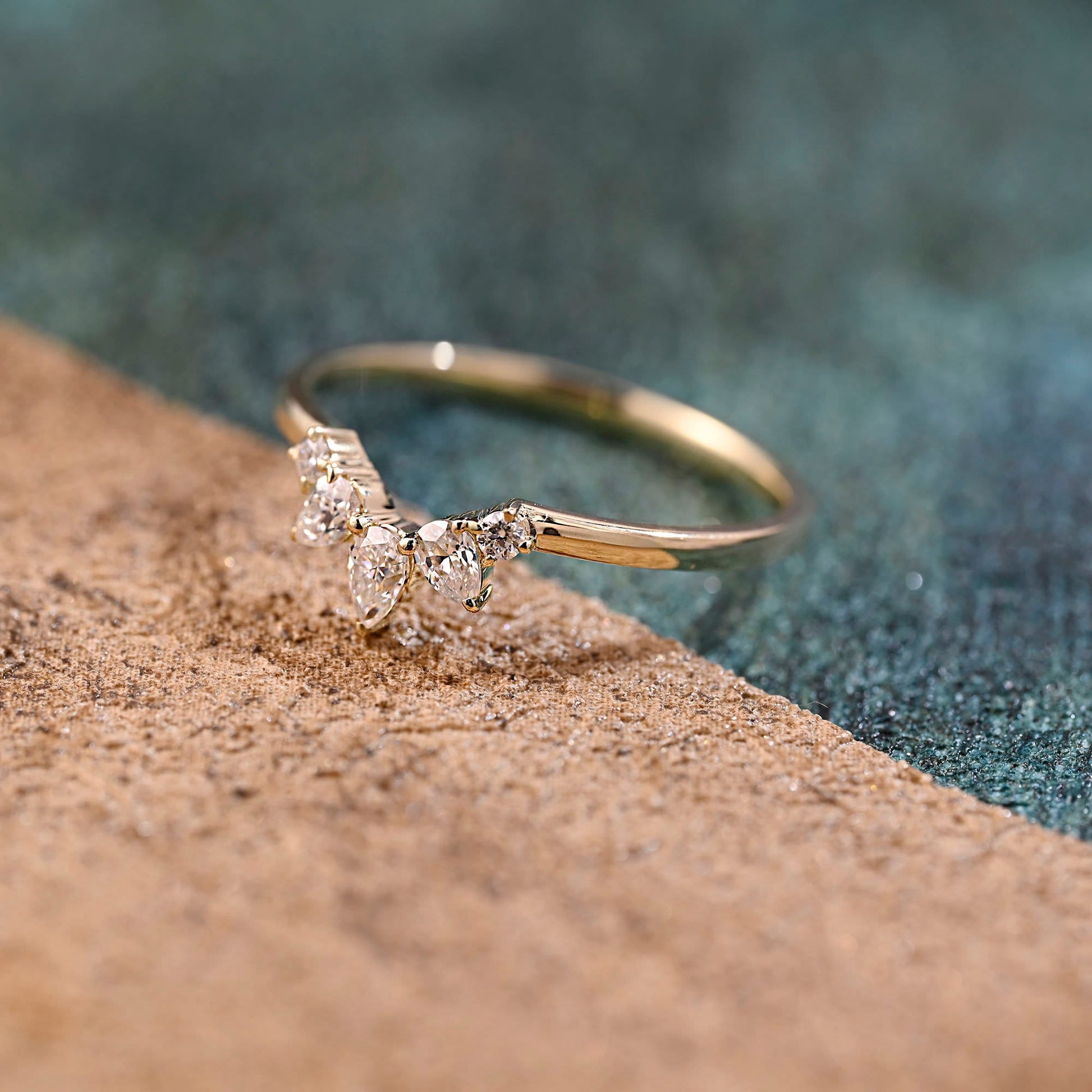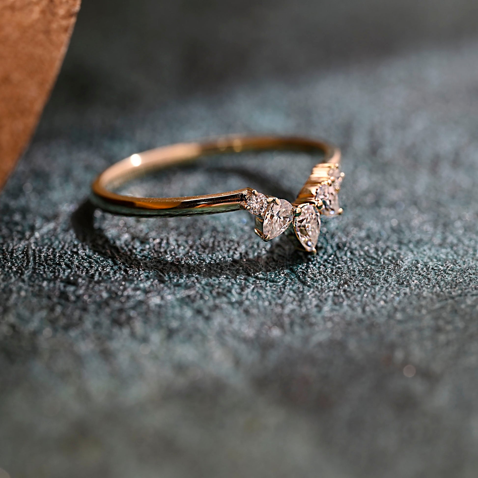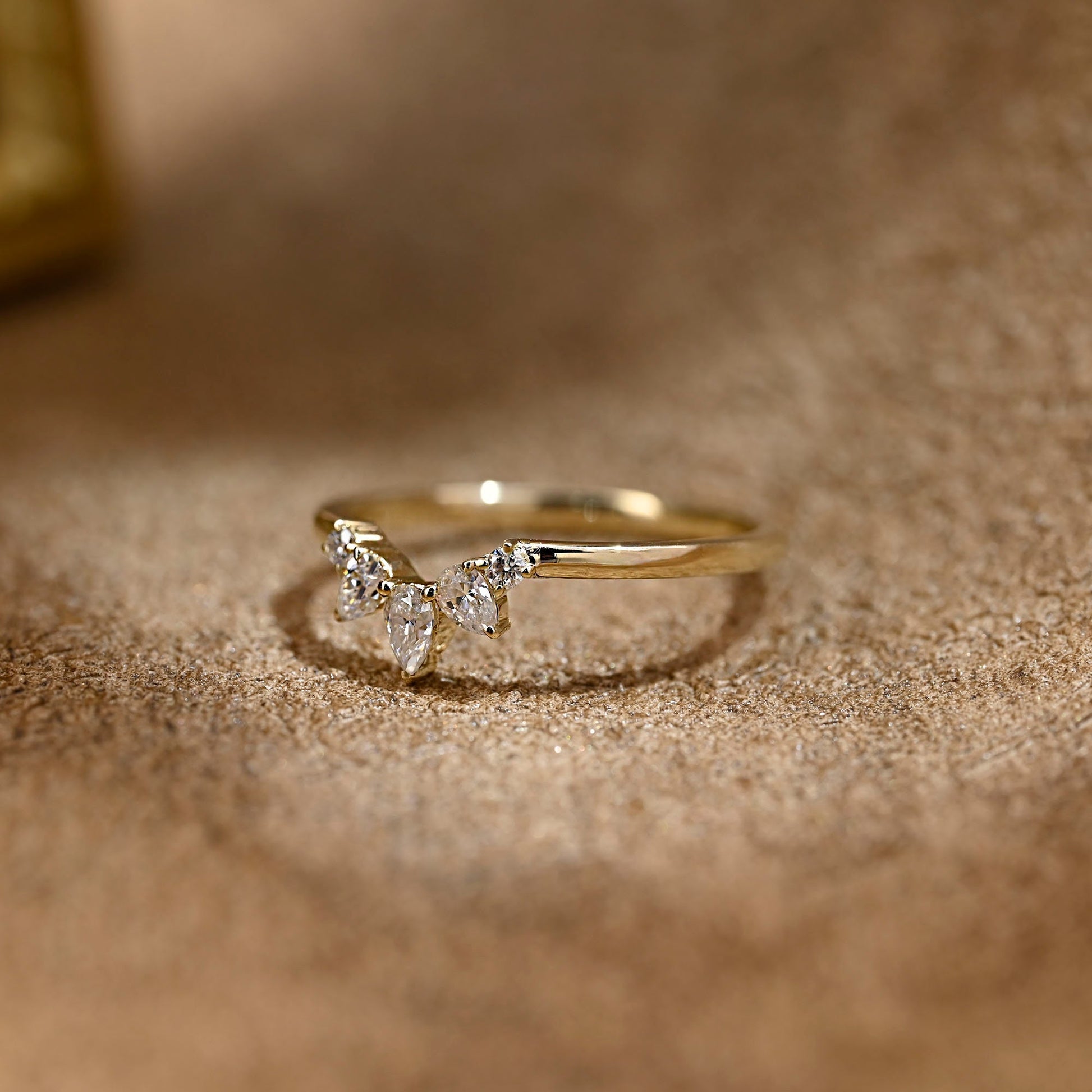 Solid Gold Pear & Round Cut Moissanite Curved Wedding Ring