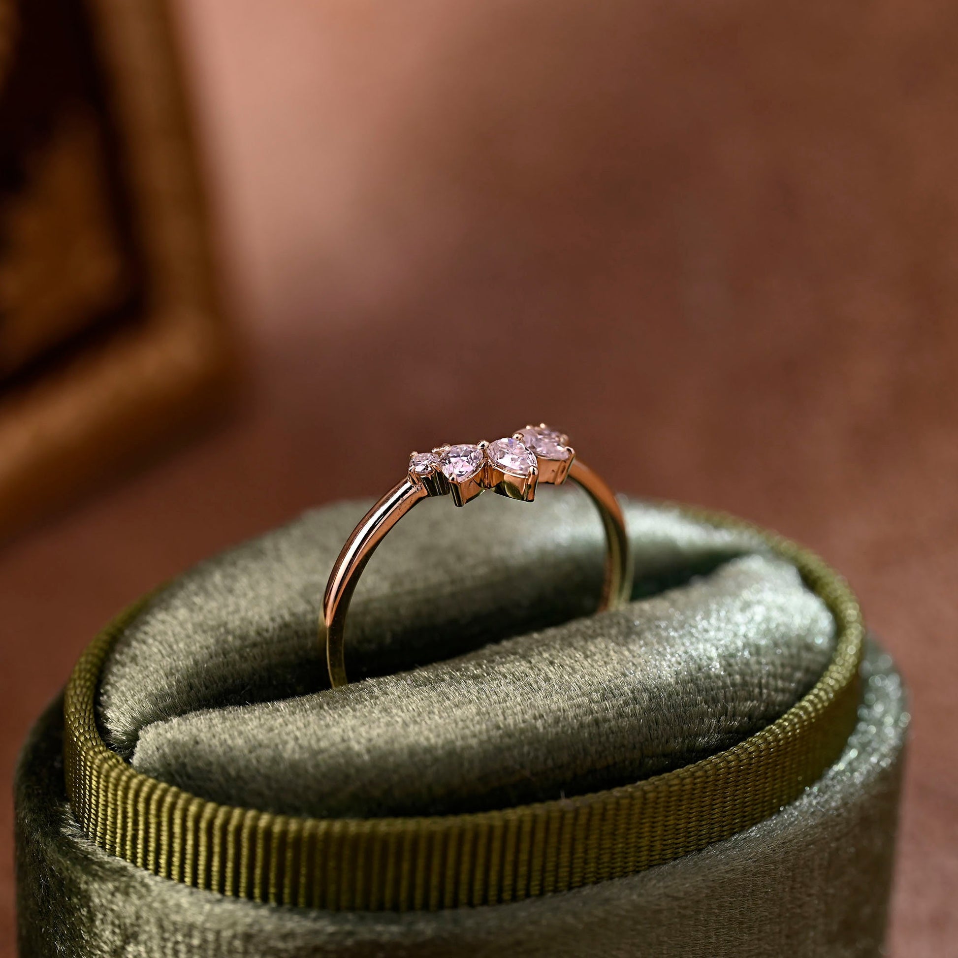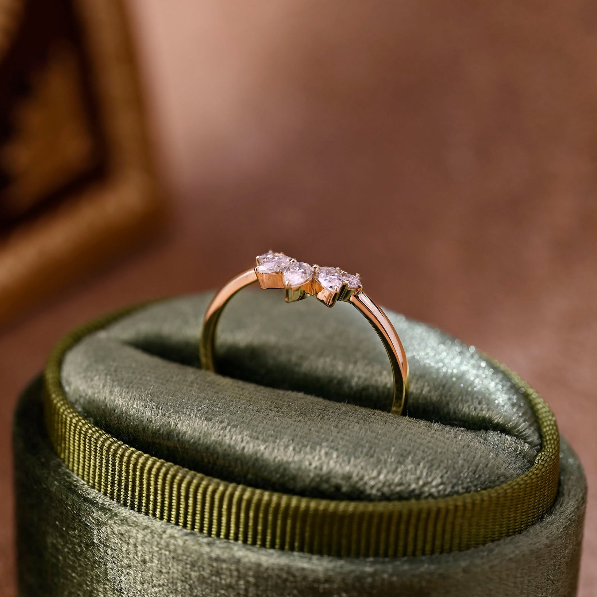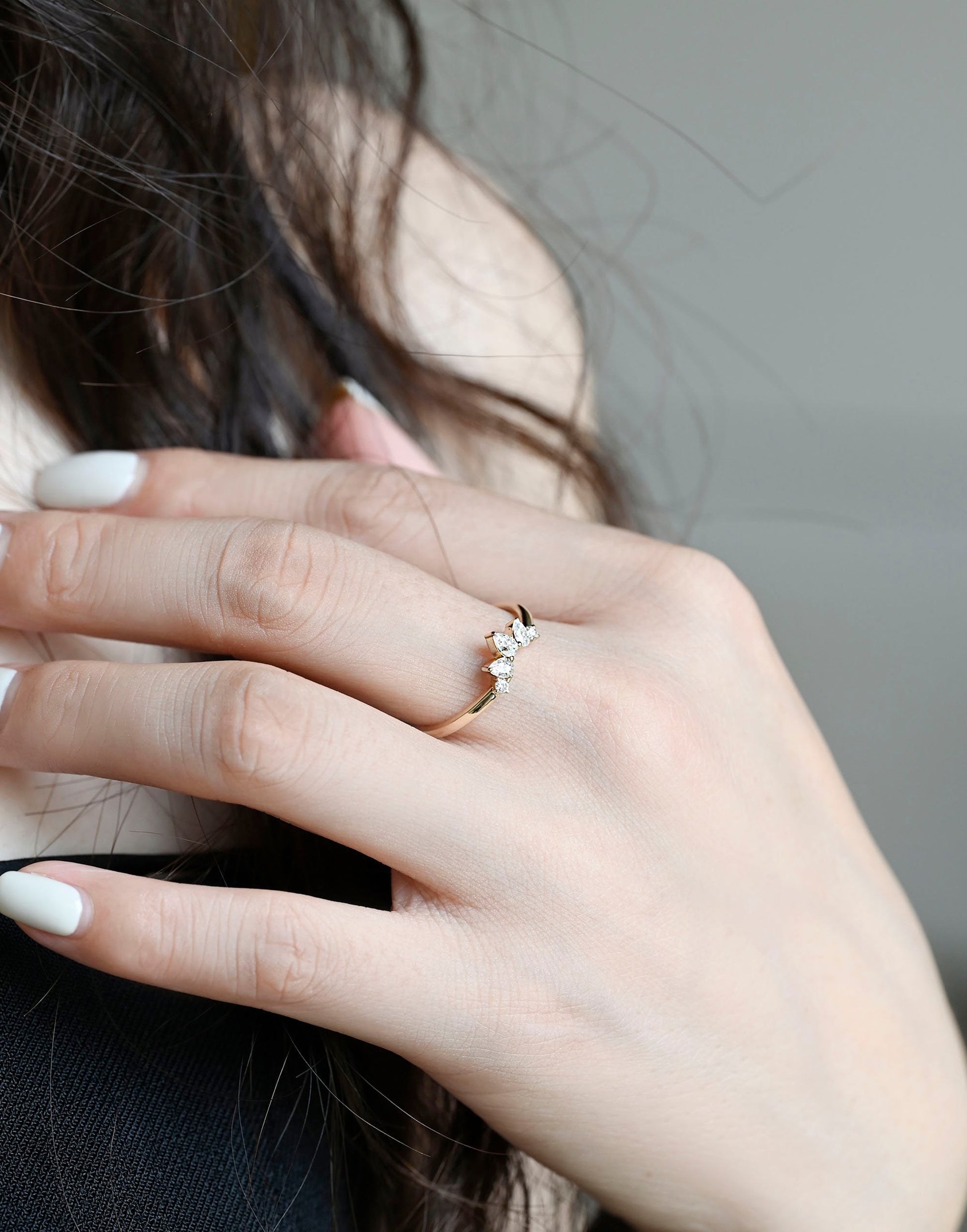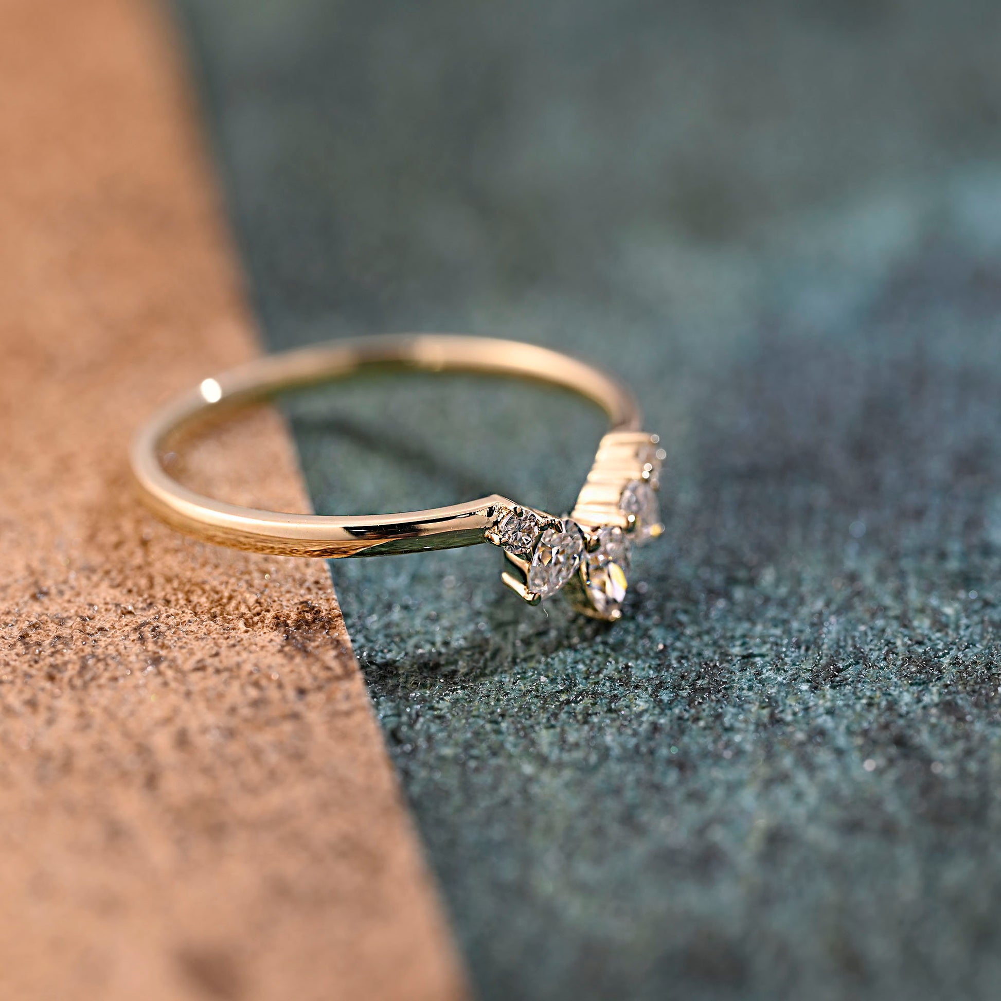 Solid Gold Pear & Round Cut Moissanite Curved Wedding Ring