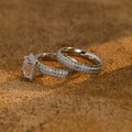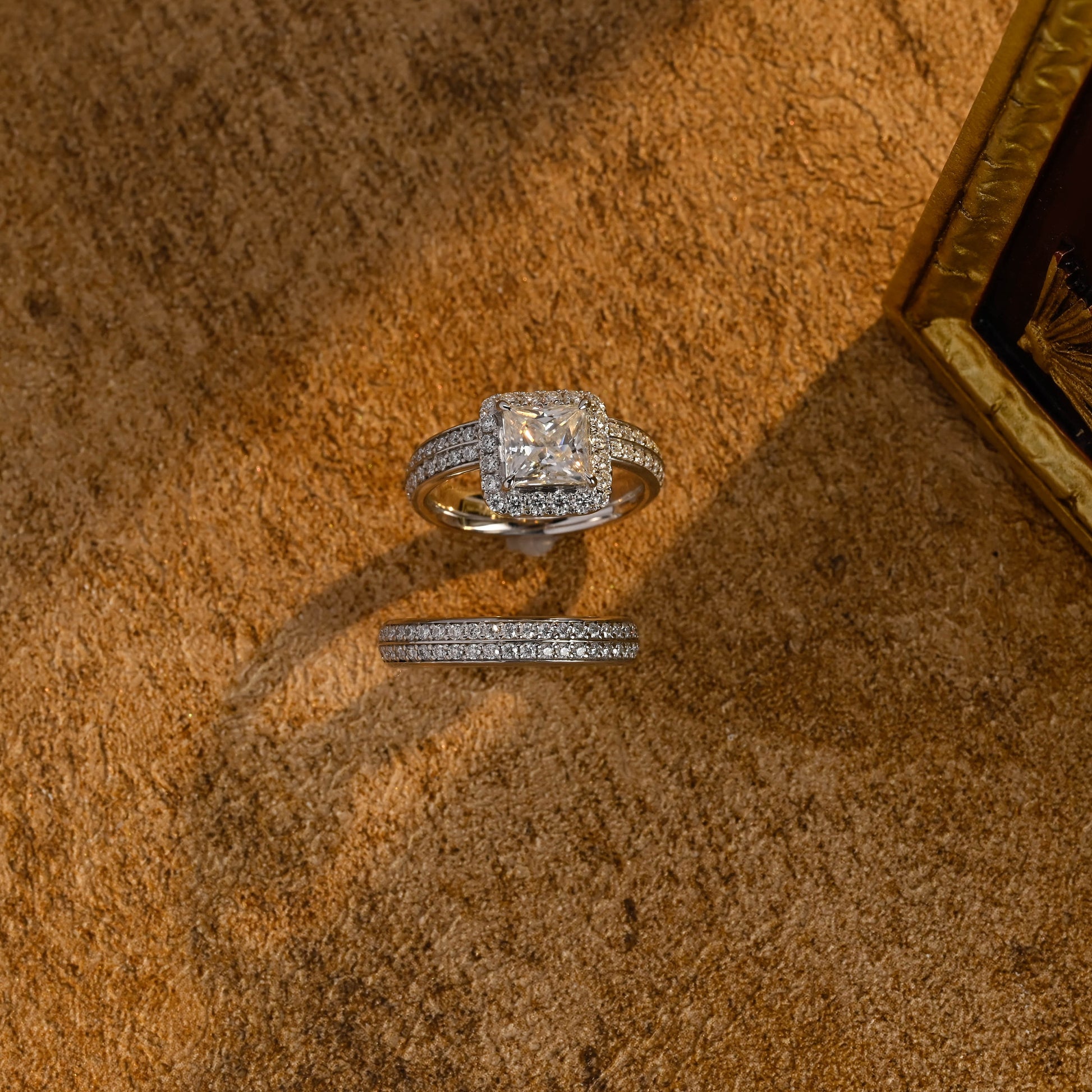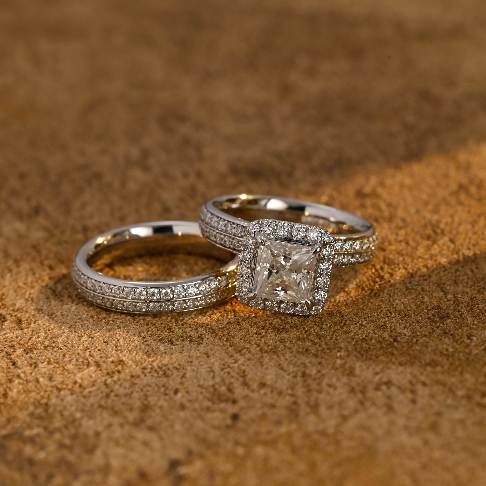 Solid Gold Princess Cut Moissanite Engagement Ring and Wedding Band Set, Vintage Bridal Ring Set, Art Deco Ring, Anniversary Gift for Woman