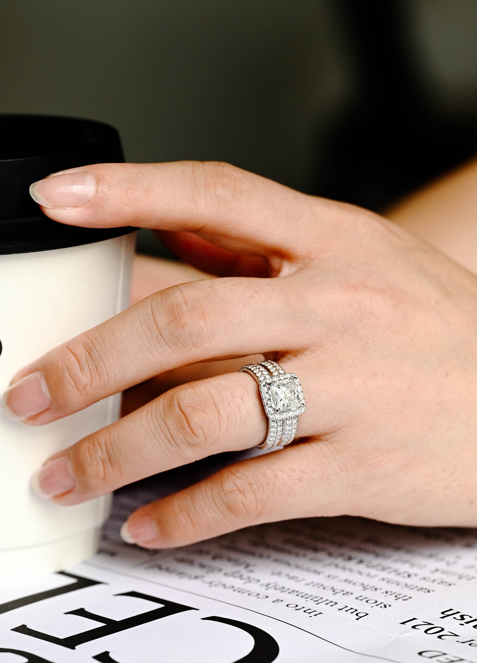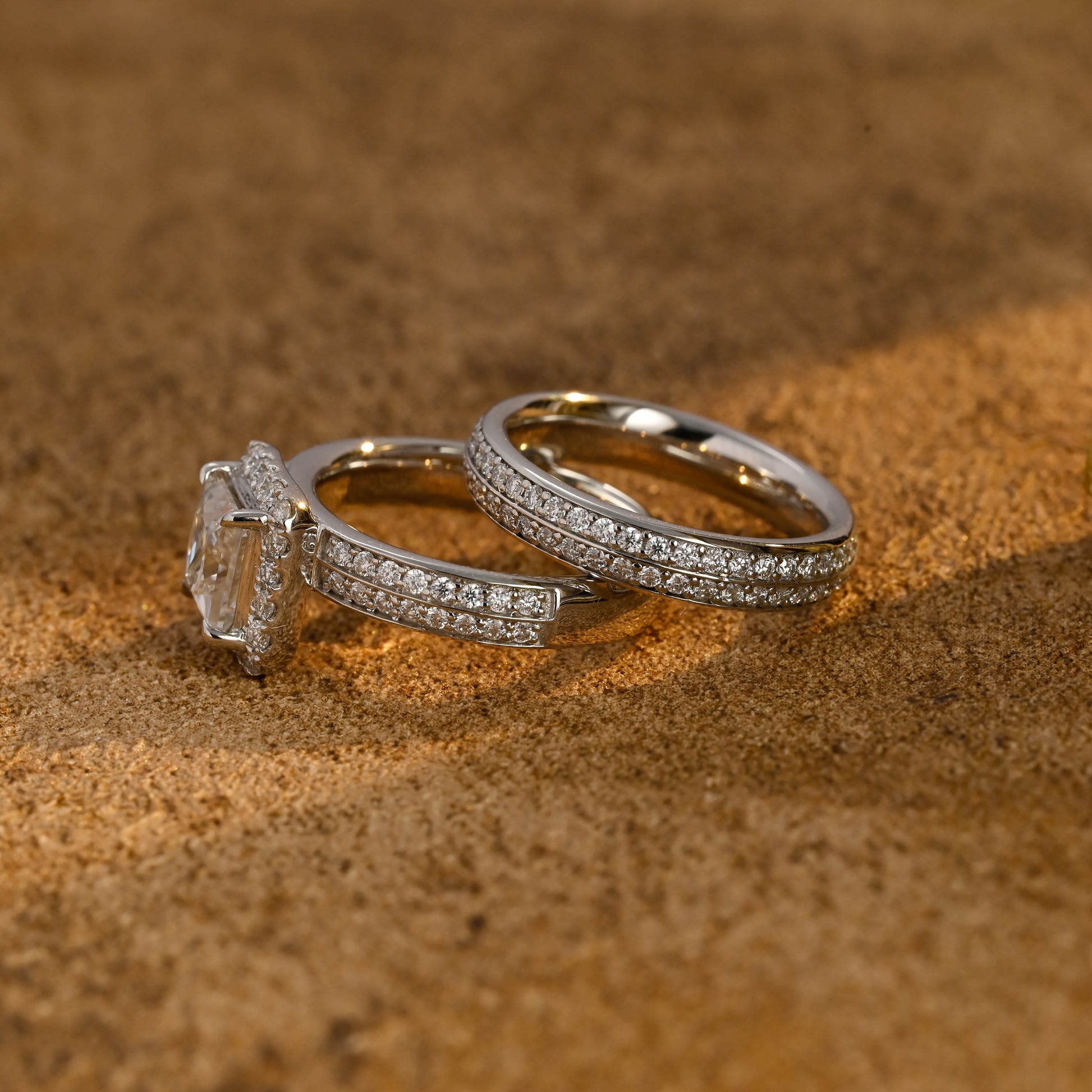 Our jewelry is crafted with simulant diamonds, moissanite, natural diamonds, lab-grown diamonds, and fine metals like 925 silver (with gold plating) and solid 10K, 14K, and 18K gold in white, yellow, and rose gold.